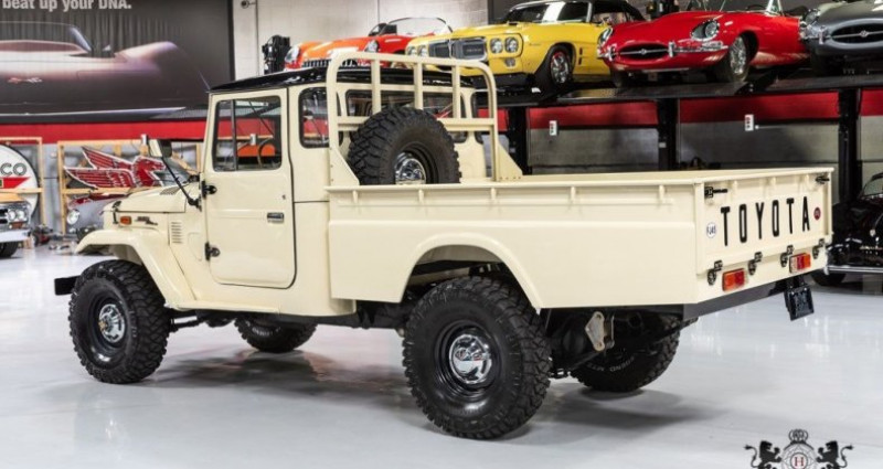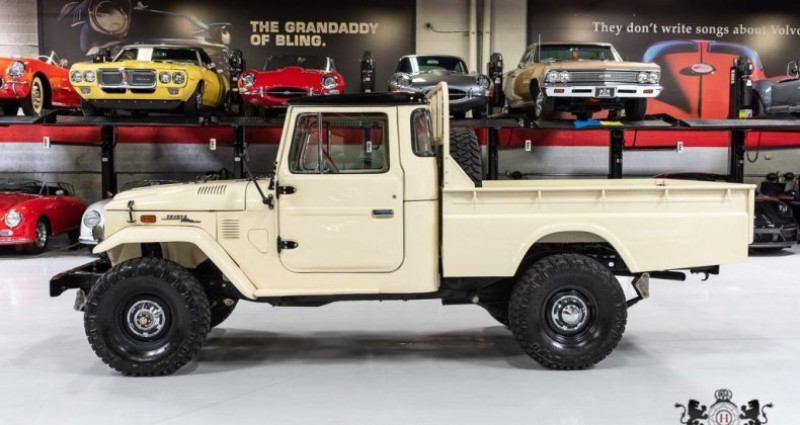 - Marque : Toyota - Modèle : Land Cruiser FJ-45 - Année : 1974 - Couleur extérieure : Crème - Couleur intérieure : Cuir brun brésilien - Moteur : 4.2L 2F INLINE-6 - Boîte de vitesses : 4 vitesses manuelle - Transmission : 4 roues motrices - Kilométrage : 617 miles - État : Restauration complète du châssis - Équipement : Air conditionné, visières solaires, levier de vitesses, tapis neuf, freins disques avant et tambour arrière, suspension nouvelle, direction assistée, nouveau carburateur, système électrique réparé, carrosserie sablée, nouvelles insignes et stickers extérieurs, roues de style usine (roue de rechange correspondante), pneus 33 Mickey Thompson Baja Legend, etc.. Provenance : Arizona. Disponibilité : environ 7 semaines, clés en main. 80 500 € tout compris (importation, taxes, procédure d'immatriculation). Annonce publiée le 08/12/2025
