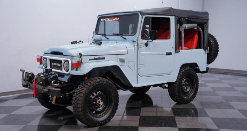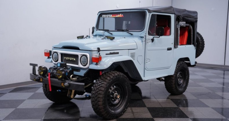 - Marque : Toyota - Modèle : Land Cruiser FJ40 - Année : 1982 - Couleur extérieure : Blue Gray - Couleur intérieure : Rouge - Type de carrosserie : SUV - Transmission : 4 vitesses manuelle - Propulsion : 4X4 - Moteur : 4.2L 2F Inline 6 - Kilométrage : 87 km - VIN original : FJ40352868 - Équipements : Air conditionné, JVC head unit avec écran tactile, freinage avant et arrière assisté, direction assistée, échappement unique, winch électrique Rugcel 13K, pneus de terrain mousseux neufs montés sur roues de 17 pouces, remplissage de peinture récent, rouleaux de remorquage neufs, protection contre les dommages à la carrosserie, fenêtres électriques, verrouillage de portes électriques, removable soft top et hard top.. Provenance : Georgia. Disponibilité : environ 7 semaines, clés en main. 89 000 € tout compris (importation, taxes, procédure d'immatriculation). Annonce publiée le 11/12/2025