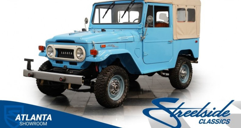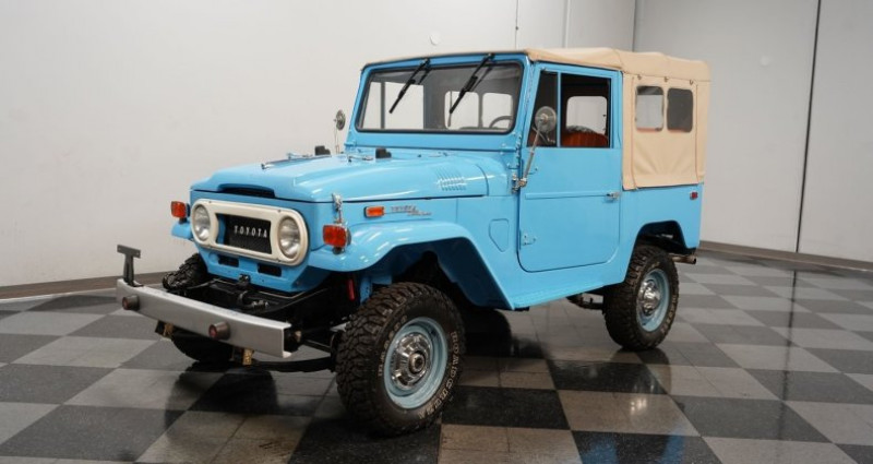 - Marque : Toyota - Modèle : Land Cruiser FJ40 - Année : 1970 - Couleur extérieure : Sky Blue - Couleur intérieure : Cinnamon - Type de carrosserie : SUV - Transmission : 4 vitesses manuelle - Propulsion : 4X4 - Moteur : 4.2L 2F Inline 6 - Kilométrage : 569 miles - Système de freinage : disques avant, tambours arrière - Système de suspension : soulevé - Direction : assistée - Climatisation : fonctionnelle - Capot moteur : propre - Toit : removable soft top - Financing et plans d'assurance disponibles - Livraison mondiale possible - Numéro de VIN : FJ4082938. Provenance : Georgia. Disponibilité : environ 7 semaines, clés en main. 51 000 € tout compris (importation, taxes, procédure d'immatriculation). Annonce publiée le 12/12/2025