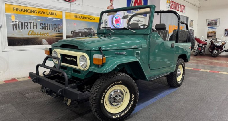 - Marque : Toyota - Modèle : FJ40 - Année : 1976 - Couleur extérieure : Vert - Couleur intérieure : Gris foncé - Transmission : Manuelle - Moteur : 258 6 cylindres - Kilométrage : 33 050 - Vendeur : North Shore Classics - Stock : 76882. Provenance : Illinois. Disponibilité : environ 7 semaines, clés en main. 71 500 € tout compris (importation, taxes, procédure d'immatriculation). Annonce publiée le 30/12/2025