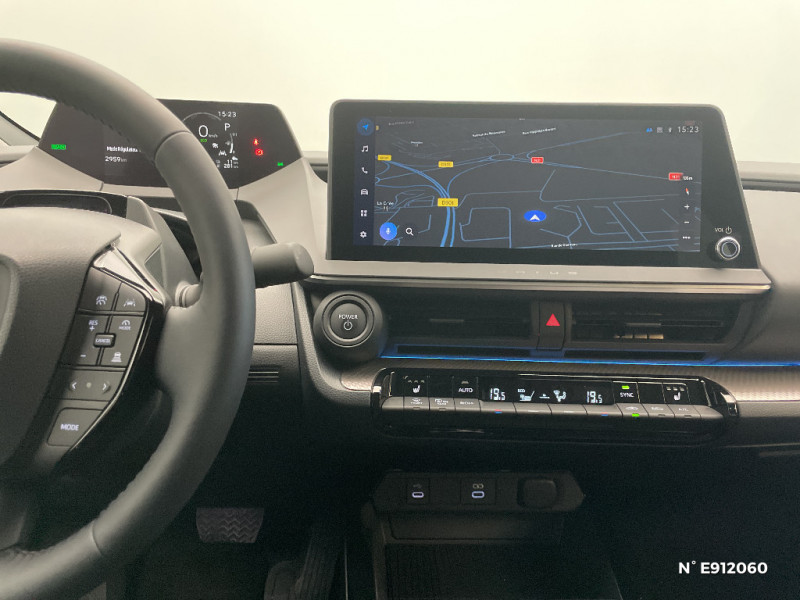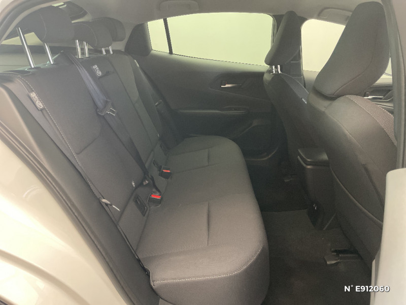 Système de freinage antiblocage ABS+BA+EBD / Système de freinage régénératif renforcé (3 force) / Système d'ouverture/fermeture et démarrage sans clé "Smart Entry & Start" (conducteur, passager et coffre) / Système intelligent de conduite électrique / Services connectés de contrôle à distance MyToyota (inclus 4 ans) / Services connectés standards MyToyota (inclus 10 ans) / Essuie-glace AV à détecteur de pluie / Fermeture centralisée avec commande à distance et verrouillage automatique des ouvrants en roulant / Seuils des portes aluminium / Ajustement automatique de la hauteur des phares / Antenne de toit type requin / Assistance à la décélération / Bandeau lumineux à LED (Feux AR) / Câble de recharge Mode 2 (Type 2) - Domestique (8 A) - 5 m / Câble de recharge Mode 3 (Type 2) - Borne de recharge (32 A) - 7,5 m / Cache-bagages / Chargeur embarqué 3,3 kW / Ciel de toit gris clair / Climatisation à régulation automatique bizone activable à distance / Combiné d'instrumentation avec affichage "tête haute" de 7" / Eclairage d'ambiance intérieur / Ecran couleur tactile 12,3" haute définition radio digitale DAB et système de téléphonie Bluetooth / Aérateurs aux places AR / Feux clignotants, de jour, de route et AR à LED / Feux clignotants intégrés aux feux de jour a LED / Feux de route adaptatifs (AHS) / Frein de statlionnement électrique / Grille de calandre noir et argenté avec contour noir laqué / Kit anti-crevaison / Kit de sécurité / Lunette de hayon et Vitres AR surteintées / Pare-chocs AR noirs laqué / Passage de roues noir laqué / Poignées de portes extérieures couleur carroserie / Ports USB type C (2 AV et 2 AR) / Prise 12 V (1 sur la console centrale) / Programme "Toyota Experience" / Purificateur d'air ionique nanoe X / Rétroviseur intérieur intelligent / Rétroviseurs extérieurs électriques, dégivrants, et rabattables automatiquement avec rappels de clignotants / Siege conducteur a réglages électriques (8 positions) et réglage lombaire électrique / Sacoche de rangement pour le câble de recharge / Sélection mode de conduite : EV, NORMAL, SPORT, CUSTOM / Système multimédia Toyota Smart Connect Plus Système de connectivité smartphone filaire Android Auto (connexion avec un câble USB certifié), Système de connectivité smartphone sans fil Apple CarPlay, Navigation connectée avec Infotrafic en temps réel avec mise à jour cartographiques (incluses 4 ans), Smart Parking (aide à la recherche de stationnement), Recherche point d'intérêts (stationsservices, restaurants) (inclus 4 ans), Assistant vocal "Hey Toyota", Navigation satellitaire embarquée, Zones de dangers fixes / Tapis de sol / Toyota T-MATE / Systeme de sécurité Toyota Safety Sense Système de sécurité précollision avec détection des obstacles+direction assistée d'urgence,Régulateur de vitesse adaptatif intelligent,Alerte de franchissement de ligne avec aide au maintien dans la file,Lecture des panneaux de signalisation avec limiteur de vitesse,Gestion automatique des feux de route,Assistance à la conduite proactive,Système d'arrêt d'urgence autonome,Aide active au changement de voie liée au feux clignotants,Feux de détresse AR automatiques,à?cl.d'ambiance intelligent indic. / Toyota T-MATE / Systemes d'aide a la conduite Avertisseur d'angle mort (BSM), Avertisseur de circulation AV (FCTA) ,Alerte de détection des cyclistes et véhicules a l'ouverture des portes (SEA) / Toyota T-MATE / Systemes d'aide au stationnement Caméra de recul (avec lave-caméra), Freinage d'aide au stationnement (PKSB), Radars de stationnement AV/AR / Vitres électriques avec système antipincement, descente et remontée à impulsion / Volant chauffant / Volant multifonctions avec revêtement Premium / 6 HP / 7 Airbags (frontaux et latéraux pour conducteur et passager AV, rideaux AV et AR et protège-genoux conducteur, avec déconnexion de l´airbag passager) / Siège passager coulissant à réglages manuels (4 positions) / Système d'appel d'urgence automatique "E-Call" / Système d'avertissement acoustique d'approche du véhicule (AVAS) / Système de contrôle de motricité (TRC) et de stabilité du véhicule (TSC)