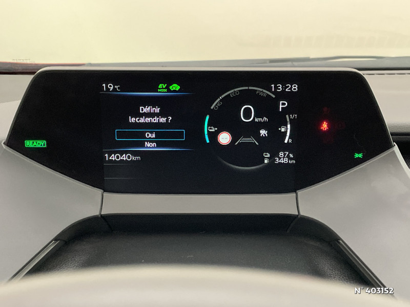 Assistance à la décélération / Bandeau lumineux à LED (Feux AR) / Boîte automatique à variation continue / Câble de recharge Mode 2 (Type 2) - Domestique (8 A) - 5 m / Câble de recharge Mode 3 (Type 2) - Borne de recharge (32 A) - 7,5 m / Cache-bagages / Chargeur embarqué 3,3 kW / Ciel de toit gris clair / Climatisation à régulation automatique bizone activable à distance / Combiné d'instrumentation avec affichage "tête haute" de 7" / Contrôle de traction (TCS) / Eclairage d'ambiance intérieur / Ecran couleur tactile 12,3" haute définition radio digitale DAB et système de téléphonie Bluetooth / Electrostabilisateur programmé (ESP) / Essuie-glace AV à détecteur de pluie / Fermeture centralisée avec commande à distance et verrouillage automatique des ouvrants en roulant / Feux clignotants, de jour, de route et AR à LED / Feux clignotants intégrés aux feux de jour a LED / Feux de route adaptatifs (AHS) / Frein de statlionnement électrique / Grille de calandre noir et argenté avec contour noir laqué / Kit anti-crevaison / Kit de sécurité / Lunette de hayon et Vitres AR surteintées / Pare-chocs AR noirs laqué / Passage de roues noir laqué / Poignées de portes extérieures couleur carroserie / Ports USB type C (2 AV et 2 AR) / Prise 12 V (1 sur la console centrale) / Programme "Toyota Experience" / Purificateur d'air ionique nanoe X / Radars de stationnement AV/AR anticollision (ICS) / Rétroviseur intérieur intelligent / Rétroviseurs extérieurs électriques, dégivrants, et rabattables automatiquement avec rappels de clignotants / Sacoche de rangement pour le câble de recharge / Sélection mode de conduite : EV, NORMAL, SPORT, CUSTOM / Services connectés de contrôle à distance MyToyota (inclus 4 ans) / Services connectés standards MyToyota (inclus 10 ans) / Seuils des portes aluminium / Siege conducteur a réglages électriques (8 positions) et réglage lombaire électrique avec fonction mémoire / Siège passager coulissant à réglages manuels (4 positions) / Système d'appel d'urgence automatique "E-Call" / Système d'avertissement acoustique d'approche du véhicule (AVAS) / Système de contrôle de motricité (TRC) et de stabilité du véhicule (TSC) / Système de freinage antiblocage ABS+BA+EBD / Système de freinage régénératif renforcé (3 force) / Système de stationnement autonome "Toyota Teammate Advanced Park" avec commande à distance (IPA) / Système d'ouverture/fermeture et démarrage sans clé "Smart Entry & Start" (conducteur, passager et coffre) / Système intelligent de conduite électrique / Système multimédia Toyota Smart Connect Plus Système de connectivité smartphone filaire Android Auto (connexion avec un câble USB certifié), Système de connectivité smartphone sans fil Apple CarPlay, Navigation connectée avec Infotrafic en temps réel avec mise à jour cartographiques (incluses 4 ans), Smart Parking (aide à la recherche de stationnement), Recherche point d'intérêts (stationsservices, restaurants) (inclus 4 ans), Assistant vocal "Hey Toyota", Navigation satellitaire embarquée, Zones de dangers fixes / Tapis de sol / Toit solaire photovoltaïque / Toyota T-MATE / Systeme de sécurité Toyota Safety Sense Système de sécurité précollision avec détection des obstacles+direction assistée d'urgence,Régulateur de vitesse adaptatif intelligent,Alerte de franchissement de ligne avec aide au maintien dans la file,Lecture des panneaux de signalisation avec limiteur de vitesse,Gestion automatique des feux de route,Assistance à la conduite proactive,Système d'arrêt d'urgence autonome,Aide active au changement de voie liée au feux clignotants,Feux de détresse AR automatiques,à?cl.d'ambiance intelligent indic. / Toyota T-MATE / Systemes d'aide a la conduite Avertisseur d'angle mort (BSM), Avertisseur de circulation AV (FCTA) ,Alerte de détection des cyclistes et véhicules a l'ouverture des portes (SEA) / Toyota T-MATE / Systemes d'aide au stationnement Systeme de vision 360° , Freinage d'aide au stationnement (PKSB), Radars de stationnement AV/AR / Vitres électriques avec système antipincement, descente et remontée à impulsion / Volant chauffant / Volant multifonctions avec revêtement Premium / 6 HP / 7 Airbags (frontaux et latéraux pour conducteur et passager AV, rideaux AV et AR et protège-genoux conducteur, avec déconnexion de l´airbag passager) / Aérateurs aux places AR / Ajustement automatique de la hauteur des phares / Antenne de toit type requin