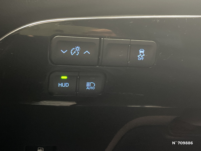 Toyota Touch & Go 2 / Rétroviseur intérieur anti-éblouissement / Accoudoir central AV avec compartiment de rangement / Gestion automatique des feux de route (AHB) / Alerte de franchissement de ligne avec aide au maintien dans la file et détecteur de fatigue / Avertisseur d'angles morts (BSM) / Toyota Safety Sense Système de sécurité précollision avec détection des piétons, Alerte de franchissement de ligne et détecteur de fatigue, gestion automatique des feux de route, lecture des panneaux de signalisation, régulateur de vitesse adaptatif. / Antenne de toit type requin / Système de freinage antiblocage (ABS) et répartiteur électronique de la force de freinage (EBD), amplificateur (BA) et d'alerte de freinage d'urgence (EBS) / Kit de réparation anti-crevaison / Pack Premium / Tapis de sol Hybride / Habillage des contre-portes faà§on cuir / Siège conducteur à réglage électrique du support lombaire / Indicateur de sous-gonflage des pneus / Systèmes de sécurité : freinage électronique (EBS), freinage antiblocage (ABS), BA et EBD, contrôle de motricité E-TRC et de stabilité VSC+ ,direction assistée (EPS) / Ordinateur de bord avec écran TFT couleur 4.2" multifonctions / Ordinateur de bord avec double écran TFT couleur 4.2" multifonction / Tableau de bord et sellerie noirs ou gris clair avec contour des aérateur bleu / Système Toyota Touch 2: Ecran couleur tactile 7" multifonction, Système audio Radio et DAB, CD, Système de téléphonie Bluetooth Caméra de recul, 6HP et Prises auxiliaires/USB compatibilité iPod / Avertisseur de circulation AR (RCTA) / Follow me home (feux AV à extinction différée) / Direction assistée asservie à la vitesse / Peinture Blanc Pur / 7 Airbags (frontaux, lateraux, rideaux et un protège-genoux conducteur) / Feux de jour à LED et projecteurs Bi-LED / Feux de croisement à LED / Indicateur de conduite ECO Drive / Système de contrôle de motricité (E-TCR) / Système d'ouverture/fermeture et démarrage sans clé "Smart Entry & Start" (conducteur, passager et coffre) / Smart Entry & Start