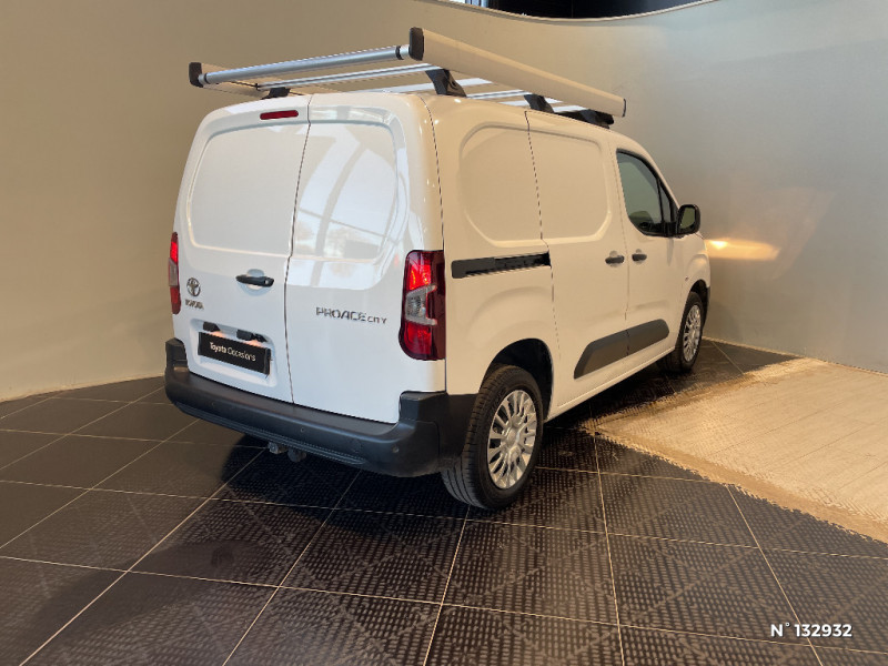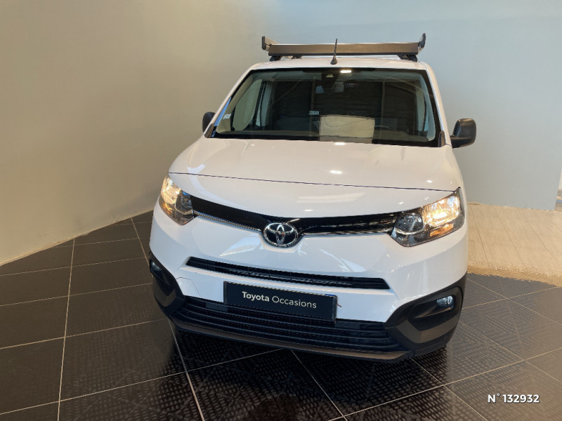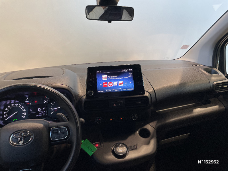 6 anneaux d'arrimage universels sur la planche de la zone de chargement / Baguettes latérales de protection noires / Banquette passager 2 places avec système Moduwork / Boîte à gants inférieure ouverte / Capucine de rangement supérieure / Charge utile renforcée 950 kg / Cloison pleine tôlée fixe avec crochet porte-habits / Cloison semi-vitrée fixe / Coques de rétroviseurs extérieurs noires / E-call / Essuie-vitre AV manuel / Frein à main électrique / Indicateur de perte de pression des pneus / Jantes en acier 16" avec enjoliveurs / Pare-chocs AV/AR en plastique noir / Peinture Blanc Banquise / Plafonniers dans l'habitacle et dans l'espace de chargement / Poignées des portes extérieures noires / Portes AR battantes tôlées 60/40 avec ouverture à 180° / Revêtement de l'espace de chargement en plastique (TPO) / Siège conducteur "Confort" avec réglage longuer, hauteur, inclinaison du dossier et réglage lombaire manuel / Système de contrôle de la trajectoire (ESC) / Système de freinage antiblocage (ESP) / Système de navigation Toyota Pro-Touch avec écran 8" et connectivité smartphone (Mirror Link, Apple CarPlay, Android Auto) / Système radio numérique (DAB) Bluetooth, prises USB et prise jack / Tapis de sol AV / Verrouillage centraliséà distance (1 clé télécommande + 1 clé mécanique)