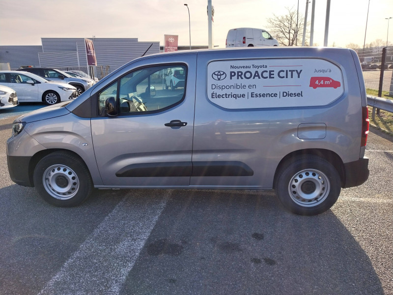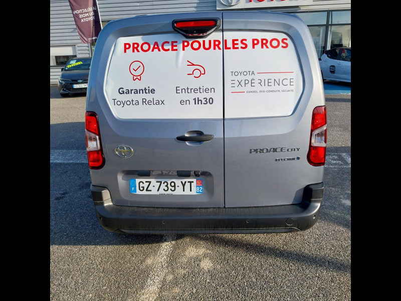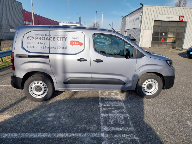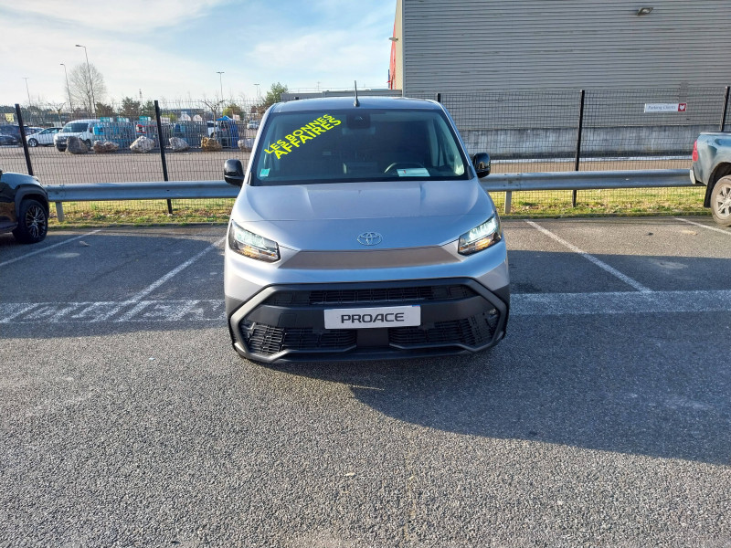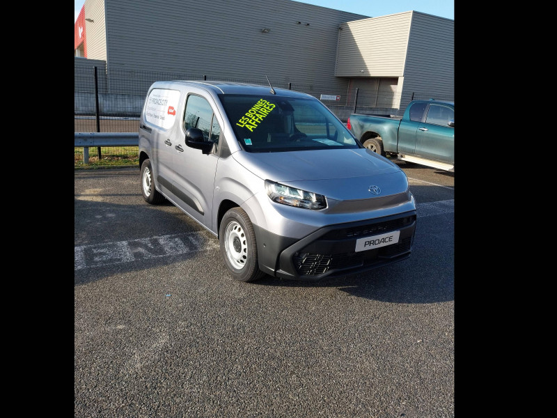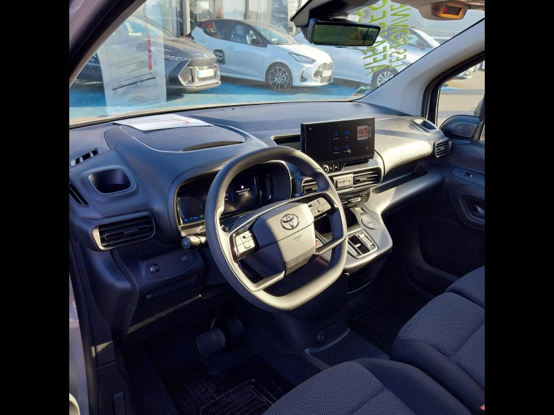 2 clés télcommandes / 2 USB-C (charge), 1 USB-A (données + charge) / 6 crochets d'arrimage dans l'espace de chargement / ABS, ESP, TCS / Airbags conducteur et passagers frontaux, rideaux et latéraux / Boîte à gants inférieure ouverte côté passager / Câble de recharge Mode 2 pour prise domestique - 6 m / Câble de recharge Mode 3 pour borne électrique - 7,5 m / Capucine de rangement supérieure / Chargeur embarqué 11 kW / Charge utile 800 kg / Cloison pleine tôlée fixe / Combiné d'instrumentation monochrome standard / Coques de rétroviseurs extérieurs noires / Eclairage dans la zone de chargement / Essuie-vitre AV manuel / E-toggle / Frein de stationnement électrique / Indicateur de perte de pression des pneus / Jantes en acier 16" grises avec cabochons / Kit de produits d'entretien "Toyota Car Care" / Kit de sécurité / Marteau de sécurité brise-vitre / Pare-chocs AV/AR en plastique noir / Plafonniers AV / Plancher en bois dans la zone de chargement / Pneumatiques 215/65 R16 102H / Poignées de portes interieures noires / Poignées des portes extérieures en plastique noires / Portes AR battantes tôlées 60/40 avec ouverture à 180° / Prédispositif barres de toit / Protections latérales en plastique noir / Sac de rangement pour câbles de recharge / Sellerie tissu classique / Siège conducteur avec réglage manuel longueur, hauteur et inclinaison du dossier, avec support lombaire et accoudoir / Siège passager individuel ajustable manuellement / Système d'appel d'urgence automatique E-Call / Système radio AM, FM et numérique (DAB) avec écran tactile monochrome 5", connectivité connectivité Bluetooth et commandes audio au volant et 4 hp / Tapis de sol AV caoutchouc / Toyota Safety Sense Système de sécurité précollision, Lecture des panneaux de signalisation, Détecteur d'attention du conducteur, Aide au maintien dans la voie avec correction de la direction, Gestion automatique des feux de route. / Volant et levier de vitesses en uréthane