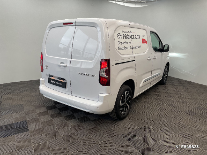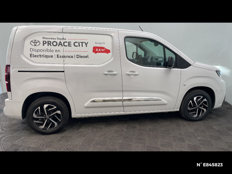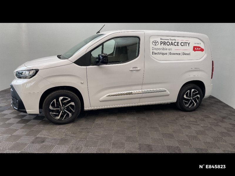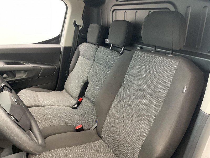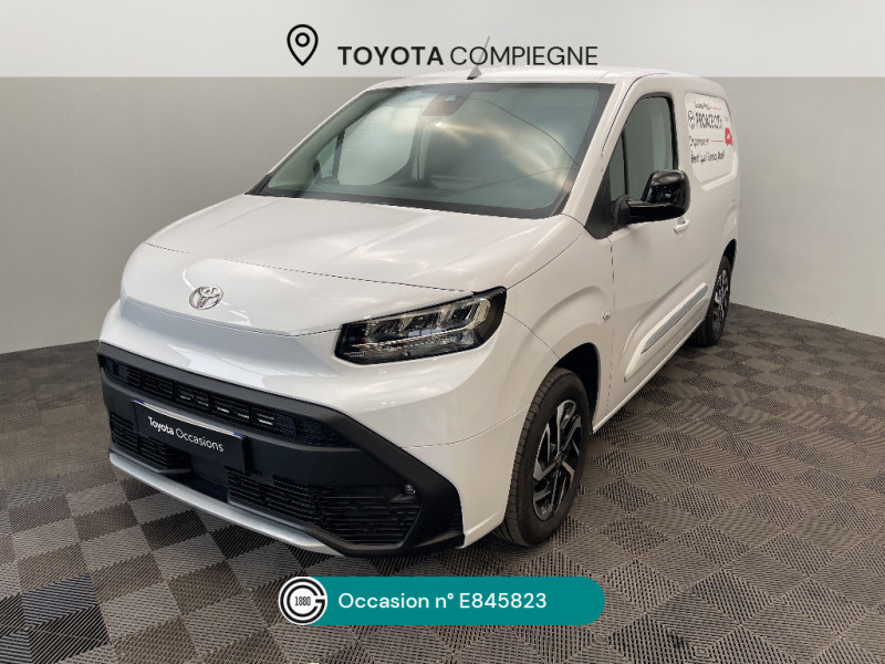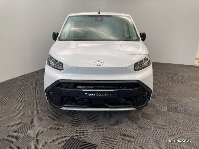 Tapis de sol AV caoutchouc / Coques de rétroviseurs extérieurs noires / Eclairage dans la zone de chargement / Essuie-vitre AV manuel / Frein de stationnement électrique / Indicateur de perte de pression des pneus / Jantes en acier 15" grises avec cabochons / Kit de produits d¿entretien "Toyota Car Care" / Kit de sécurité / Marteau de sécurité brise-vitre / Pare-chocs AV/AR en plastique noir / Peinture opaque / Plafonniers AV / Plancher en bois dans la zone de chargement / Poignées des portes extérieures en plastique noires / Portes AR battantes tôlées 60/40 avec ouverture à 180° / Prédispositif barres de toit / Programme Toyota Expérience Dimininution de la sinistralité, Réduction de l´empreinte carbone, Réduction de la consommation, Optimisation des coûts, Sécurisaton et gestion des charges, Aide à la prise en main d´un véhicule électrique / Protections latérales en plastique noir / Sellerie tissu Gris / Siège conducteur avec réglage manuel longueur, hauteur et inclinaison du dossier, avec support lombaire et accoudoir / Siège passager individuel ajustable manuellement / Système d'appel d'urgence automatique E-Call / Système de freinage antiblocage (ESP) / Système de sécurité Toyota Safety Sense / Pneus 195/65 R15 91H / Poignées de portes interieures noires / Airbags conducteur et passagers frontaux, rideaux et latéraux / Boîte à gants inférieure ouverte côté passager / Boîte manuelle à 6 vitesse / Capucine de rangement supérieure / Charge utile jusqu¿à 850 kg / Toyota Safety Sense Système de sécurité précollision, Lecture des panneaux de signalisation, Détecteur d¿attention du conducteur, Aide au maintien dans la voie avec correction de la direction, Gestion automatique des feux de route. / Cloison pleine tôlée fixe / Combiné d¿instrumentation monochrome standard / Volant et levier de vitesses en uréthane / 2 clés télcommandes / 2 places / 6 anneaux d'arrimage universels sur la planche de la zone de chargement / Système radio AM, FM et numérique (DAB) avec écran tactile monochrome 5", connectivité Bluetooth et commandes audio au volant et 4 hp / Contrôle de la traction (TCS)