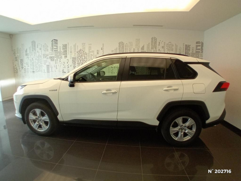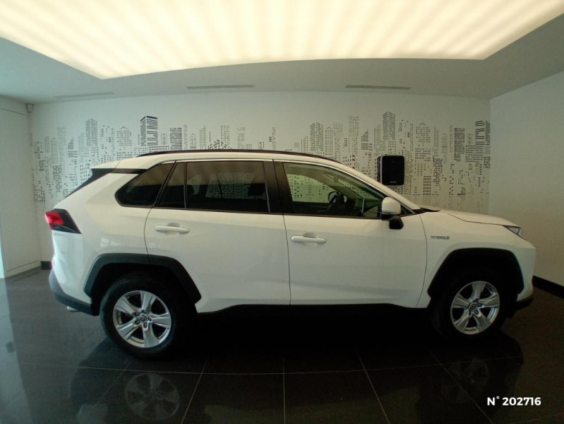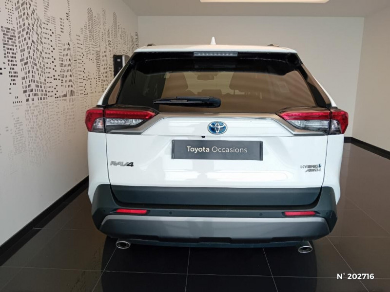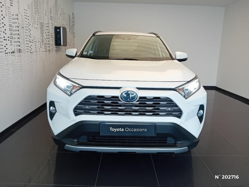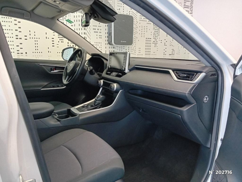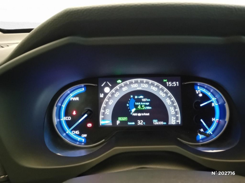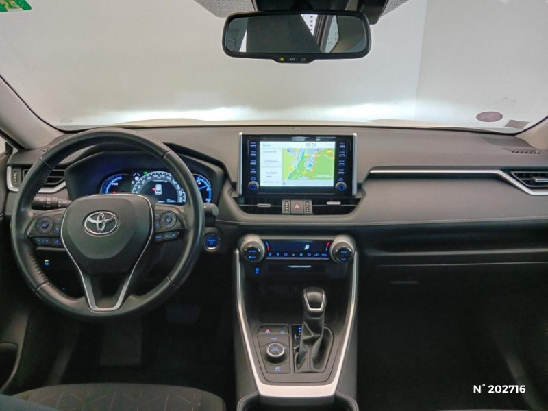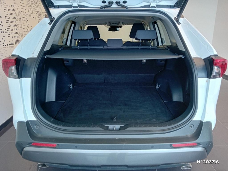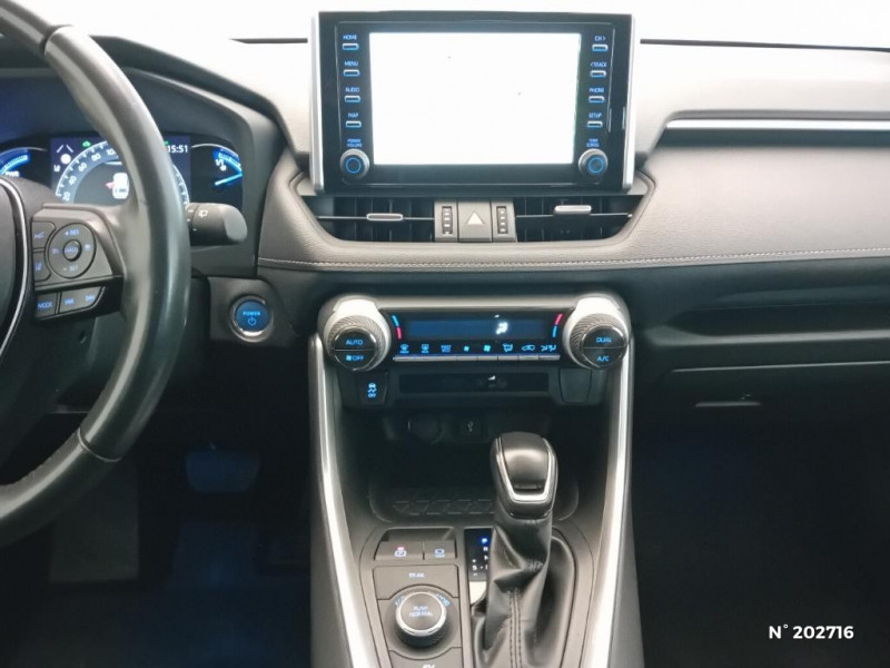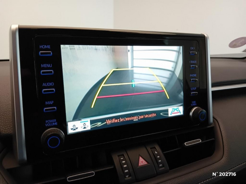 Cache-bagages / Ciel de pavillon gris / Coffre à ouverture et fermeture électriques / Combiné d'instrumentation avec écran couleur TFT 8" / Contreportes en cuir synthétique / Crochets porte-manteaux x2 / Double sortie d'echappement ovale / Ecrous antivol / Essuie-glaces adaptatifs avec détecteur de pluie / Fermeture centralisée avec commande à distance et verrouillage des ouvrants en roulant / Filet coffre / Frein de stationnement électrique / Frein de statlionnement électrique / Grille de calandre couleur acier / Indicateur de sous-gonflage des pneus / Kit de sécurité / Optiques AV et AR à LED / Ornements latéraux chromés / Peinture métallisée bi-ton ou nacrée bi-ton / Plancher de coffre réversible avec revers imperméable / Poignées de portes et rétroviseurs extérieurs couleur carrosserie / Poignées de portes extérieures couleur carroserie avec insert chromé / Protection de seuil de coffre en acier inoxydable / Protections de soubassement avant et arrière grises / Rétroviseur intérieur électrochromatique / Rétroviseurs extérieurs électriques, dégivrants et rabattables électriquement avec rappel de clignotants / Roue de secours 17" de type galette dans le coffre / Sélection mode de conduite : ECO, NORMAL, SPORT / Toyota Touch & Go : système de navigation à écran tactile 8" avec reconnaissance vocale, info trafic et cartographie européenne 3D / Vitres électriques avec système anti-pincement / Volant et levier de vitesses gainés cuir / Volant multifonction 3 branches, réglable manuellement en hauteur et profondeur / 6 HP / Seuils des portes aluminium siglés RAV4 / Smart Entry & Start / Système audio Toyota " Touch " avec écran tactile 8'' et 6 HP / Système d'appel d'urgence automatique "E-Call" / Système d'avertissement acoustique d'approche du véhicule (AVAS) / Système de freinage antiblocage (ABS), BA et EBD / Système de téléphone Bluethooth / Système d'ouverture/fermeture des portes et démarrage sans clé "Smart Entry & Start" / Système intelligent de plancher plat Toyota Easy Flat System / Système "Toyota Touch" / Systèmes de contrôle de motricité (TRC) et de stabilité du véhicule / Tapis de sol RAV4 Hybrid en velours, AV et AR / Toit ouvrant panoramique à ouverture électrique / Toyota Safety Sense Système de sécurité précollision avec détection des piétons, Alerte de franchissement de ligne et détecteur de fatigue, gestion automatique des feux de route, lecture des panneaux de signalisation, régulateur de vitesse adaptatif. / Accoudoir central AV avec compartiment de rangement / Alerte d'oubli de ceinture et de lumière / Antenne de toit aileron de requin / Appuis-tête AV réglables en hauteur et en inclinaison réglables / "ATTENTION" - Equipements incomplets / "ATTENTION" - Equipements non communiqués / Avertisseurs d'angles morts et de circulation AR / Badge AWD-i sur hayon