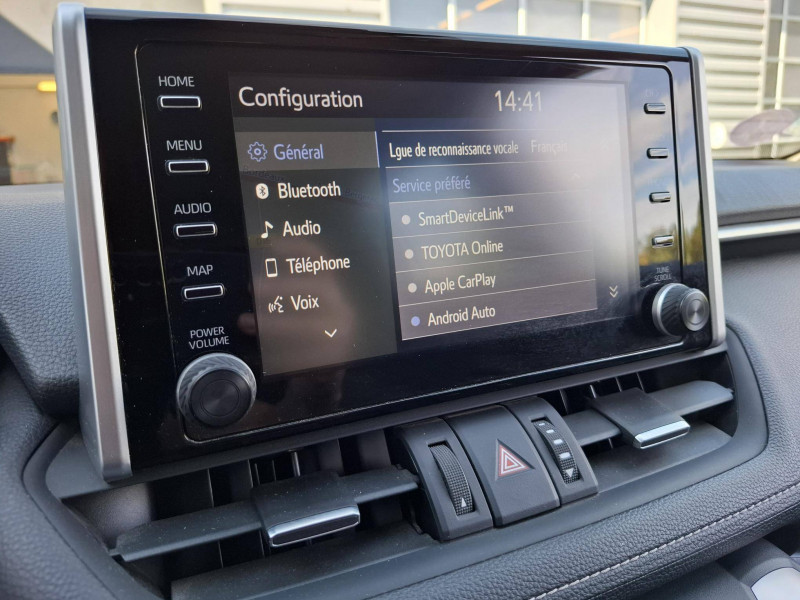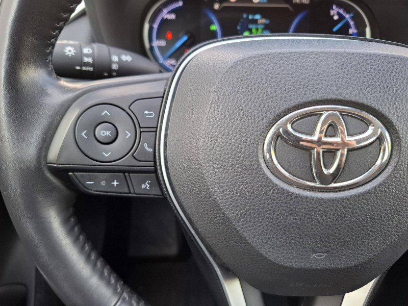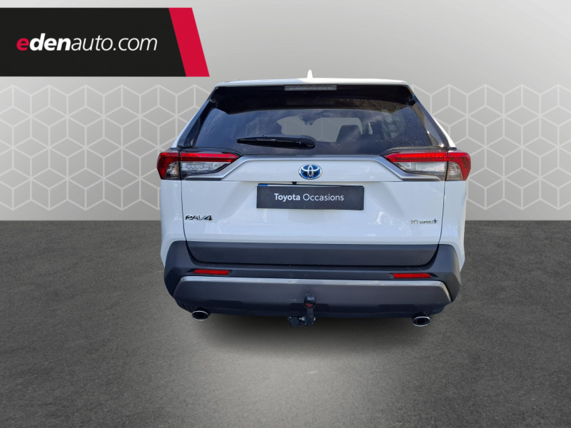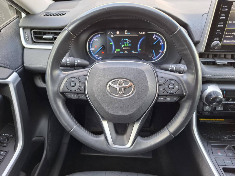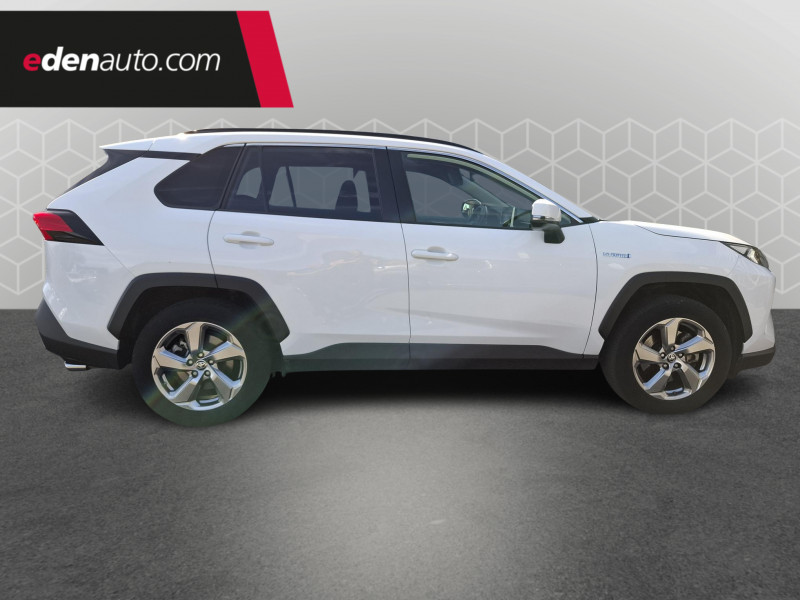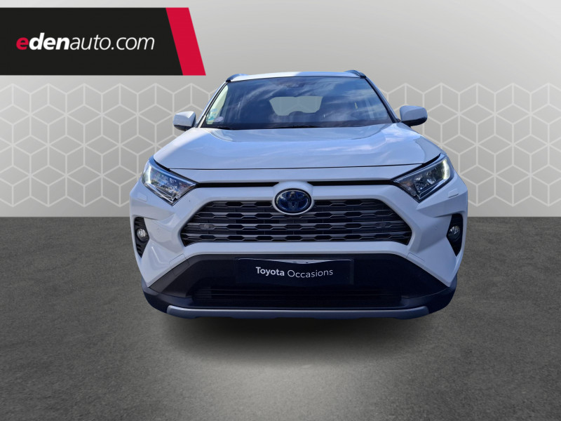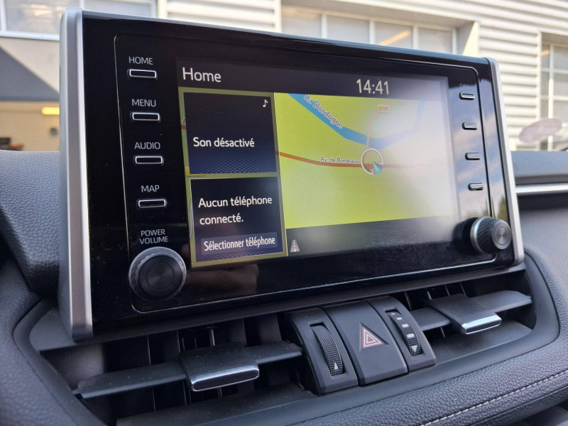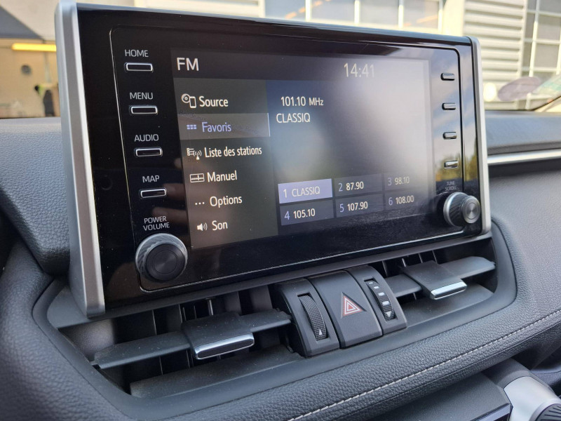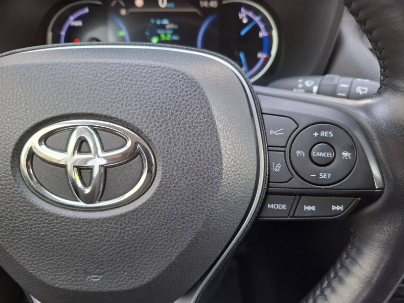 6 HP / Accoudoir central AV avec compartiment de rangement / Alerte d'oubli de ceinture et de lumière / Antenne de toit aileron de requin / Appuis-tête AV réglables en hauteur et en inclinaison réglables / Avertisseurs d'angles morts et de circulation AR / Badge AWD-i sur hayon / Cache-bagages / Ciel de pavillon gris / Coffre à ouverture et fermeture électriques / Combiné d'instrumentation avec écran couleur TFT 8" / Contreportes en cuir synthétique / Crochets porte-manteaux x2 / Double sortie d'echappement ovale / Ecrous antivol / Essuie-glaces adaptatifs avec détecteur de pluie / Fermeture centralisée avec commande à distance et verrouillage des ouvrants en roulant / Filet coffre / Frein de stationnement électrique / Grille de calandre couleur acier / Indicateur de sous-gonflage des pneus / Kit de sécurité / Optiques AV et AR à LED / Ornements latéraux chromés / Peinture métallisée bi-ton ou nacrée bi-ton / Plancher de coffre réversible avec revers imperméable / Poignées de portes et rétroviseurs extérieurs couleur carrosserie / Poignées de portes extérieures couleur carroserie avec insert chromé / Protection de seuil de coffre en acier inoxydable / Protections de soubassement avant et arrière grises / Rétroviseur intérieur électrochromatique / Rétroviseurs extérieurs électriques, dégivrants et rabattables électriquement avec rappel de clignotants / Roue de secours 17" de type galette dans le coffre / Sélection mode de conduite : ECO, NORMAL, SPORT / Seuils des portes aluminium siglés RAV4 / Smart Entry & Start / Système d'appel d'urgence automatique "E-Call" / Système d'avertissement acoustique d'approche du véhicule (AVAS) / Système de freinage antiblocage (ABS), BA et EBD / Système de téléphone Bluethooth / Système d'ouverture/fermeture des portes et démarrage sans clé "Smart Entry & Start" / Système intelligent de plancher plat Toyota Easy Flat System / Systèmes de contrôle de motricité (TRC) et de stabilité du véhicule / Tapis de sol RAV4 Hybrid en velours, AV et AR / Toyota Safety Sense Système de sécurité précollision avec détection des piétons, Alerte de franchissement de ligne et détecteur de fatigue, gestion automatique des feux de route, lecture des panneaux de signalisation, régulateur de vitesse adaptatif. / Vitres électriques avec système anti-pincement / Volant et levier de vitesses gainés cuir / Volant multifonction 3 branches, réglable manuellement en hauteur et profondeur