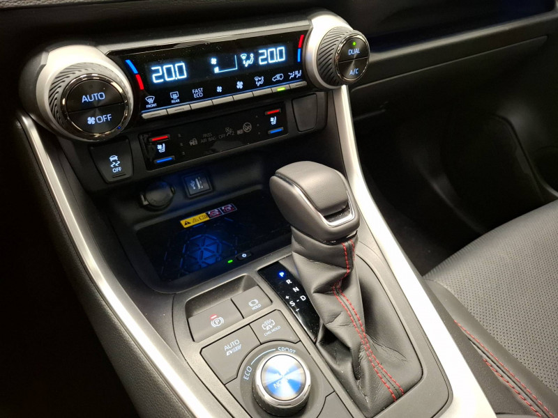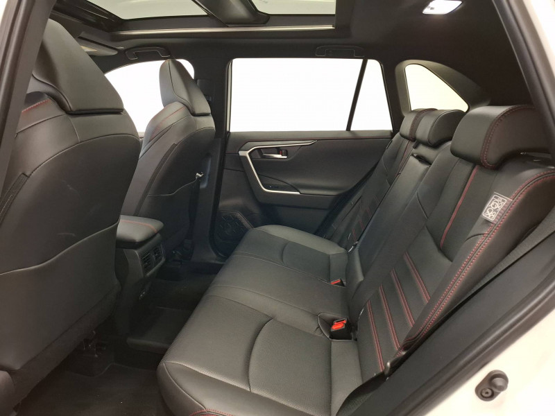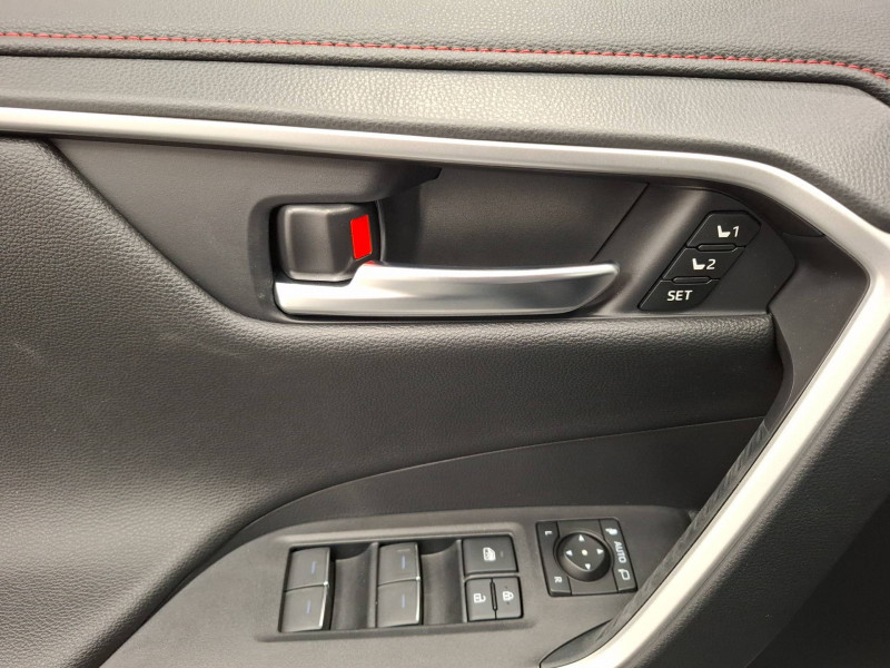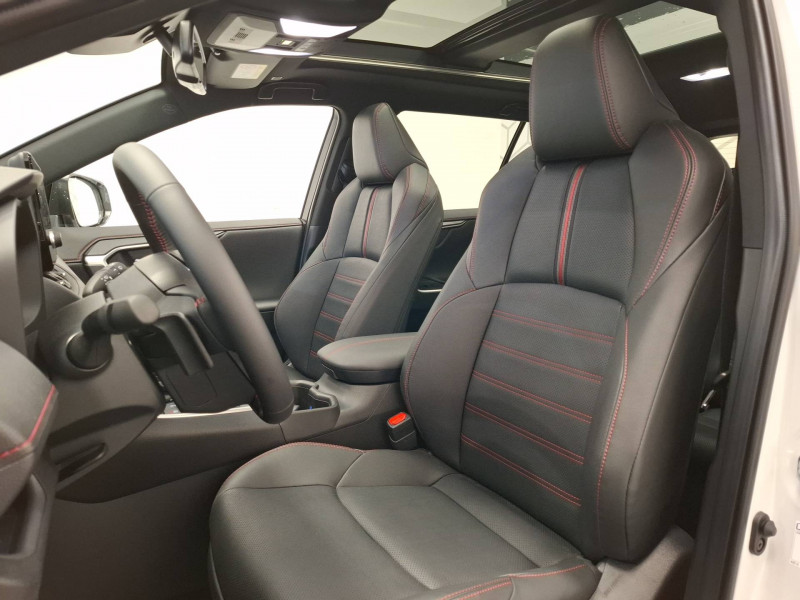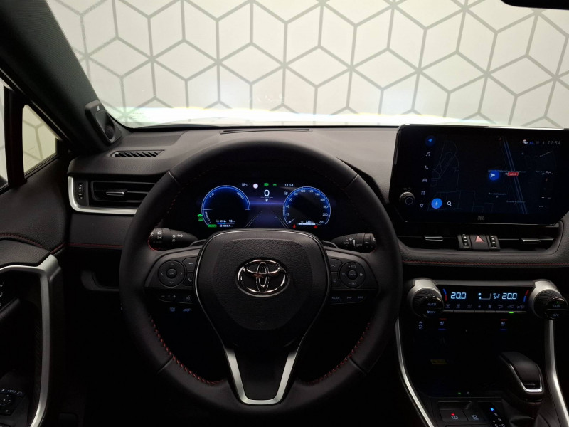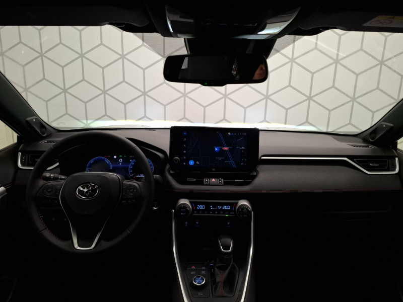 1 Port USB sur console centrale / 7 Airbags (1 protège-genoux conducteur, 2 fronteaux AV, 2 lateraux AV, 2 rideaux AV et AR) avec déconnexion de l'airbag passager / Accoudoir central AV avec compartiment de rangement / Antenne de toit type requin / Avertisseur de circulation AR avec freinage d'urgence automatique (PKSB) / Bandeau de planche de bord gainé de cuir noir / Barres de toit longitudinales / Câble de recharge Mode 2 (Type 2) - Domestique (3.3 kW) / Câble de recharge Mode 3 (Type 2) 6,6kW - 7,5m - avec prise Mennekes / Calandre AV noir laqué / Carrosserie bi-ton avec toit et piliers peints en Noir Attitude / Ciel de pavillon noir / Climatisation à régulation automatique bizone activable à distance / Coffre à ouverture et fermeture électriques / Commande de blocage de différentiel "Trail" / Commande de boîte de vitesses séquentielles / Commandes des vitres rétroéclairées / Compartiment de rangement dans la console centrale / Compteur numérique personnalisable 12,3" / Coques de rétroviseur extérieur noir laqué / Direction électrique motorisée (RP-EPS) / Double sortie d'echappement ovale / Eclairage d'accueil LED aux places AV / Ecrous antivol / Eléments de carrosserie de couleur Noir Laqué bas de caisse latéraux, bas de porte de coffre et haut de pare-chocs AR, pare-chocs AV et passages de roues / Essuie-glaces AV avec détecteur de pluie / Fermeture centralisée avec commande à distance et verrouillage des ouvrants en roulant / Filet coffre / Frein de stationnement électrique / Indicateur de perte de pression des pneus / Indicateur de température extérieure / Kit de sécurité / Optiques AV et AR à LED avec nouvelle signature lumineuse Premium / Ornement de calandre AV chromé / Ornements supérieurs de vitre chromés / Ouverture électrique de la trappe à carburant / Poignées de portes extérieures couleur carroserie / Ports USB (1 x console centrale) / Ports USB - Type C - 2 ports supplémentaires dans l'accoudoir / Ports USB - Type C (2 x passagers AR) / Prise 12V 1 x console centrale, 1 x coffre / Prise 220 V / 150 W dans le coffre / Programme "Toyota Experience" / Rétroviseur intérieur électrochromatique / Rétroviseurs extérieurs électriques, dégivrants et rabattables électriquement avec rappel de clignotants / Roue de secours de type galette dans le coffre / Sacoche de rangement pour le câble de recharge / Sélection mode de conduite : ECO, NORMAL, SPORT, EV MODE, EV AUTO, HYBRID MODE, CHARGE MODE / Sellerie cuir noir avec surpiqûres rouges / Services connectés de contrôle à distance MyToyota (inclus 4 ans) / Services connectés standards MyToyota (inclus 10 ans) / Seuils des portes aluminium / Siège conducteur à réglage lombaire électrique / Sièges AV réglables électriquement - 8 posotions (à mémoire côté conducteur) / Système audio JBL Premium avec 9HP / Système d'alarme avec fonction double verrouillage et détection de bris de glace / Système d'appel d'urgence automatique "E-Call" / Système de contrôle de motricité (TRC) et de stabilité du véhicule et de l'attelage (TSC) / Système de freinage antiblocage ABS+BA+EBD / Système d'ouverture/fermeture et démarrage sans clé "Smart Entry & Start" / Système multimédia Toyota Smart Connect: Écran couleur tactile 10,5 haute définition, Connectivité Bluetooth, USB et radio FM et DAB (digitale), Système de connectivité smartphone Apple CarPlay (sans fil), Android Auto (filaire avec un câble USB certifié) Services intelligents dont navigation connectée avec infotrafic en temps réel, mises à jour cartographiques, assistant vocal Hey Toyota et recherche de points d'intérêts / Tapis de sol / Toyota Safety Sense Système de sécurité précollision avec détection des véhicules, piétons et cyclistes, actif également dans les intersections. Alerte de franchissement de ligne avec aide au maintien dans la file, assistant de trajectoire et détecteur de fatigue, Lecture des panneaux de signalisation avec limiteur de vitesse, Gestion automatique des feux de route, Régulateur de vitesse adaptatif intelligent, Système d'aide aux manoeuvres d'évitement d'urgence avec détection des véhicules, piétons et cyclistes / Vitres électriques AV et AR à fonction anti-pincement avec descente et remontée à impulsion / Volant et levier de vitesse gainés cuir / Volant multifonction 3 branches, réglable manuellement en hauteur et profondeur