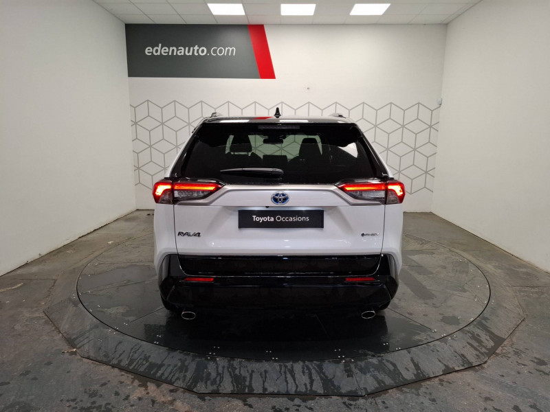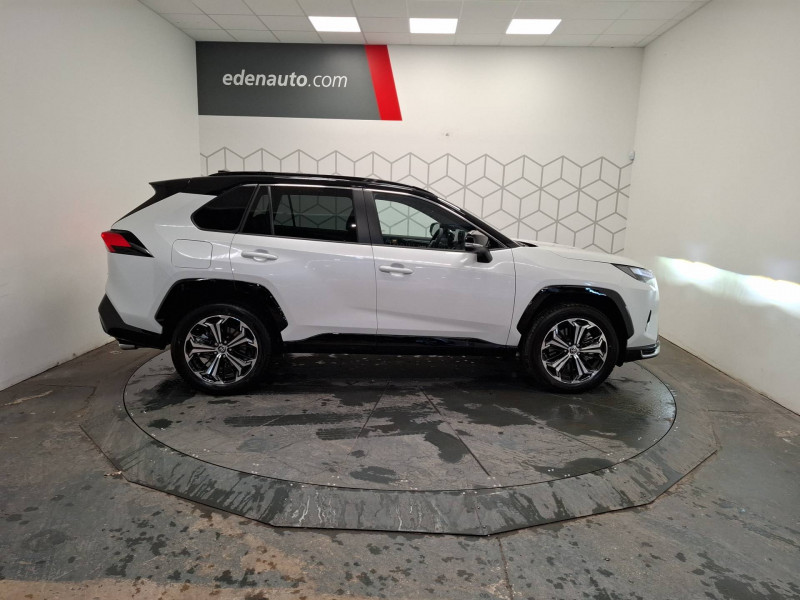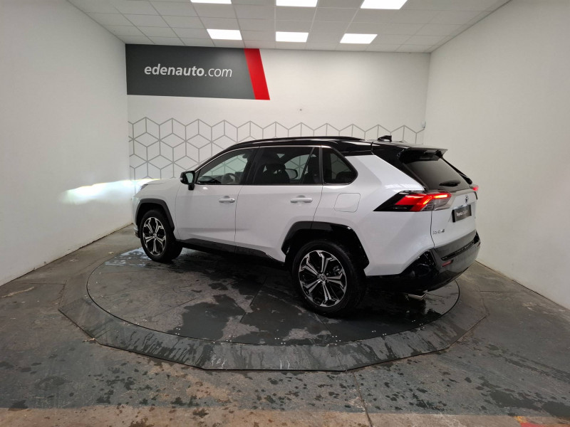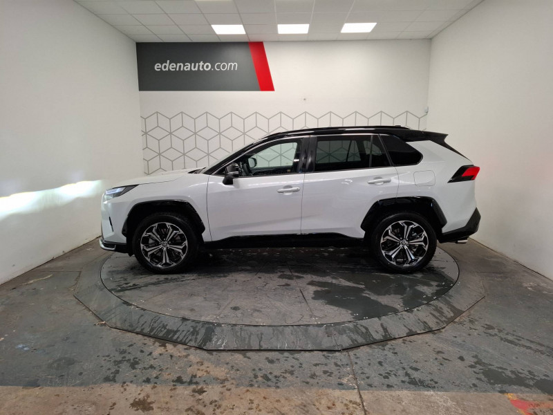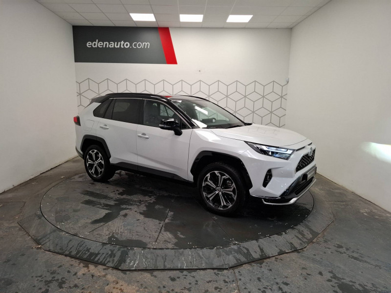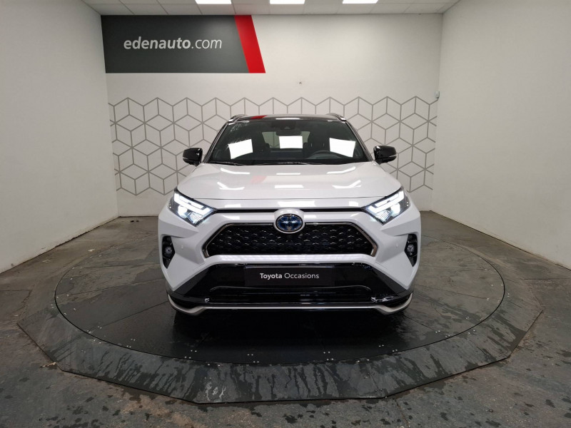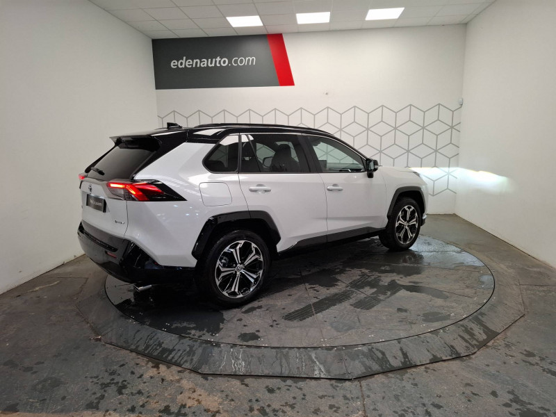 1 Port USB sur console centrale / 7 Airbags (1 protège-genoux conducteur, 2 fronteaux AV, 2 lateraux AV, 2 rideaux AV et AR) avec déconnexion de l'airbag passager / Accoudoir central AV avec compartiment de rangement / Antenne de toit type requin / Avertisseur de circulation AR avec freinage d'urgence automatique (PKSB) / Bandeau de planche de bord gainé de cuir noir / Barres de toit longitudinales / Câble de recharge Mode 2 (Type 2) - Domestique (3.3 kW) / Câble de recharge Mode 3 (Type 2) 6,6kW - 7,5m - avec prise Mennekes / Calandre AV noir laqué / Carrosserie bi-ton avec toit et piliers peints en Noir Attitude / Ciel de pavillon noir / Climatisation à régulation automatique bizone activable à distance / Coffre à ouverture et fermeture électriques / Commande de blocage de différentiel "Trail" / Commande de boîte de vitesses séquentielles / Commandes des vitres rétroéclairées / Compartiment de rangement dans la console centrale / Compteur numérique personnalisable 12,3" / Coques de rétroviseur extérieur noir laqué / Direction électrique motorisée (RP-EPS) / Double sortie d'echappement ovale / Eclairage d'accueil LED aux places AV / Ecrous antivol / Eléments de carrosserie de couleur Noir Laqué bas de caisse latéraux, bas de porte de coffre et haut de pare-chocs AR, pare-chocs AV et passages de roues / Essuie-glaces AV avec détecteur de pluie / Fermeture centralisée avec commande à distance et verrouillage des ouvrants en roulant / Filet coffre / Frein de stationnement électrique / Indicateur de perte de pression des pneus / Indicateur de température extérieure / Kit de sécurité / Optiques AV et AR à LED avec nouvelle signature lumineuse Premium / Ornement de calandre AV chromé / Ornements supérieurs de vitre chromés / Ouverture électrique de la trappe à carburant / Poignées de portes extérieures couleur carroserie / Ports USB (1 x console centrale) / Ports USB - Type C - 2 ports supplémentaires dans l'accoudoir / Ports USB - Type C (2 x passagers AR) / Prise 12V 1 x console centrale, 1 x coffre / Prise 220 V / 150 W dans le coffre / Programme "Toyota Experience" / Rétroviseur intérieur électrochromatique / Rétroviseurs extérieurs électriques, dégivrants et rabattables électriquement avec rappel de clignotants / Roue de secours de type galette dans le coffre / Sacoche de rangement pour le câble de recharge / Sélection mode de conduite : ECO, NORMAL, SPORT, EV MODE, EV AUTO, HYBRID MODE, CHARGE MODE / Sellerie cuir noir avec surpiqûres rouges / Services connectés de contrôle à distance MyToyota (inclus 4 ans) / Services connectés standards MyToyota (inclus 10 ans) / Seuils des portes aluminium / Siège conducteur à réglage lombaire électrique / Sièges AV réglables électriquement - 8 posotions (à mémoire côté conducteur) / Système audio JBL Premium avec 9HP / Système d'alarme avec fonction double verrouillage et détection de bris de glace / Système d'appel d'urgence automatique "E-Call" / Système de contrôle de motricité (TRC) et de stabilité du véhicule et de l'attelage (TSC) / Système de freinage antiblocage ABS+BA+EBD / Système d'ouverture/fermeture et démarrage sans clé "Smart Entry & Start" / Système multimédia Toyota Smart Connect: Écran couleur tactile 10,5 haute définition, Connectivité Bluetooth, USB et radio FM et DAB (digitale), Système de connectivité smartphone Apple CarPlay (sans fil), Android Auto (filaire avec un câble USB certifié) Services intelligents dont navigation connectée avec infotrafic en temps réel, mises à jour cartographiques, assistant vocal Hey Toyota et recherche de points d'intérêts / Tapis de sol / Toyota Safety Sense Système de sécurité précollision avec détection des véhicules, piétons et cyclistes, actif également dans les intersections. Alerte de franchissement de ligne avec aide au maintien dans la file, assistant de trajectoire et détecteur de fatigue, Lecture des panneaux de signalisation avec limiteur de vitesse, Gestion automatique des feux de route, Régulateur de vitesse adaptatif intelligent, Système d'aide aux manoeuvres d'évitement d'urgence avec détection des véhicules, piétons et cyclistes / Vitres électriques AV et AR à fonction anti-pincement avec descente et remontée à impulsion / Volant et levier de vitesse gainés cuir / Volant multifonction 3 branches, réglable manuellement en hauteur et profondeur