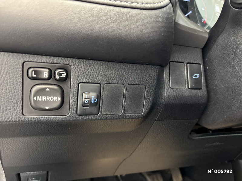 Vitres AV et AR électriques, descente et remontée à impulsion pour le conducteur / Accoudoir central AV avec compartiment de rangement / Airbags protège-genoux conducteur / Antenne type requin / "ATTENTION" - Equipements non communiqués / Bandeau de planche de bord gainé de cuir noir / Coffre à ouverture et fermeture électrique / Direction assistée électrique (EPS) / Ecran couleur multifonctions TFT 4.1" / Essuie-glace AV à détecteur de pluie / Fermeture centralisée avec commande à distance / Indicateur de sous-gonflage des pneus / Indicateur de température extérieure / Poignées de portes et rétroviseurs noirs / Pommeau de levier de vitesse cuir / Prises auxiliaires Jack et USB / Protections inférieures AV et AR / Rétroviseur intérieur électrochromatique (position jour/nuit automatique) / Rétroviseurs extérieurs électriques et dégivrants avec rappels de clignotants intégrés / Sièges AV de type "Sport" / Système audio Toyota Touch 2: Ecran couleur tactile 7" multifonction, système de téléphonie Bluetooth, connectique auxiliaire/USB compatible iPod et 6HP / Système de contrôle de la motricité (TRC) et de stabilité (VSC) / Système de freinage antiblocage ABS + BA + EBD / Système d'ouverture et de démarrage sans clé (Smart Entry & Start) / Système intelligent de plancher plat