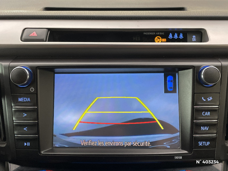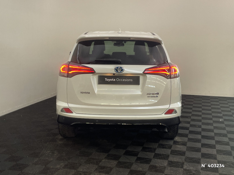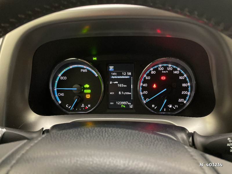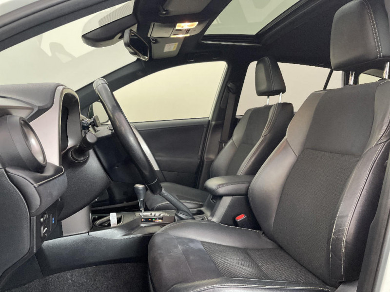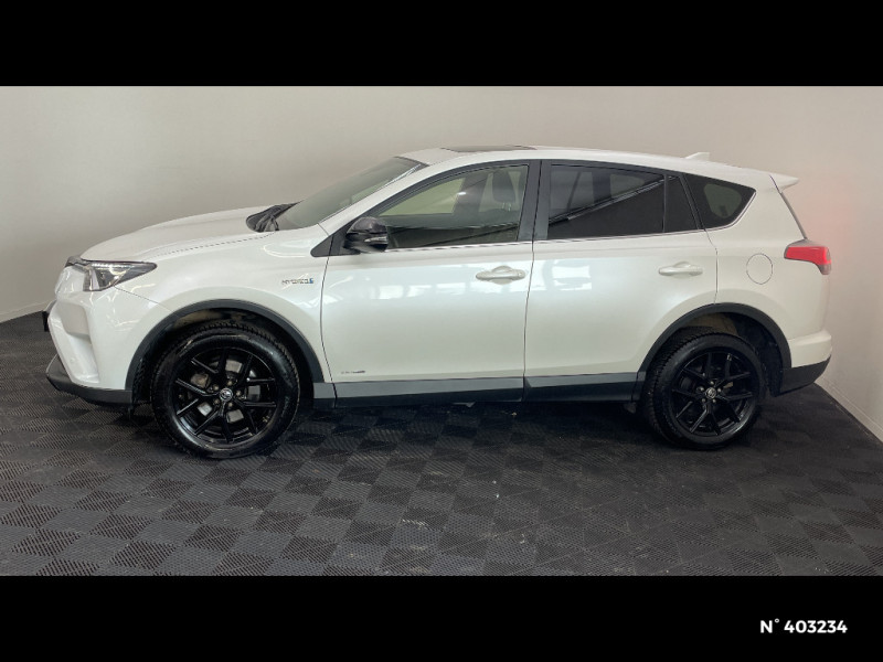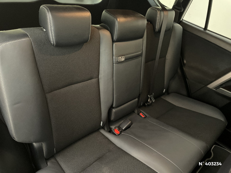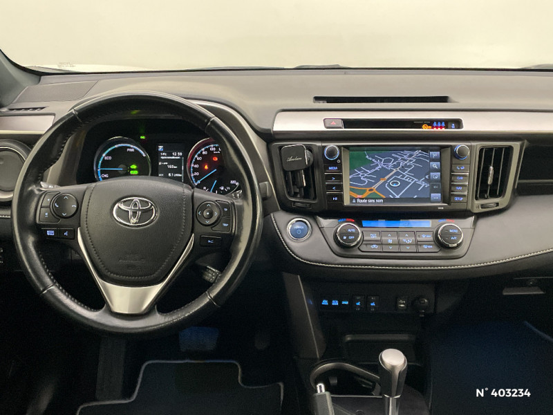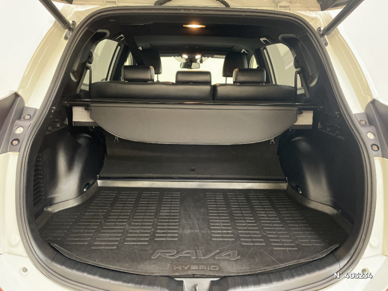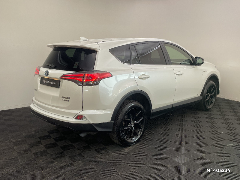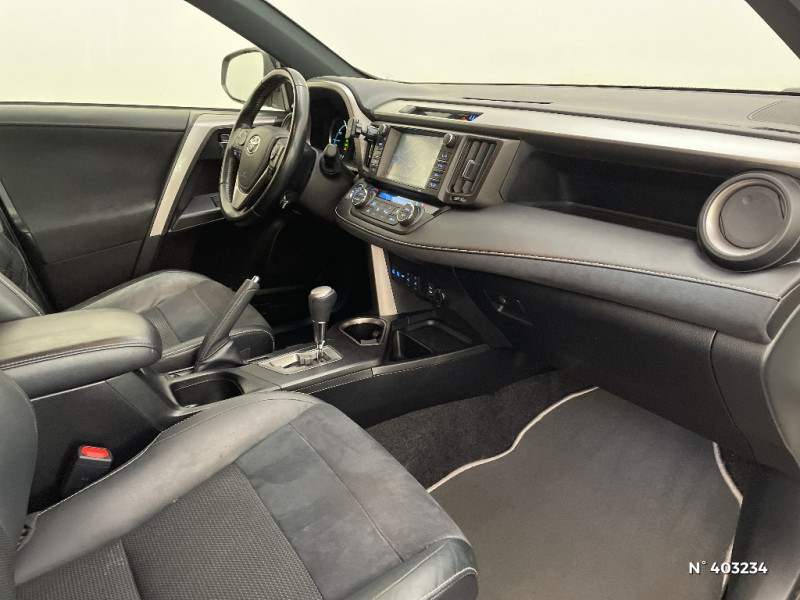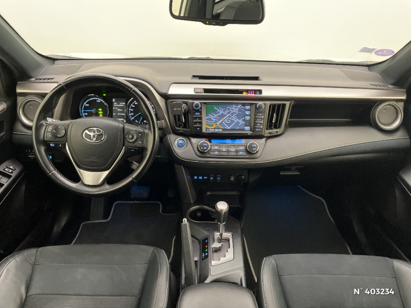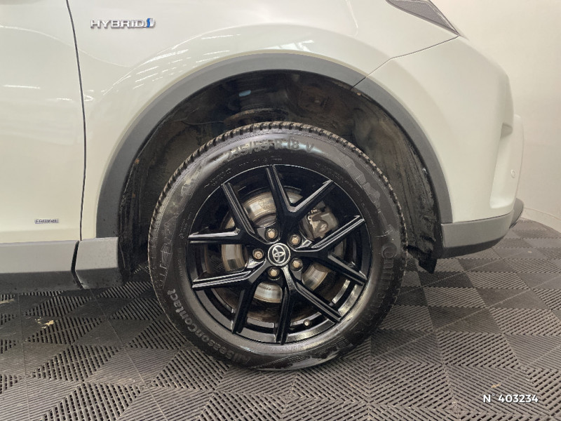 Rétroviseur intérieur électrochromatique (position jour/nuit automatique) / Système audio Toyota Touch 2: Ecran couleur tactile 7" multifonction, système de téléphonie Bluetooth, connectique auxiliaire/USB compatible iPod et 6HP / Système de contrôle de la motricité (TRC) et de stabilité (VSC) / Système de freinage antiblocage ABS + BA + EBD / Système d'ouverture et de démarrage sans clé (Smart Entry & Start) / Système intelligent de plancher plat / Tapis de sol AV et AR en velours RAV4 Hybrid / Toit ouvrant électrique en verre / Toyota Safety Sense / Vitres AV et AR électriques à fonction antipincement + descente et remontée à impulsion pour le conducteur / Airbags protège-genoux conducteur / Antenne type requin / Badge spécifique "Black Edition" / Bandeau de planche de bord gainé de cuir noir / Ceintures de sécurité avant réglables en hauteur, avec prétensionneurs et limiteurs de force / Ciel de pavillon gris / Ciel de pavillon noir / Climatisation à régulation automatique et à réglages séparés bi-zone / Coques de rétroviseurs noires / Direction assistée électrique (EPS) / Ecran couleur multifonctions TFT 4.1" / Essuie-glaces AV à détecteur de pluie / Fermeture centralisée avec commande à distance / Indicateur de sous-gonflage des pneus / Indicateur de température extérieure / Jantes alliage 18" Tanami noires / Accoudoir central AV avec compartiment de rangement / Poignées de portes et rétroviseurs extérieurs couleur carrosserie / Protections de soubassement AV et AR noires / Rétroviseurs extérieurs électriques et dégivrants avec rappels de clignotants intégrés