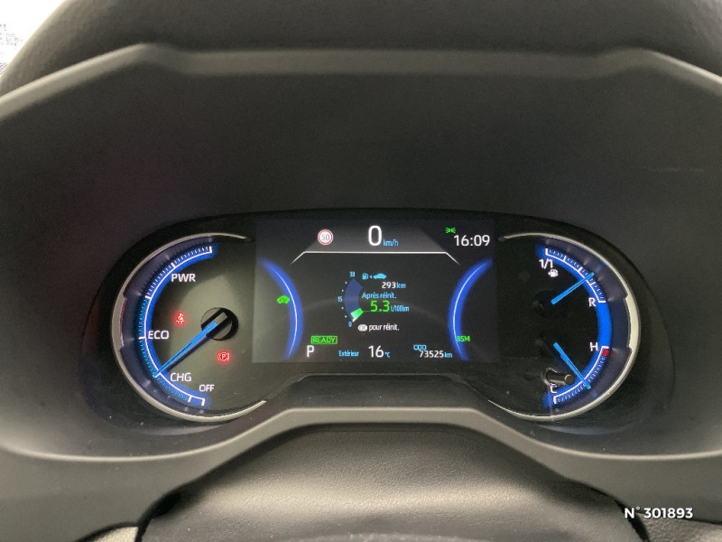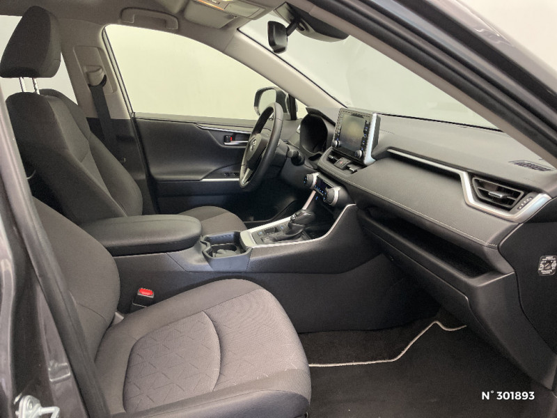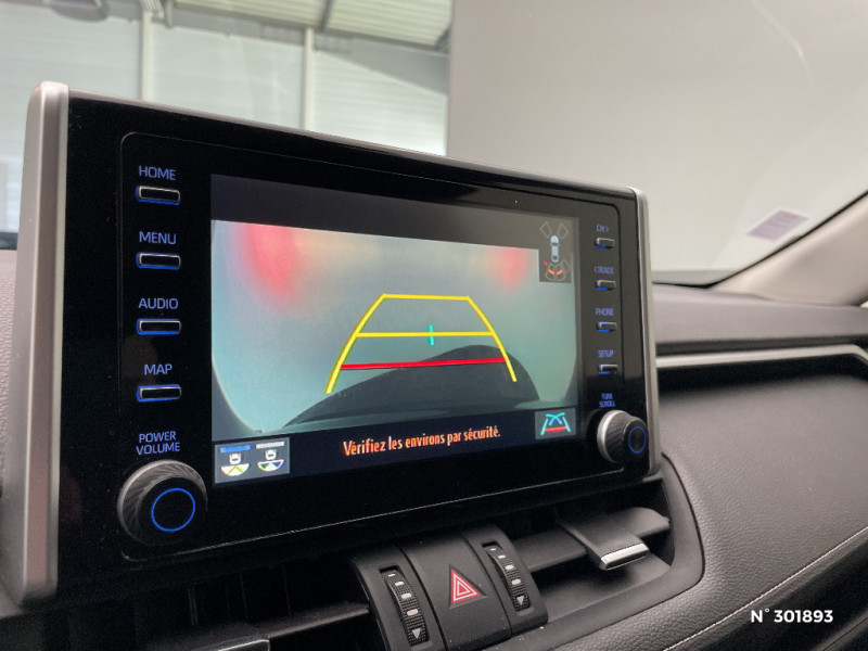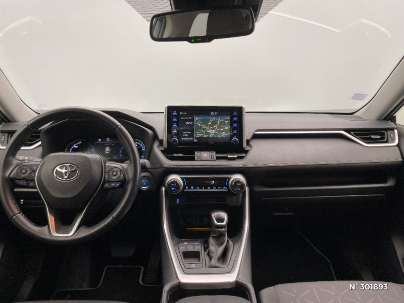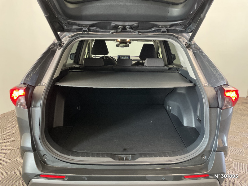 Crochets porte-manteaux x2 / Espace de rangement latéral dans le coffre / Vitres électriques AV et AR à fonction anti-pincement avec descente et remontée à impulsion / Volant et levier de vitesse gainés cuir / Volant multifonction 3 branches, réglable manuellement en hauteur et profondeur / 6 HP / 7 Airbags (frontaux et latéraux pour conducteur et passager AV, rideaux AV et AR et protège-genoux conducteur) / Essuie-glaces AV avec détecteur de pluie / Fermeture centralisée avec commande à distance et verrouillage des ouvrants en roulant / Feux clignotants à halogène / Feux stop à halogène / Filet coffre / Frein de stationnement électrique / Grille de calandre couleur acier / Indicateur de perte de pression des pneus / Kit de sécurité / Optiques AV et AR à LED / Peinture Blanc Pur / Plancher de coffre réversible avec revers imperméable / Poignées de portes extérieures couleur carroserie / Protections de soubassement AV et AR grises / Rétroviseur intérieur électrochromatique / Rétroviseurs extérieurs couleur carrosserie / Rétroviseurs extérieurs électriques, dégivrants et rabattables électriquement avec rappel de clignotants / Roue de secours de type galette dans le coffre / Sélection mode de conduite : ECO, NORMAL, SPORT, EV / Sellerie en tissu sport noir / Système anti-démarrage avec fonction double verrouillage / Système audio Toyota Touch avec écran couleur tactile 8" multifonction, connectique auxiliaire/USB et radio digitale (DAB) / Système audio Toyota Touch avec écran couleur tactile 8" multifonction, lecteur CD, système de téléphonie Bluetooth, connectique auxiliaire/USB, 6 haut-parleurs et antenne DAB. / Système AVAS (Acoustic Vehicle Alerting System) / Système d'appel d'urgence automatique "E-Call" / Système de connectivité smartphone Apple CarPlay / Android Auto / Système de téléphone Bluetooth / Système d'ouverture/fermeture des portes et démarrage sans clé "Smart Entry & Start" / Système intelligent de plancher plat Toyota Easy Flat System / Systèmes de contrôle de motricité (TRC) et de stabilité (TSC) / Systèmes de freinage antiblocage (ABS) et d'amplification de freinage d'urgence (BA) + EBD / Tapis de sol RAV4 Hybrid en velours, AV et AR / Toyota Safety Sense Système de sécurité précollision avec détection des piétons, Alerte de franchissement de ligne et détecteur de fatigue, gestion automatique des feux de route, lecture des panneaux de signalisation, régulateur de vitesse adaptatif. / Double sortie d'echappement ovale / Ecrous antivol / Accoudoir central AV avec compartiment de rangement / Accoudoir central AV avec compartiment de rangement rétroéclairé / Alerte d'oubli de ceinture et de lumière / Antenne de toit type requin / Appuis-tête AV réglables en hauteur et en inclinaison réglables / "ATTENTION" - Equipements non communiqués / Barres de toit longitudinales / Cache-bagages / Ciel de pavillon gris / Clé sécurisée contre les attaques par relais / Coffre à ouverture et fermeture électriques / Combiné d'instrumentation avec écran couleur TFT 8" / Contreportes en cuir synthétique