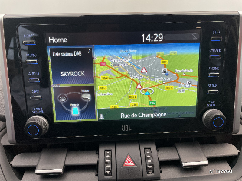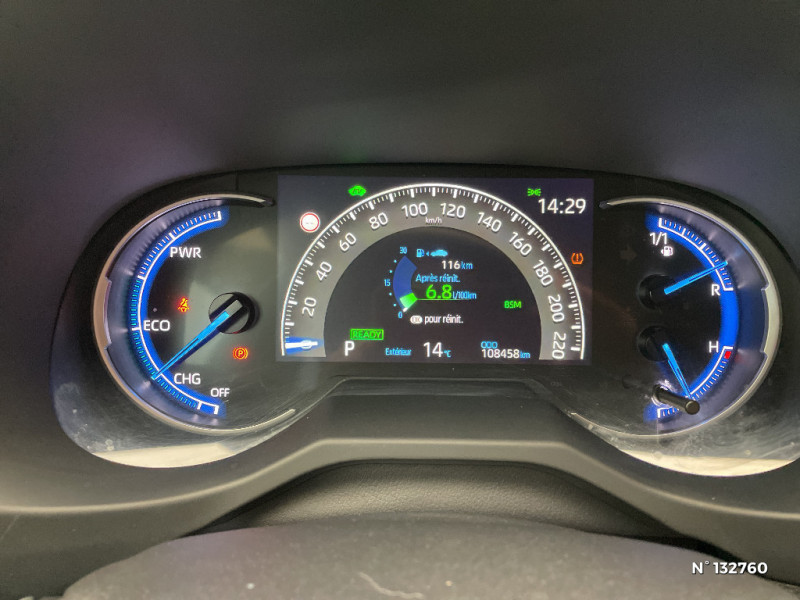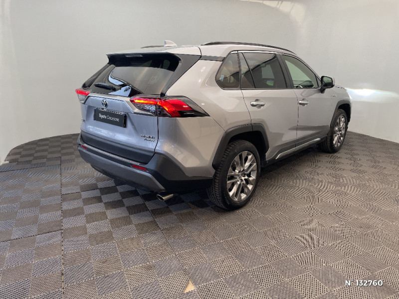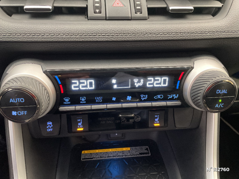 Rétroviseurs extérieurs couleur carrosserie / Rétroviseurs extérieurs électriques, dégivrants et rabattables électriquement avec rappel de clignotants / Sélection mode de conduite : ECO, NORMAL, SPORT, EV / Siège conducteur à réglage lombaire électrique / Siège conducteur à réglages électriques avec mémorisation / Système anti-démarrage avec fonction double verrouillage / Système audio Toyota Touch avec écran couleur tactile 8" multifonction, connectique auxiliaire/USB et radio digitale (DAB) / Système audio Toyota Touch avec écran couleur tactile 8" multifonction, lecteur CD, système de téléphonie Bluetooth, connectique auxiliaire/USB, 6 haut-parleurs et antenne DAB. / Système AVAS (Acoustic Vehicle Alerting System) / Système d'appel d'urgence automatique "E-Call" / Feux clignotants à halogène / Cache-bagages / Ciel de pavillon gris / Clé sécurisée contre les attaques par relais / Coffre à ouverture et fermeture électriques / Combiné d'instrumentation avec écran couleur TFT 8" / Commande de blocage de différentiel "Trail" / Contreportes en cuir synthétique / Crochets porte-manteaux x2 / Double sortie d'echappement ovale / Ecrous antivol / Espace de rangement latéral dans le coffre / Barres de toit longitudinales / Frein de stationnement électrique / Grille de calandre couleur acier / Indicateur de perte de pression des pneus / Kit de réparation anti-crevaison / Kit de sécurité / Optiques AV et AR à LED / Optiques AV full-LED Premium / Optiques AV LED avec signature lumineuse Premium / Système de connectivité smartphone Apple CarPlay / Android Auto / Accoudoir central AV avec compartiment de rangement / Accoudoir central AV avec compartiment de rangement rétroéclairé / Alerte d'oubli de ceinture et de lumière / Antenne de toit type requin / Appuis-tête AV réglables en hauteur et en inclinaison réglables / "ATTENTION" - Equipements non communiqués / Avertisseur de circulation AR avec freinage d'urgence automatique (PKSB) / Badge AWD-i sur hayon / Essuie-glaces AV avec détecteur de pluie / Fermeture centralisée avec commande à distance et verrouillage des ouvrants en roulant / Feux stop à halogène / Filet coffre / Système de téléphone Bluetooth / Système d'ouverture/fermeture des portes et démarrage sans clé "Smart Entry & Start" / Système intelligent de plancher plat Toyota Easy Flat System / Systèmes de contrôle de motricité (TRC) et de stabilité (TSC) / Systèmes de freinage antiblocage (ABS) et d'amplification de freinage d'urgence (BA) + EBD / Tapis de sol RAV4 Hybrid en velours, AV et AR / Toyota Safety Sense Système de sécurité précollision avec détection des piétons, Alerte de franchissement de ligne et détecteur de fatigue, gestion automatique des feux de route, lecture des panneaux de signalisation, régulateur de vitesse adaptatif. / Toyota Touch & Go : système de navigation à écran tactile 8" avec info trafic et cartographie européenne / Vitres électriques AV et AR à fonction anti-pincement avec descente et remontée à impulsion / Volant et levier de vitesse gainés cuir / Volant multifonction 3 branches, réglable manuellement en hauteur et profondeur / 7 Airbags (frontaux et latéraux pour conducteur et passager AV, rideaux AV et AR et protège-genoux conducteur) / 9 HP / Pack Design / Peinture Blanc Pur / Plancher de coffre réversible avec revers imperméable / Poignées de portes extérieures couleur carroserie avec insert chromé / Porte-gobelets rétroéclairés / Protections de soubassement AV et AR grises / Rétroviseur intérieur électrochromatique
