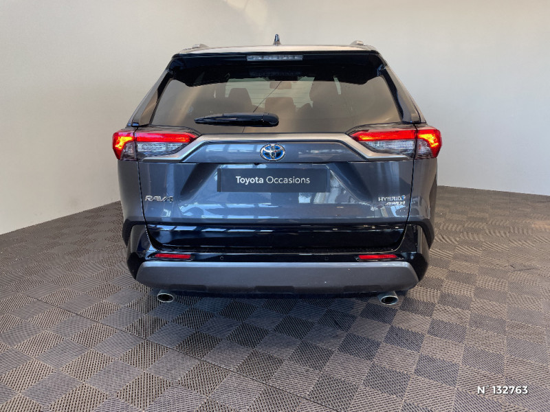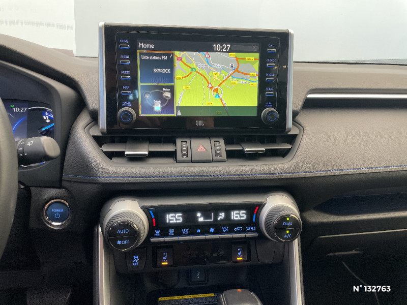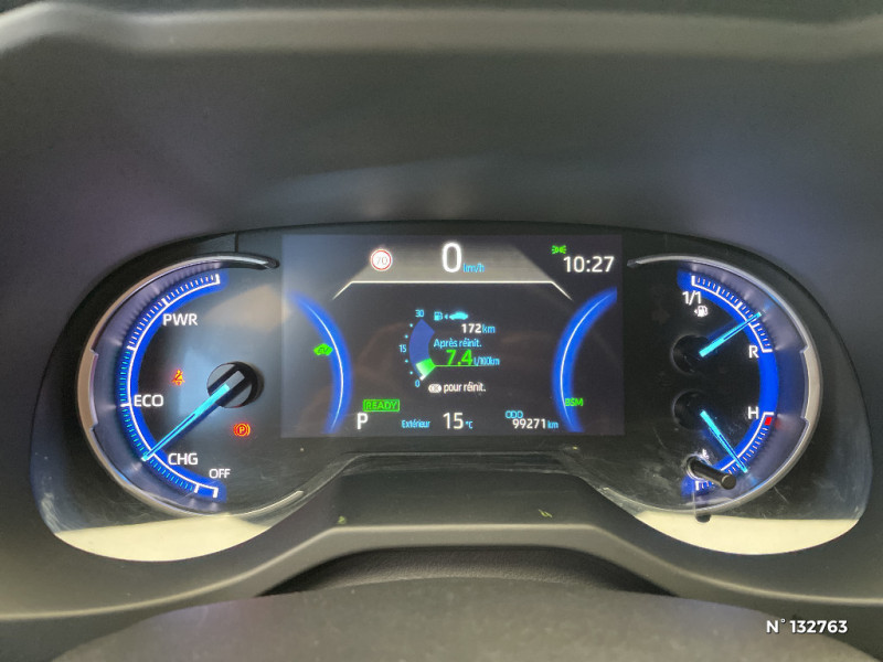 Système intelligent de plancher plat Toyota Easy Flat System / Systèmes de contrôle de motricité (TRC) et de stabilité (TSC) / Systèmes de freinage antiblocage (ABS) et d'amplification de freinage d'urgence (BA) + EBD / Tapis de sol RAV4 Hybrid en velours, AV et AR / Toyota Safety Sense Système de sécurité précollision avec détection des piétons, Alerte de franchissement de ligne et détecteur de fatigue, gestion automatique des feux de route, lecture des panneaux de signalisation, régulateur de vitesse adaptatif. / Volant et levier de vitesse gainés cuir / Volant multifonction 3 branches, réglable manuellement en hauteur et profondeur / 7 Airbags (frontaux et latéraux pour conducteur et passager AV, rideaux AV et AR et protège-genoux conducteur) / 9 HP / Toyota Touch & Go : système de navigation à écran tactile 8" avec info trafic et cartographie européenne / Vitres électriques AV et AR à fonction anti-pincement avec descente et remontée à impulsion / Frein de stationnement électrique / Grille de calandre couleur acier / Indicateur de perte de pression des pneus / Jantes en alliage 19" Mojave Noir / Kit de réparation anti-crevaison / Kit de sécurité / Optiques AV et AR à LED / Optiques AV full-LED Premium / Optiques AV LED avec signature lumineuse Premium / Peinture bi-ton Blanc Nacré/Noir Attitude / Plancher de coffre réversible avec revers imperméable / Alerte d'oubli de ceinture et de lumière / Antenne de toit type requin / Appuis-tête AV réglables en hauteur et en inclinaison réglables / "ATTENTION" - Equipements non communiqués / Avertisseur de circulation AR avec freinage d'urgence automatique (PKSB) / Badge AWD-i sur hayon / Barres de toit longitudinales / Cache-bagages / Carrosserie bi-ton avec toit et piliers peints en Noir Attitude / Ciel de pavillon noir / Clé sécurisée contre les attaques par relais / Accoudoir central AV avec compartiment de rangement / Accoudoir central AV avec compartiment de rangement rétroéclairé / Coffre à ouverture et fermeture électriques / Combiné d'instrumentation avec écran couleur TFT 8" / Commande de blocage de différentiel "Trail" / Double sortie d'echappement ovale / Ecrous antivol / Eléments de carrosserie de couleur Noir Laqué / Espace de rangement latéral dans le coffre / Essuie-glaces AV avec détecteur de pluie / Fermeture centralisée avec commande à distance et verrouillage des ouvrants en roulant / Contreportes en cuir synthétique / Crochets porte-manteaux x2 / Feux clignotants à halogène / Feux stop à halogène / Filet coffre / Poignées de portes extérieures couleur carroserie / Porte-gobelets rétroéclairés / Protections de soubassement AV et AR grises / Rétroviseur intérieur électrochromatique / Rétroviseurs extérieurs couleur carrosserie / Rétroviseurs extérieurs électriques, dégivrants et rabattables électriquement avec rappel de clignotants / Sélection mode de conduite : ECO, NORMAL, SPORT, EV / Sellerie en cuir Alcantara noir avec embossage "RAV4" / Séparateur de coffre / Seuils des portes aluminium siglés RAV4 / Siège conducteur à réglage lombaire électrique / Système anti-démarrage avec fonction double verrouillage / Système audio Toyota Touch avec écran couleur tactile 8" multifonction, connectique auxiliaire/USB et radio digitale (DAB) / Système audio Toyota Touch avec écran couleur tactile 8" multifonction, lecteur CD, système de téléphonie Bluetooth, connectique auxiliaire/USB, 6 haut-parleurs et antenne DAB. / Système AVAS (Acoustic Vehicle Alerting System) / Système d'appel d'urgence automatique "E-Call" / Système de connectivité smartphone Apple CarPlay / Android Auto / Système de téléphone Bluetooth / Système d'ouverture/fermeture des portes et démarrage sans clé "Smart Entry & Start"
