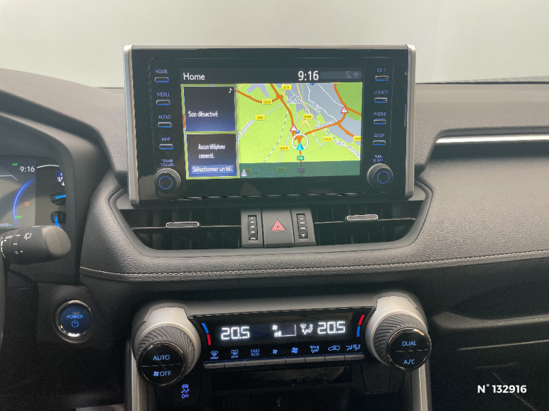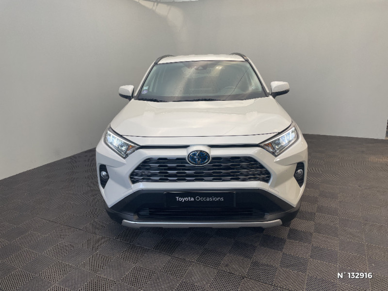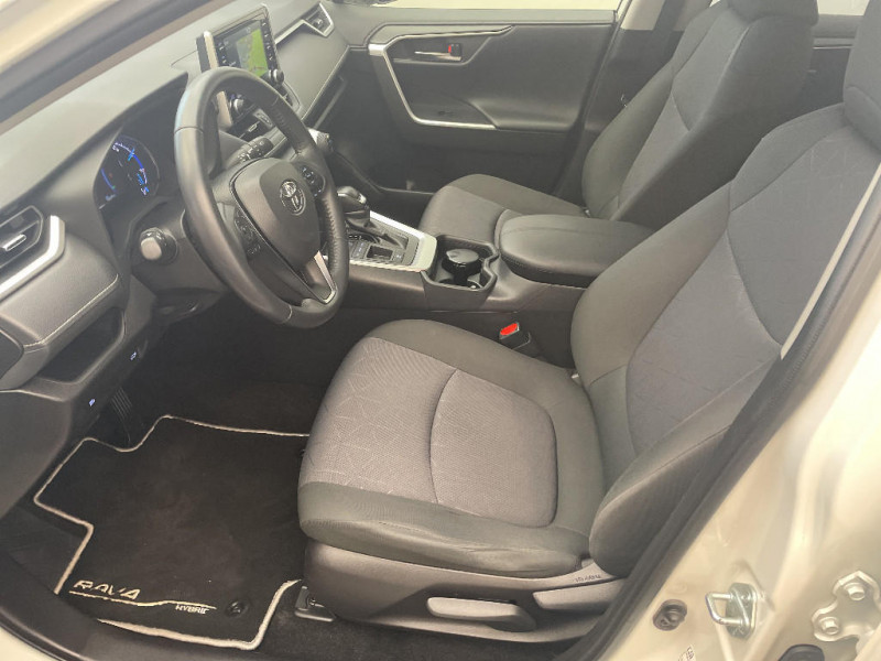 Optiques AV et AR à LED / Peinture Blanc Pur / Plancher de coffre réversible avec revers imperméable / Poignées de portes extérieures couleur carroserie / Protections de soubassement AV et AR grises / Rétroviseur intérieur électrochromatique / Rétroviseurs extérieurs couleur carrosserie / Rétroviseurs extérieurs électriques, dégivrants et rabattables électriquement avec rappel de clignotants / Roue de secours de type galette dans le coffre / Sélection mode de conduite : ECO, NORMAL, SPORT, EV / Sellerie en tissu sport noir / Système anti-démarrage avec fonction double verrouillage / Système audio Toyota Touch avec écran couleur tactile 8" multifonction, connectique auxiliaire/USB et radio digitale (DAB) / Système audio Toyota Touch avec écran couleur tactile 8" multifonction, lecteur CD, système de téléphonie Bluetooth, connectique auxiliaire/USB, 6 haut-parleurs et antenne DAB. / Système AVAS (Acoustic Vehicle Alerting System) / Système d'appel d'urgence automatique "E-Call" / Système de connectivité smartphone Apple CarPlay / Android Auto / Système de téléphone Bluetooth / Système d'ouverture/fermeture des portes et démarrage sans clé "Smart Entry & Start" / Système intelligent de plancher plat Toyota Easy Flat System / Systèmes de contrôle de motricité (TRC) et de stabilité (TSC) / Systèmes de freinage antiblocage (ABS) et d'amplification de freinage d'urgence (BA) + EBD / Tapis de sol RAV4 Hybrid en velours, AV et AR / Toyota Safety Sense Système de sécurité précollision avec détection des piétons, Alerte de franchissement de ligne et détecteur de fatigue, gestion automatique des feux de route, lecture des panneaux de signalisation, régulateur de vitesse adaptatif. / Vitres électriques AV et AR à fonction anti-pincement avec descente et remontée à impulsion / Volant et levier de vitesse gainés cuir / Volant multifonction 3 branches, réglable manuellement en hauteur et profondeur / 6 HP / 7 Airbags (frontaux et latéraux pour conducteur et passager AV, rideaux AV et AR et protège-genoux conducteur) / Accoudoir central AV avec compartiment de rangement / Accoudoir central AV avec compartiment de rangement rétroéclairé / Alerte d'oubli de ceinture et de lumière / Antenne de toit type requin / Appuis-tête AV réglables en hauteur et en inclinaison réglables / "ATTENTION" - Equipements non communiqués / Barres de toit longitudinales / Cache-bagages / Ciel de pavillon gris / Clé sécurisée contre les attaques par relais / Coffre à ouverture et fermeture électriques / Combiné d'instrumentation avec écran couleur TFT 8" / Contreportes en cuir synthétique / Crochets porte-manteaux x2 / Double sortie d'echappement ovale / Ecrous antivol / Espace de rangement latéral dans le coffre / Essuie-glaces AV avec détecteur de pluie / Fermeture centralisée avec commande à distance et verrouillage des ouvrants en roulant / Feux clignotants à halogène / Feux stop à halogène / Filet coffre / Frein de stationnement électrique / Grille de calandre couleur acier / Indicateur de perte de pression des pneus / Kit de sécurité