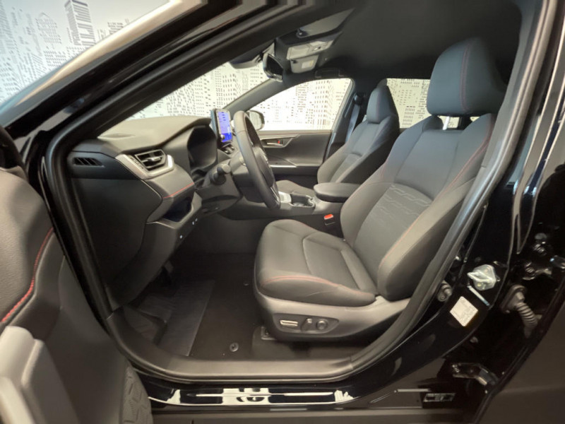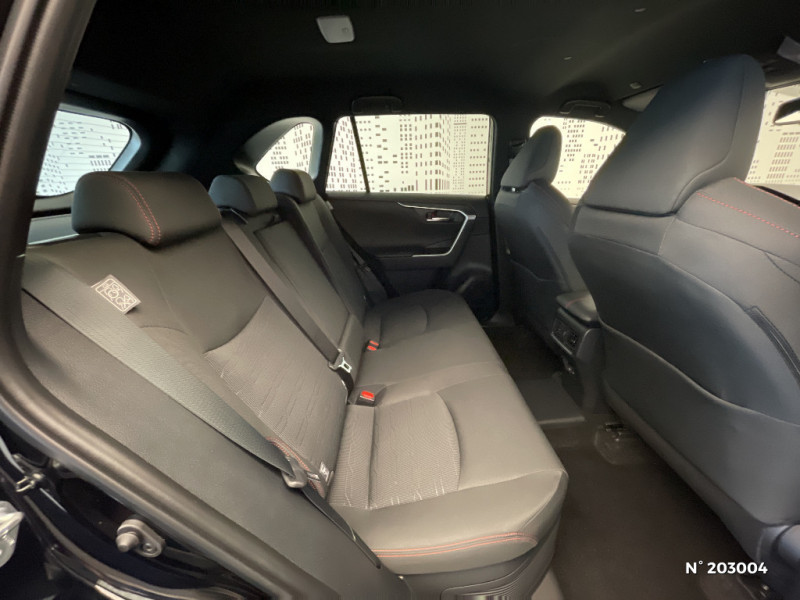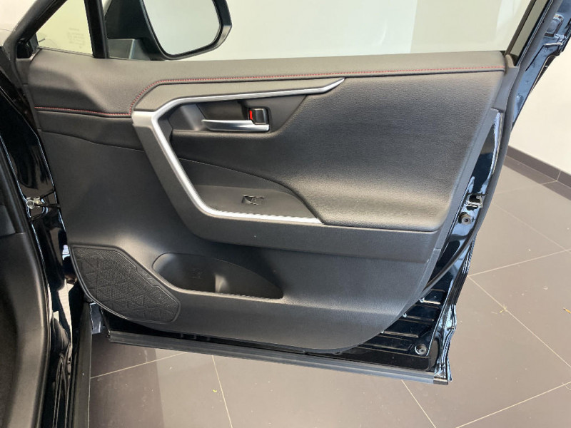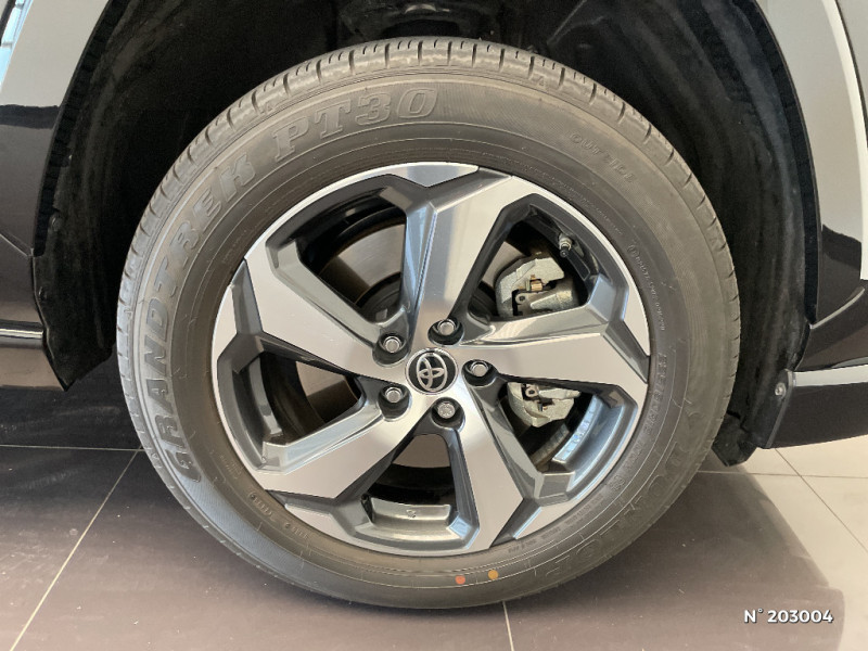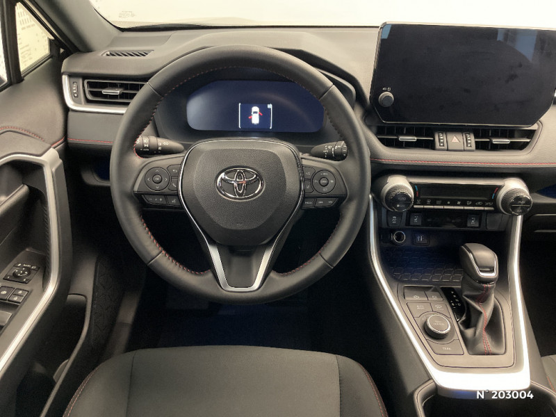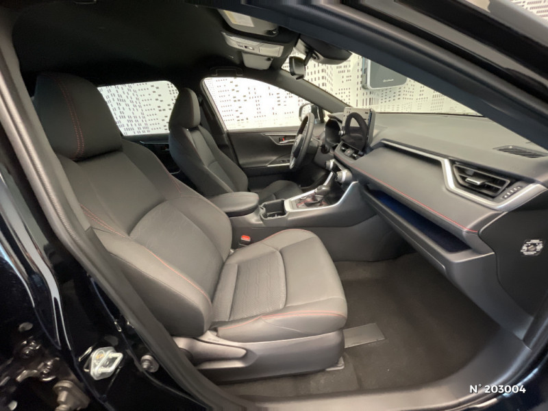 Ornements supérieurs de vitre chromés / Ouverture électrique de la trappe à carburant / Poignées de portes extérieures couleur carroserie / Ports USB - Type C (2 x passagers AR) / Ports USB (1 x console centrale) / Tapis de sol / Toyota Safety Sense Système de sécurité précollision avec détection des véhicules, piétons et cyclistes, actif également dans les intersections. Alerte de franchissement de ligne avec aide au maintien dans la file, assistant de trajectoire et détecteur de fatigue, Lecture des panneaux de signalisation avec limiteur de vitesse, Gestion automatique des feux de route, Régulateur de vitesse adaptatif intelligent, Système d'aide aux manoeuvres d'évitement d'urgence avec détection des véhicules, piétons et cyclistes / Vitres électriques AV et AR à fonction anti-pincement avec descente et remontée à impulsion / Volant et levier de vitesse gainés cuir / Volant multifonction 3 branches, réglable manuellement en hauteur et profondeur / 1 Port USB sur console centrale / 7 Airbags (1 protège-genoux conducteur, 2 fronteaux AV, 2 lateraux AV, 2 rideaux AV et AR) avec déconnexion de l'airbag passager / Commande de blocage de différentiel "Trail" / Commande de boîte de vitesses en cuir synthetique / Commande de boîte de vitesses séquentielles / Commandes des vitres rétroéclairées / Compartiment de rangement dans la console centrale / Compteur numérique personnalisable 12,3" / Coques de rétroviseur couleur carrosserie / Direction électrique motorisée (RP-EPS) / Double sortie d'echappement ovale / Ports USB (1 x console centrale, 2 x passagers AR) / Prise 12V 1 x console centrale, 1 x accoudoir, 1 x coffre / Programme "Toyota Experience" / Rétroviseur intérieur électrochromatique / Rétroviseurs extérieurs électriques, dégivrants et rabattables électriquement avec rappel de clignotants / Roue de secours de type galette dans le coffre / Sacoche de rangement pour le câble de recharge / Sélection mode de conduite : ECO, NORMAL, SPORT, EV MODE, EV AUTO, HYBRID MODE, CHARGE MODE / Sellerie sport en tissu noir avec surpiqûres rouges / Services connectés de contrôle à distance MyToyota (inclus 4 ans) / Services connectés standards MyToyota (inclus 10 ans) / Siège conducteur à réglage lombaire électrique / Système d'appel d'urgence automatique "E-Call" / Système de contrôle de motricité (TRC) et de stabilité du véhicule et de l'attelage (TSC) / Système de freinage antiblocage ABS+BA+EBD / Système d'ouverture/fermeture et démarrage sans clé "Smart Entry & Start" / Prise 220 V / 150 W dans le coffre / Accoudoir central AV avec compartiment de rangement / Antenne de toit type requin / Badge "PHEV" / Bandeau de planche de bord gainé de cuir noir / Barres de toit longitudinales / Câble de recharge Mode 2 (Type 2) - Domestique (3.3 kW) / Câble de recharge Mode 3 (Type 2) 6,6kW - 7,5m - avec prise Mennekes / Calandre AV noir laqué / Ciel de pavillon noir / Climatisation à régulation automatique bizone activable à distance / Coffre à ouverture et fermeture électriques / Système multimédia Toyota Smart Connect avec écran tactile 10,5" Navigation connectée avec infotrafic en temps réel, Smart Parking (aide à la recherche de stationnement), Reconnaissance vocale avancée "Hey Toyota" 4 ans de mises à jour cartographiques et services connectés inclus, Système de connectivité smartphone filaire Android Auto (connection avec un câble USB certifié), Système de connectivité smartphone sans fil Apple CarPlay / Système multimédia Toyota Smart Connect: à?cran couleur tactile 10,5 haute définition, Connectivité Bluetooth, USB et radio FM et DAB (digitale), Système de connectivité smartphone Apple CarPlay (sans fil), Android Auto (filaire avec un câble USB certifié) Services intelligents dont navigation connectée avec infotrafic en temps réel, mises à jour cartographiques, assistant vocal Hey Toyota et recherche de points d'intérêts / Eclairage d'accueil LED aux places AV / Ecrous antivol / Eléments de carrosserie de couleur Noir Laqué bas de caisse latéraux, bas de porte de coffre et haut de pare-chocs AR, pare-chocs AV et passages de roues / Essuie-glaces AV avec détecteur de pluie / Fermeture centralisée avec commande à distance et verrouillage des ouvrants en roulant / Filet coffre / Frein de stationnement électrique / Indicateur de perte de pression des pneus / Indicateur de température extérieure / Kit de sécurité / Optiques AV et AR à LED avec nouvelle signature lumineuse Premium / Ornement de calandre AV chromé