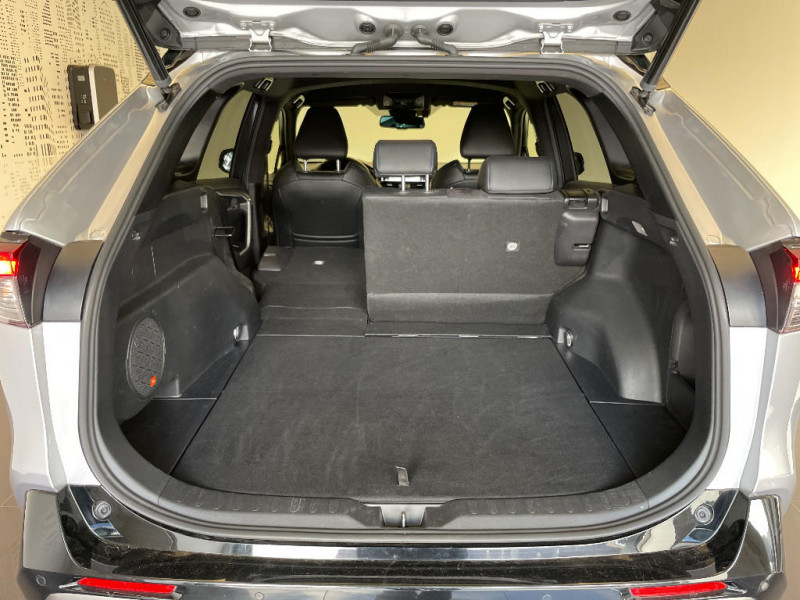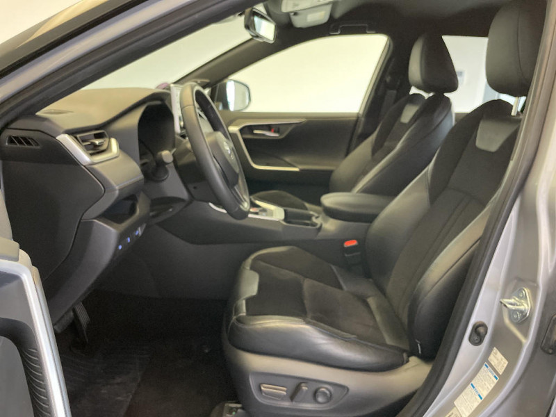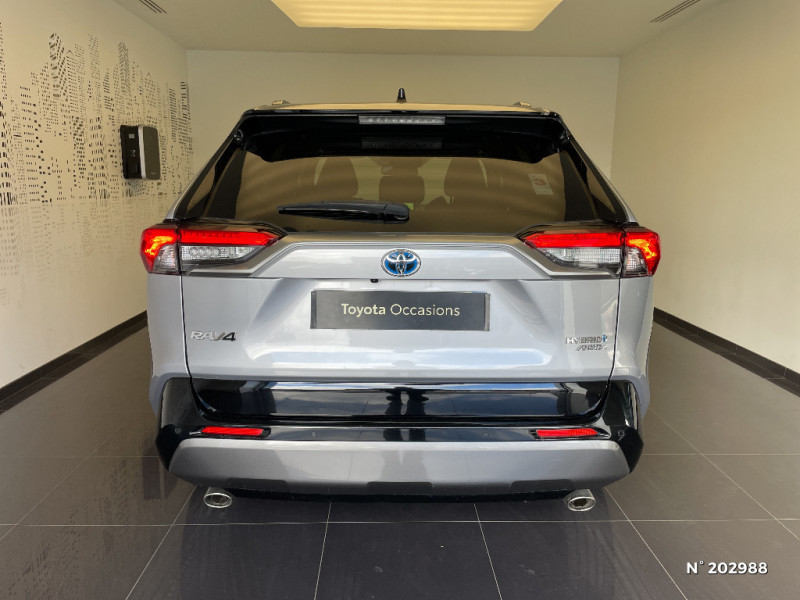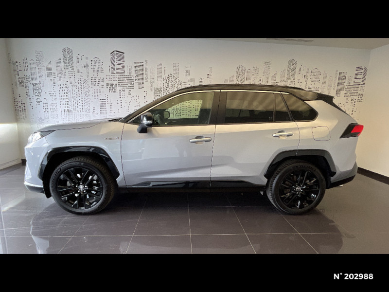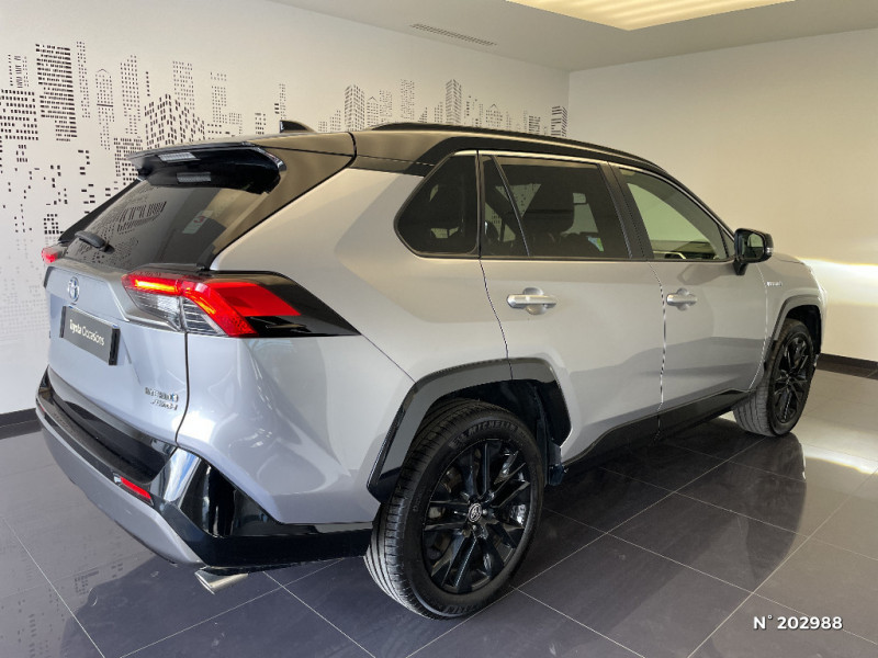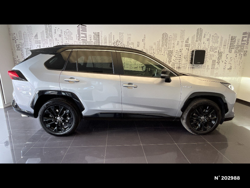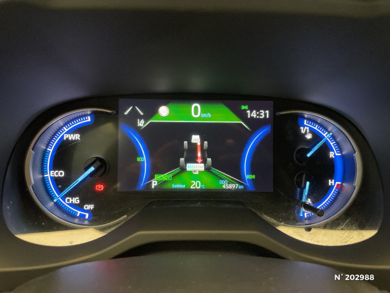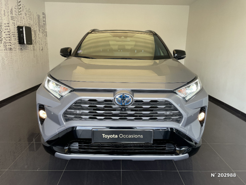 Système anti-démarrage avec fonction double verrouillage / Système audio Toyota Touch avec écran couleur tactile 8" multifonction, connectique auxiliaire/USB et radio digitale (DAB) / Système audio Toyota Touch avec écran couleur tactile 8" multifonction, lecteur CD, système de téléphonie Bluetooth, connectique auxiliaire/USB, 6 haut-parleurs et antenne DAB. / Système AVAS (Acoustic Vehicle Alerting System) / Système d'appel d'urgence automatique "E-Call" / Système de connectivité smartphone Apple CarPlay / Android Auto / Système de téléphone Bluetooth / Système d'ouverture/fermeture des portes et démarrage sans clé "Smart Entry & Start" / Système intelligent de plancher plat Toyota Easy Flat System / Systèmes de contrôle de motricité (TRC) et de stabilité (TSC) / Systèmes de freinage antiblocage (ABS) et d'amplification de freinage d'urgence (BA) + EBD / Tapis de sol RAV4 Hybrid en velours, AV et AR / Essuie-glaces AV avec détecteur de pluie / Espace de rangement latéral dans le coffre / Ecrous antivol / Eléments de carrosserie de couleur Noir Laqué / Accoudoir central AV avec compartiment de rangement / Accoudoir central AV avec compartiment de rangement rétroéclairé / Fermeture centralisée avec commande à distance et verrouillage des ouvrants en roulant / Toyota Touch & Go : système de navigation à écran tactile 8" avec info trafic et cartographie européenne / Alerte d'oubli de ceinture et de lumière / Antenne de toit type requin / Appuis-tête AV réglables en hauteur et en inclinaison réglables / "ATTENTION" - Equipements non communiqués / Avertisseur de circulation AR avec freinage d'urgence automatique (PKSB) / Badge AWD-i sur hayon / Barres de toit longitudinales / Cache-bagages / Carrosserie bi-ton avec toit et piliers peints en Noir Attitude / Ciel de pavillon noir / Clé sécurisée contre les attaques par relais / Coffre à ouverture et fermeture électriques / Combiné d'instrumentation avec écran couleur TFT 8" / Commande de blocage de différentiel "Trail" / Contreportes en cuir synthétique / Crochets porte-manteaux x2 / Double sortie d'echappement ovale / Vitres électriques AV et AR à fonction anti-pincement avec descente et remontée à impulsion / Volant et levier de vitesse gainés cuir / Volant multifonction 3 branches, réglable manuellement en hauteur et profondeur / 7 Airbags (frontaux et latéraux pour conducteur et passager AV, rideaux AV et AR et protège-genoux conducteur) / 9 HP / Toyota Safety Sense Système de sécurité précollision avec détection des piétons, Alerte de franchissement de ligne et détecteur de fatigue, gestion automatique des feux de route, lecture des panneaux de signalisation, régulateur de vitesse adaptatif. / Feux clignotants à halogène / Feux stop à halogène / Filet coffre / Frein de stationnement électrique / Grille de calandre couleur acier / Indicateur de perte de pression des pneus / Jantes en alliage 19" Mojave Noir / Kit de réparation anti-crevaison / Kit de sécurité / Optiques AV et AR à LED / Optiques AV full-LED Premium / Optiques AV LED avec signature lumineuse Premium / Peinture bi-ton Blanc Nacré/Noir Attitude / Plancher de coffre réversible avec revers imperméable / Poignées de portes extérieures couleur carroserie / Porte-gobelets rétroéclairés / Protections de soubassement AV et AR grises / Rétroviseur intérieur électrochromatique / Rétroviseurs extérieurs couleur carrosserie / Rétroviseurs extérieurs électriques, dégivrants et rabattables électriquement avec rappel de clignotants / Sélection mode de conduite : ECO, NORMAL, SPORT, EV / Sellerie en cuir Alcantara noir avec embossage "RAV4" / Séparateur de coffre / Seuils des portes aluminium siglés RAV4 / Siège conducteur à réglage lombaire électrique