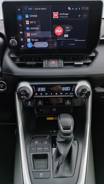 Antenne de toit type requin / Barres de toit longitudinales / Double sortie d?échappement ovale / Grille de calandre acier / Jantes en alliage 18?? Tanami / Ornements supérieurs de vitres chromés / Plancher de coffre réversible / Poignées extérieures de portes couleur carrosserie / Éclairage d?accueil LED / Allumage automatique des feux et Essuie-glaces avant à détecteur de pluie / Coffre à ouverture et fermeture électriques / Compteur numérique personnalisable 12,3? / Rétroviseur intérieur électrochromatique / Système d?ouverture/fermeture et démarrage sans clé ?Smart Entry & Start? / Sélection du mode de conduite : ECO, NORMAL, SPORT, EV / Vitres électriques avec système anti-pincement / Avertisseur de circulation arrière / Frein de stationnement électrique / Indicateur de sous-gonflage des pneus / Roue de secours de type galette dans le coffre / Système d?appel d?urgence automatique ?E-Call? / Toyota Safety Sense? / Système multimédia Toyota Smart Connect® / Siège conducteur avec support lombaire électrique / / Véhicules équivalents: CRV, X-trail