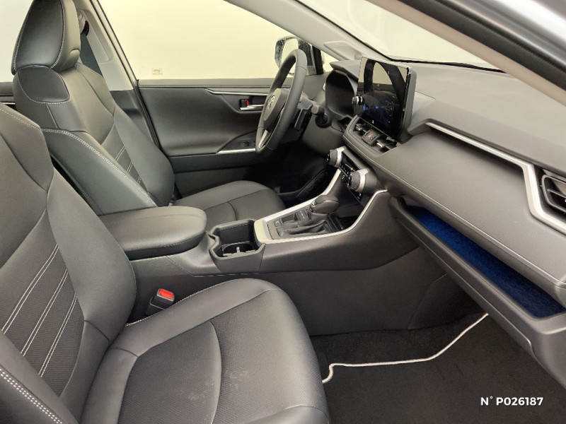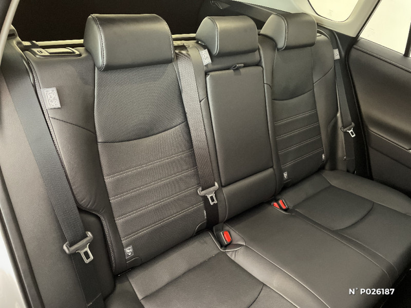 Siège conducteur à réglage lombaire électrique / Siège conducteur à réglages électriques avec mémorisation / Système audio Toyota Touch avec écran couleur tactile 8" multifonction, connectique auxiliaire/USB et radio digitale (DAB) / Système AVAS (Acoustic Vehicle Alerting System) / Système d'appel d'urgence automatique "E-Call" / Système de connectivité smartphone Apple CarPlay / Android Auto / Système de téléphone Bluetooth / Système d'ouverture/fermeture des portes et démarrage sans clé "Smart Entry & Start" / Système intelligent de plancher plat Toyota Easy Flat System / Système multimédia Toyota Smart Connect et Smart Connect Plus avec écran central 10.5, Apple CarPlay sans fil et reconnaissance vocale avancée / Systèmes de contrôle de motricité (TRC) et de stabilité (TSC) / Systèmes de freinage antiblocage (ABS) et d'amplification de freinage d'urgence (BA) + EBD / Tapis de sol RAV4 Hybrid en velours, AV et AR / Toyota Safety Sense Système de sécurité précollision avec détection des piétons, Alerte de franchissement de ligne et détecteur de fatigue, gestion automatique des feux de route, lecture des panneaux de signalisation, régulateur de vitesse adaptatif. / Vitres électriques AV et AR à fonction anti-pincement avec descente et remontée à impulsion / Volant et levier de vitesse gainés cuir / Volant multifonction 3 branches, réglable manuellement en hauteur et profondeur / 7 Airbags (frontaux et latéraux pour conducteur et passager AV, rideaux AV et AR et protège-genoux conducteur) / Optiques AV LED avec signature lumineuse Premium / Accoudoir central AV avec compartiment de rangement rétroéclairé / Alerte d'oubli de ceinture et de lumière / Antenne de toit type requin / Appuis-tête AV réglables en hauteur et en inclinaison réglables / Avertisseur de circulation AR avec freinage d'urgence automatique (PKSB) / Barres de toit longitudinales / Ciel de pavillon gris / Clé sécurisée contre les attaques par relais / Coffre à ouverture et fermeture électriques / Combiné d'instrumentation avec écran couleur TFT 8" / Compteur numérique personnalisable 12,3" / Contreportes en cuir synthétique / Crochets porte-manteaux x2 / Double sortie d'echappement ovale / Ecrous antivol / Espace de rangement latéral dans le coffre / Essuie-glaces AV avec détecteur de pluie / Fermeture centralisée avec commande à distance et verrouillage des ouvrants en roulant / Feux clignotants à halogène / Feux stop à halogène / Filet coffre / Frein de stationnement électrique / Grille de calandre couleur acier / Indicateur de perte de pression des pneus / Kit de réparation anti-crevaison / Kit de sécurité / Navigation connectée / Optiques AV et AR à LED / Peinture Blanc Pur / Plancher de coffre réversible avec revers imperméable / Poignées de portes extérieures couleur carroserie avec insert chromé / Porte-gobelets rétroéclairés / Protections de soubassement AV et AR grises / Rétroviseur intérieur électrochromatique / Rétroviseurs extérieurs couleur carrosserie / Rétroviseurs extérieurs électriques, dégivrants et rabattables électriquement avec rappel de clignotants / Pack Design / Sélection mode de conduite : ECO, NORMAL, SPORT, EV