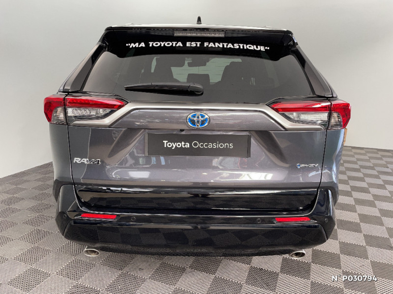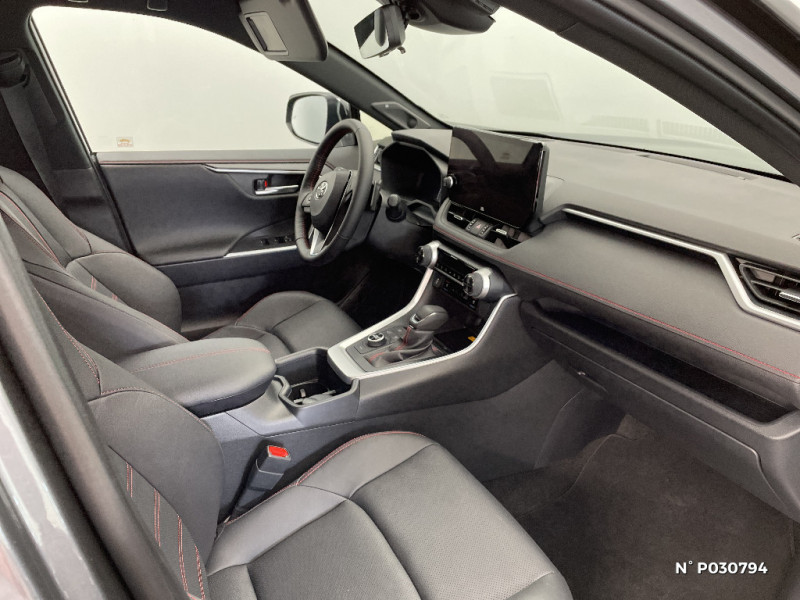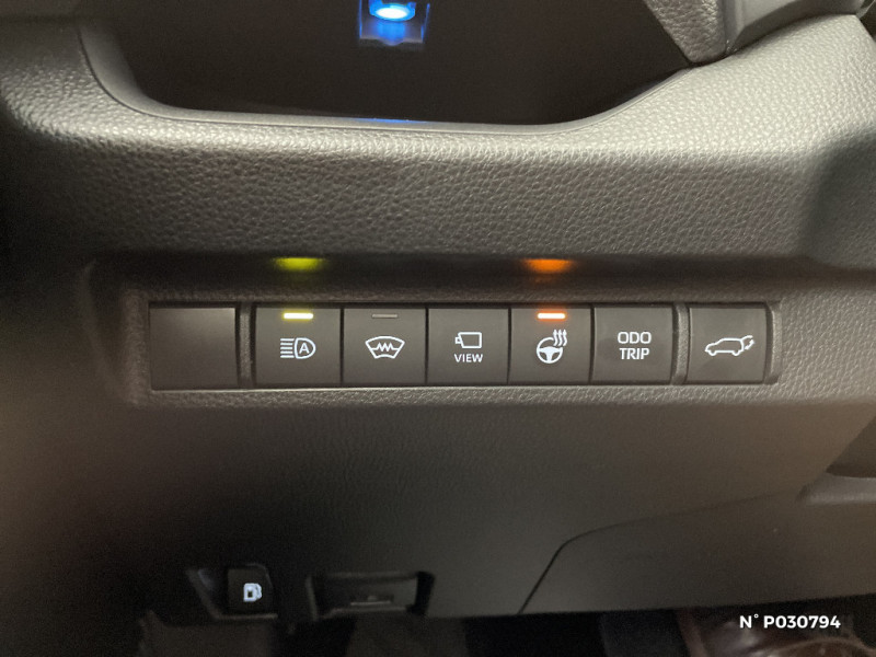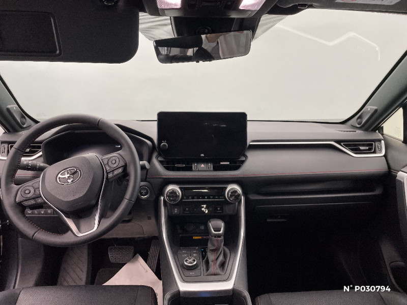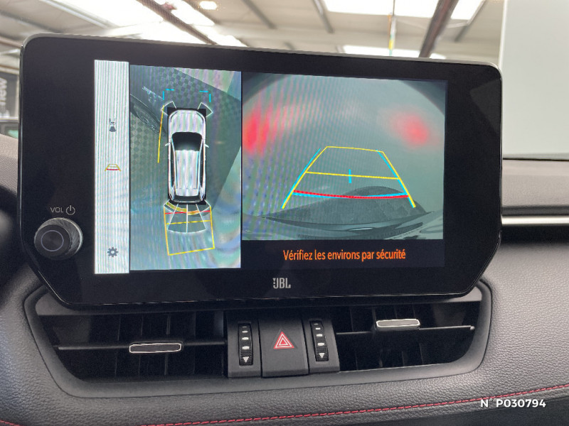 Siège conducteur à réglage lombaire électrique / Sièges AV réglables électriquement - 8 posotions (à mémoire côté conducteur) / Sièges AV ventilés et chauffants 3 niveaux et latéraux AR chauffants / Système audio JBL Premium avec 9HP / Système d'alarme avec fonction double verrouillage et détection de bris de glace / Système d'appel d'urgence automatique "E-Call" / Système de contrôle de motricité (TRC) et de stabilité du véhicule et de l'attelage (TSC) / Système de freinage antiblocage ABS+BA+EBD / Système d'ouverture/fermeture et démarrage sans clé "Smart Entry & Start" / Système multimédia Toyota Smart Connect avec écran tactile 10,5" Navigation connectée avec infotrafic en temps réel, Smart Parking (aide à la recherche de stationnement), Reconnaissance vocale avancée "Hey Toyota" 4 ans de mises à jour cartographiques et services connectés inclus, Système de connectivité smartphone filaire Android Auto (connection avec un câble USB certifié), Système de connectivité smartphone sans fil Apple CarPlay / Tapis de sol / Toyota Safety Sense Système de sécurité précollision avec détection des véhicules, piétons et cyclistes, actif également dans les intersections. Alerte de franchissement de ligne avec aide au maintien dans la file, assistant de trajectoire et détecteur de fatigue, Lecture des panneaux de signalisation avec limiteur de vitesse, Gestion automatique des feux de route, Régulateur de vitesse adaptatif intelligent, Système d'aide aux manoeuvres d'évitement d'urgence avec détection des véhicules, piétons et cyclistes / Vitres électriques AV et AR à fonction anti-pincement avec descente et remontée à impulsion / Volant et levier de vitesse gainés cuir / Volant multifonction 3 branches, réglable manuellement en hauteur et profondeur / 1 Port USB sur console centrale / 7 Airbags (1 protège-genoux conducteur, 2 fronteaux AV, 2 lateraux AV, 2 rideaux AV et AR) avec déconnexion de l'airbag passager / Antenne de toit type requin / Avertisseur de circulation AR avec freinage d'urgence automatique (PKSB) / Bandeau de planche de bord gainé de cuir noir / Barres de toit longitudinales / Câble de recharge Mode 2 (Type 2) - Domestique (3.3 kW) / Accoudoir central AV avec compartiment de rangement / Câble de recharge Mode 3 (Type 2) 6,6kW - 7,5m - avec prise Mennekes / Calandre AV noir laqué / Carrosserie bi-ton avec toit et piliers peints en Noir Attitude / Ciel de pavillon noir / Climatisation à régulation automatique bizone activable à distance / Coffre à ouverture et fermeture électriques / Commande de blocage de différentiel "Trail" / Commande de boîte de vitesses en cuir synthetique / Commandes des vitres rétroéclairées / Compartiment de rangement dans la console centrale / Compteur numérique personnalisable 12,3" / Coques de rétroviseur extérieur noir laqué / Direction électrique motorisée (RP-EPS) / Double sortie d'echappement ovale / Eclairage d'accueil LED aux places AV / Ecrous antivol / Eléments de carrosserie de couleur Noir Laqué bas de caisse latéraux, bas de porte de coffre et haut de pare-chocs AR, pare-chocs AV et passages de roues / Essuie-glaces AV avec détecteur de pluie / Fermeture centralisée avec commande à distance et verrouillage des ouvrants en roulant / Filet coffre / Frein de stationnement électrique / Indicateur de perte de pression des pneus / Indicateur de température extérieure / Kit de sécurité / Optiques AV et AR à LED avec nouvelle signature lumineuse Premium / Ornement de calandre AV chromé / Ornements supérieurs de vitre chromés / Ouverture électrique de la trappe à carburant / Poignées de portes extérieures couleur carroserie / Ports USB (1 x console centrale, 2 x passagers AR, 2 x accoudoir) / Prise 12V 1 x console centrale, 1 x coffre / Prise 220 V / 150 W dans le coffre / Programme "Toyota Experience" / Rétroviseur intérieur électrochromatique / Rétroviseurs extérieurs électriques, dégivrants et rabattables électriquement avec rappel de clignotants / Roue de secours de type galette dans le coffre / Sacoche de rangement pour le câble de recharge / Sélection mode de conduite : ECO, NORMAL, SPORT, EV MODE, EV AUTO, HYBRID MODE, CHARGE MODE / Sellerie cuir noir avec surpiqûres rouges / Services connectés de contrôle à distance MyToyota (inclus 4 ans) / Services connectés standards MyToyota (inclus 10 ans) / Seuils des portes aluminium