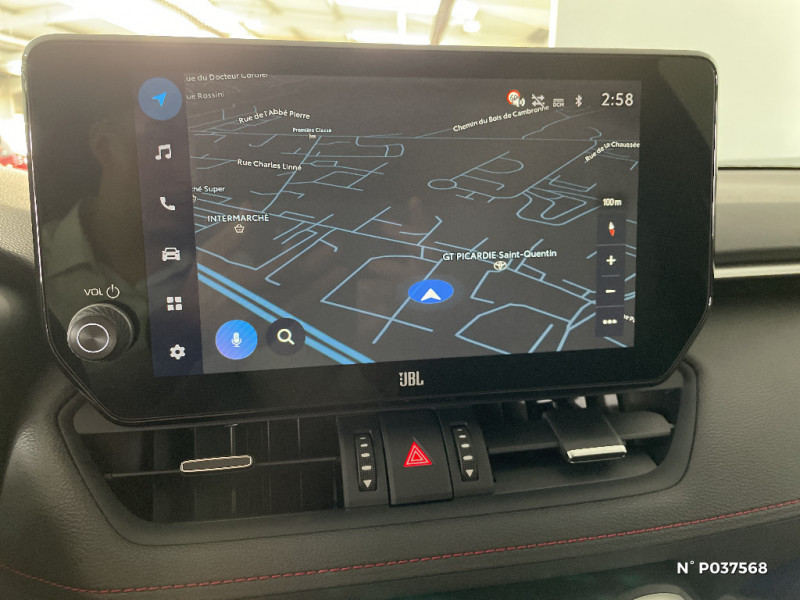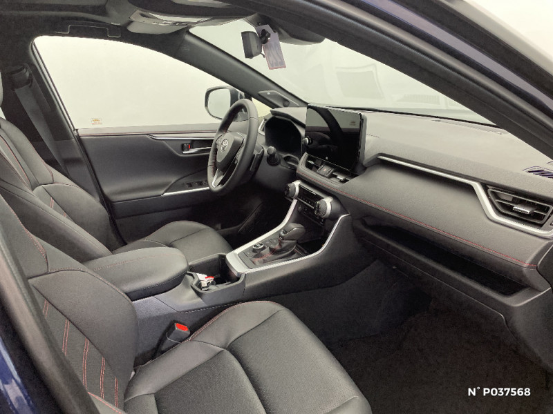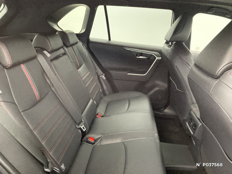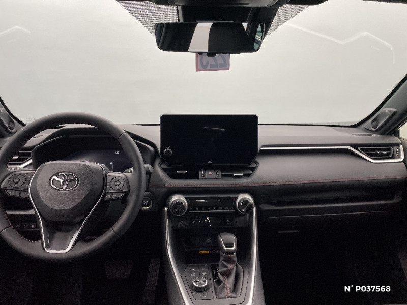 Coffre à ouverture et fermeture électriques / Commande de boîte de vitesses en cuir synthetique / Commandes des vitres rétroéclairées / Compartiment de rangement dans la console centrale / Commande de blocage de différentiel "Trail" / Compteur numérique personnalisable 12,3" / Coques de rétroviseur extérieur noir laqué / Direction électrique motorisée (RP-EPS) / Double sortie d'echappement ovale / Eclairage d'accueil LED aux places AV / Ecrous antivol / Eléments de carrosserie de couleur Noir Laqué bas de caisse latéraux, bas de porte de coffre et haut de pare-chocs AR, pare-chocs AV et passages de roues / Essuie-glaces AV avec détecteur de pluie / Climatisation à régulation automatique bizone activable à distance / Accoudoir central AV avec compartiment de rangement / Antenne de toit type requin / Avertisseur de circulation AR avec freinage d'urgence automatique (PKSB) / Bandeau de planche de bord gainé de cuir noir / Barres de toit longitudinales / Câble de recharge Mode 2 (Type 2) - Domestique (3.3 kW) / Câble de recharge Mode 3 (Type 2) 6,6kW - 7,5m - avec prise Mennekes / Calandre AV noir laqué / Carrosserie bi-ton avec toit et piliers peints en Noir Attitude / Ciel de pavillon noir / Sélection mode de conduite : ECO, NORMAL, SPORT, EV MODE, EV AUTO, HYBRID MODE, CHARGE MODE / Sellerie cuir noir avec surpiqûres rouges / Services connectés de contrôle à distance MyToyota (inclus 4 ans) / Services connectés standards MyToyota (inclus 10 ans) / Seuils des portes aluminium / Siège conducteur à réglage lombaire électrique / Sièges AV réglables électriquement - 8 posotions (à mémoire côté conducteur) / Système audio JBL Premium avec 9HP / Système d'alarme avec fonction double verrouillage et détection de bris de glace / Système d'appel d'urgence automatique "E-Call" / Système de contrôle de motricité (TRC) et de stabilité du véhicule et de l'attelage (TSC) / Système de freinage antiblocage ABS+BA+EBD / Système d'ouverture/fermeture et démarrage sans clé "Smart Entry & Start" / Système multimédia Toyota Smart Connect avec écran tactile 10,5" Navigation connectée avec infotrafic en temps réel, Smart Parking (aide à la recherche de stationnement), Reconnaissance vocale avancée "Hey Toyota" 4 ans de mises à jour cartographiques et services connectés inclus, Système de connectivité smartphone filaire Android Auto (connection avec un câble USB certifié), Système de connectivité smartphone sans fil Apple CarPlay / Tapis de sol / Toyota Safety Sense Système de sécurité précollision avec détection des véhicules, piétons et cyclistes, actif également dans les intersections. Alerte de franchissement de ligne avec aide au maintien dans la file, assistant de trajectoire et détecteur de fatigue, Lecture des panneaux de signalisation avec limiteur de vitesse, Gestion automatique des feux de route, Régulateur de vitesse adaptatif intelligent, Système d'aide aux manoeuvres d'évitement d'urgence avec détection des véhicules, piétons et cyclistes / Vitres électriques AV et AR à fonction anti-pincement avec descente et remontée à impulsion / Volant et levier de vitesse gainés cuir / Volant multifonction 3 branches, réglable manuellement en hauteur et profondeur / 1 Port USB sur console centrale / 7 Airbags (1 protège-genoux conducteur, 2 fronteaux AV, 2 lateraux AV, 2 rideaux AV et AR) avec déconnexion de l'airbag passager / Sièges AV ventilés et chauffants 3 niveaux et latéraux AR chauffants / Fermeture centralisée avec commande à distance et verrouillage des ouvrants en roulant / Filet coffre / Frein de stationnement électrique / Indicateur de perte de pression des pneus / Indicateur de température extérieure / Kit de sécurité / Optiques AV et AR à LED avec nouvelle signature lumineuse Premium / Ornement de calandre AV chromé / Ornements supérieurs de vitre chromés / Ouverture électrique de la trappe à carburant / Poignées de portes extérieures couleur carroserie / Ports USB (1 x console centrale, 2 x passagers AR, 2 x accoudoir) / Prise 12V 1 x console centrale, 1 x coffre / Prise 220 V / 150 W dans le coffre / Programme "Toyota Experience" / Rétroviseur intérieur électrochromatique / Rétroviseurs extérieurs électriques, dégivrants et rabattables électriquement avec rappel de clignotants / Roue de secours de type galette dans le coffre / Sacoche de rangement pour le câble de recharge