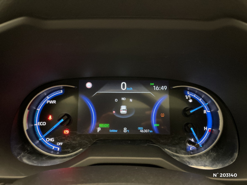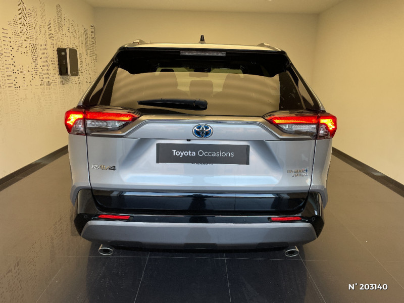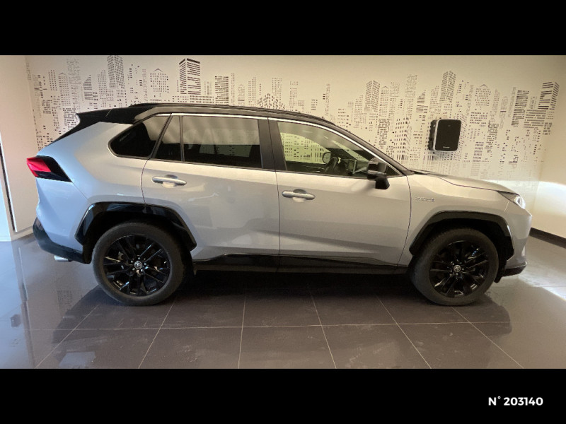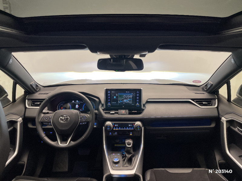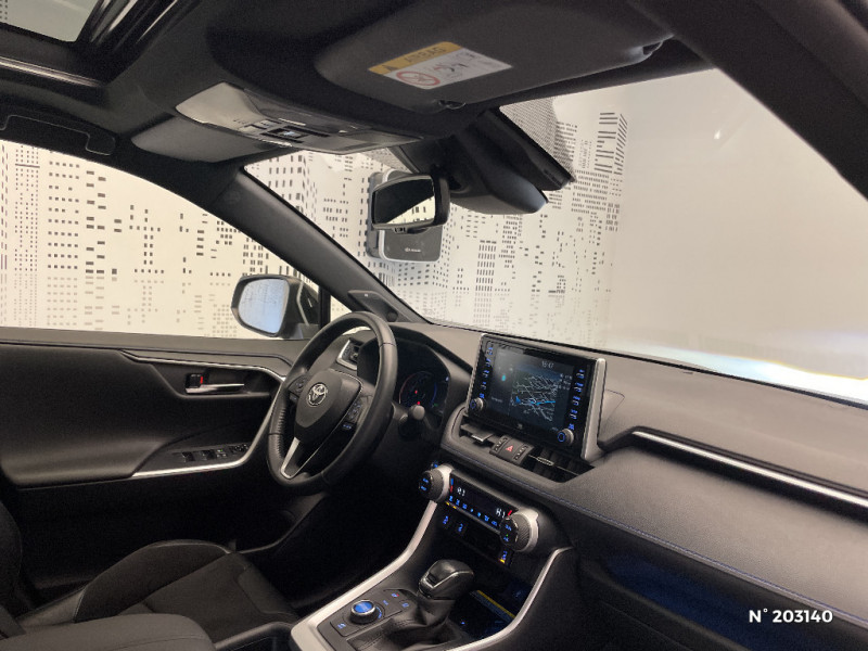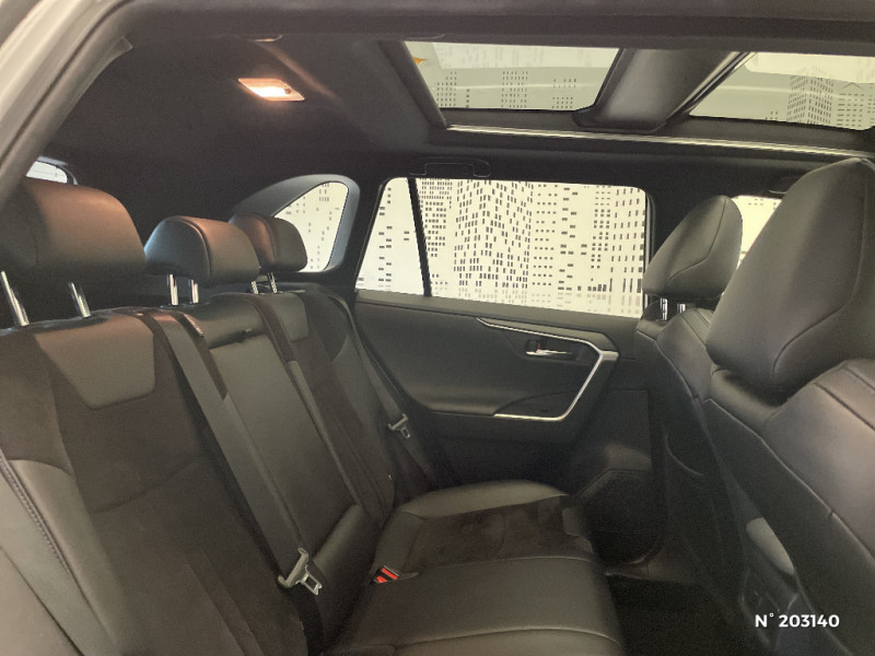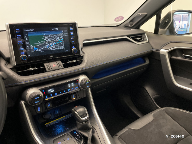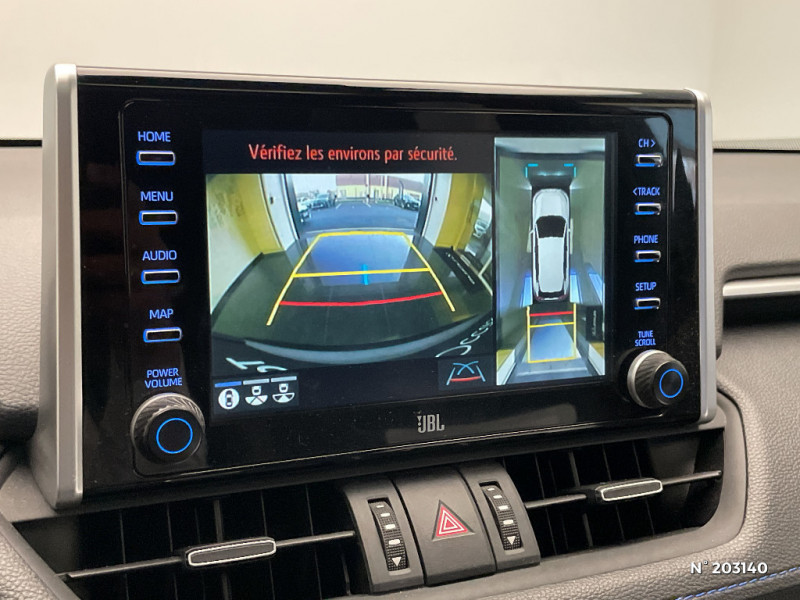 Tapis de sol RAV4 Hybrid en velours, AV et AR / Toyota Safety Sense Système de sécurité précollision avec détection des piétons, Alerte de franchissement de ligne et détecteur de fatigue, gestion automatique des feux de route, lecture des panneaux de signalisation, régulateur de vitesse adaptatif. / Toyota Touch & Go : système de navigation à écran tactile 8" avec info trafic et cartographie européenne / Vitres électriques AV et AR à fonction anti-pincement avec descente et remontée à impulsion / Volant et levier de vitesse gainés cuir / Volant multifonction 3 branches, réglable manuellement en hauteur et profondeur / Accoudoir central AV avec compartiment de rangement / Accoudoir central AV avec compartiment de rangement rétroéclairé / Alerte d'oubli de ceinture et de lumière / Antenne de toit type requin / Appuis-tête AV réglables en hauteur et en inclinaison réglables / "ATTENTION" - Equipements non communiqués / Avertisseur de circulation AR avec freinage d'urgence automatique (PKSB) / Badge AWD-i sur hayon / Barres de toit longitudinales / Cache-bagages / Carrosserie bi-ton avec toit et piliers peints en Noir Attitude / Ciel de pavillon noir / Clé sécurisée contre les attaques par relais / Coffre à ouverture et fermeture électriques / Combiné d'instrumentation avec écran couleur TFT 8" / Commande de blocage de différentiel "Trail" / Contreportes en cuir synthétique / Crochets porte-manteaux x2 / Double sortie d'echappement ovale / Ecrous antivol / Eléments de carrosserie de couleur Noir Laqué / Espace de rangement latéral dans le coffre / Essuie-glaces AV avec détecteur de pluie / Fermeture centralisée avec commande à distance et verrouillage des ouvrants en roulant / Feux clignotants à halogène / Feux stop à halogène / Filet coffre / Frein de stationnement électrique / Grille de calandre couleur acier / Indicateur de perte de pression des pneus / Jantes en alliage 19" Mojave Noir / Kit de réparation anti-crevaison / Kit de sécurité / Optiques AV et AR à LED / Optiques AV full-LED Premium / Optiques AV LED avec signature lumineuse Premium / Peinture bi-ton Blanc Nacré/Noir Attitude / Plancher de coffre réversible avec revers imperméable / Poignées de portes extérieures couleur carroserie / Porte-gobelets rétroéclairés / Protections de soubassement AV et AR grises / Rétroviseur intérieur électrochromatique / Rétroviseurs extérieurs couleur carrosserie / Rétroviseurs extérieurs électriques, dégivrants et rabattables électriquement avec rappel de clignotants / Sélection mode de conduite : ECO, NORMAL, SPORT, EV / Sellerie en cuir Alcantara noir avec embossage "RAV4" / Séparateur de coffre / Seuils des portes aluminium siglés RAV4 / Siège conducteur à réglage lombaire électrique / Système anti-démarrage avec fonction double verrouillage / Système audio Toyota Touch avec écran couleur tactile 8" multifonction, connectique auxiliaire/USB et radio digitale (DAB) / Système audio Toyota Touch avec écran couleur tactile 8" multifonction, lecteur CD, système de téléphonie Bluetooth, connectique auxiliaire/USB, 6 haut-parleurs et antenne DAB. / Système AVAS (Acoustic Vehicle Alerting System) / Système d'appel d'urgence automatique "E-Call" / Système de connectivité smartphone Apple CarPlay / Android Auto / Système de téléphone Bluetooth / Système d'ouverture/fermeture des portes et démarrage sans clé "Smart Entry & Start" / Système intelligent de plancher plat Toyota Easy Flat System / Systèmes de contrôle de motricité (TRC) et de stabilité (TSC) / Systèmes de freinage antiblocage (ABS) et d'amplification de freinage d'urgence (BA) + EBD / 7 Airbags (frontaux et latéraux pour conducteur et passager AV, rideaux AV et AR et protège-genoux conducteur) / 9 HP