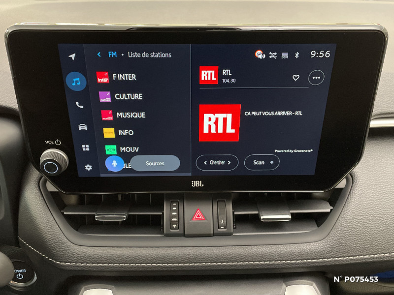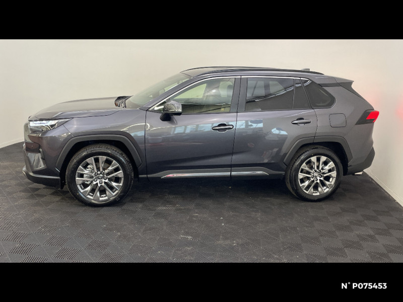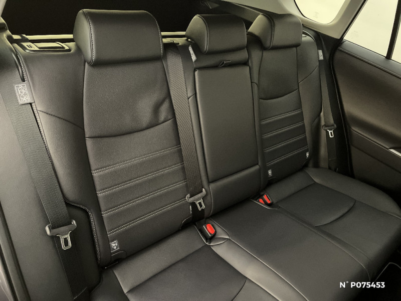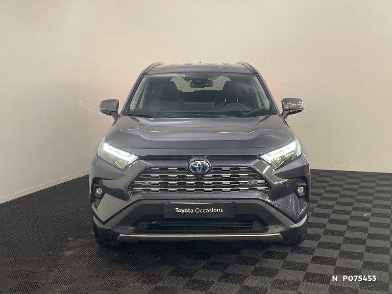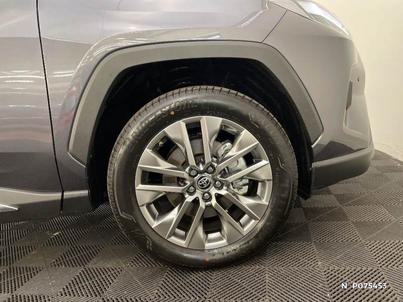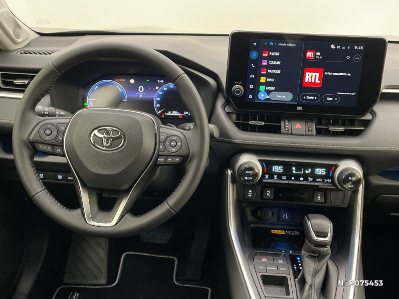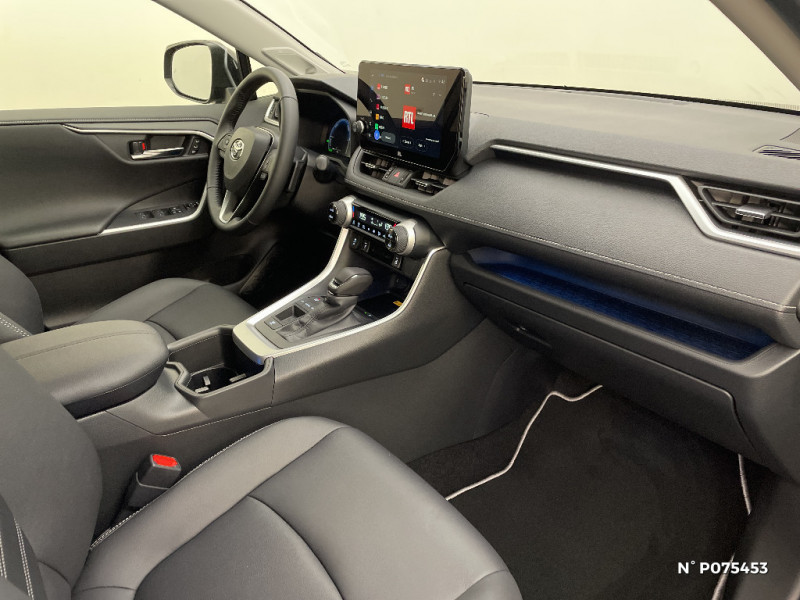 Combiné d'instrumentation avec écran couleur TFT 8" / Crochets porte-manteaux x2 / Double sortie d'echappement ovale / Ecrous antivol / Espace de rangement latéral dans le coffre / Essuie-glaces AV avec détecteur de pluie / Fermeture centralisée avec commande à distance et verrouillage des ouvrants en roulant / Feux clignotants à halogène / Feux stop à halogène / Filet coffre / Frein de stationnement électrique / Grille de calandre couleur acier / Indicateur de perte de pression des pneus / Kit de réparation anti-crevaison / Kit de sécurité / Compteur numérique personnalisable 12,3" / Contreportes en cuir synthétique / Navigation connectée / Pack Design / Peinture Blanc Pur / Plancher de coffre réversible avec revers imperméable / Poignées de portes extérieures couleur carroserie avec insert chromé / Optiques AV et AR à LED / Optiques AV LED avec signature lumineuse Premium / Porte-gobelets rétroéclairés / Protections de soubassement AV et AR grises / Rétroviseur intérieur électrochromatique / Rétroviseurs extérieurs couleur carrosserie / Rétroviseurs extérieurs électriques, dégivrants et rabattables électriquement avec rappel de clignotants / Sélection mode de conduite : ECO, NORMAL, SPORT, EV / Siège conducteur à réglage lombaire électrique / Accoudoir central AV avec compartiment de rangement rétroéclairé / Alerte d'oubli de ceinture et de lumière / Antenne de toit type requin / Appuis-tête AV réglables en hauteur et en inclinaison réglables / Avertisseur de circulation AR avec freinage d'urgence automatique (PKSB) / Barres de toit longitudinales / Ciel de pavillon gris / Clé sécurisée contre les attaques par relais / Coffre à ouverture et fermeture électriques / Siège conducteur à réglages électriques avec mémorisation / Système audio Toyota Touch avec écran couleur tactile 8" multifonction, connectique auxiliaire/USB et radio digitale (DAB) / Système AVAS (Acoustic Vehicle Alerting System) / Système d'appel d'urgence automatique "E-Call" / Système de connectivité smartphone Apple CarPlay / Android Auto / Système d'ouverture/fermeture des portes et démarrage sans clé "Smart Entry & Start" / Système intelligent de plancher plat Toyota Easy Flat System / Système multimédia Toyota Smart Connect et Smart Connect Plus avec écran central 10.5, Apple CarPlay sans fil et reconnaissance vocale avancée / Systèmes de contrôle de motricité (TRC) et de stabilité (TSC) / Systèmes de freinage antiblocage (ABS) et d'amplification de freinage d'urgence (BA) + EBD / Tapis de sol RAV4 Hybrid en velours, AV et AR / Toyota Safety Sense Système de sécurité précollision avec détection des piétons, Alerte de franchissement de ligne et détecteur de fatigue, gestion automatique des feux de route, lecture des panneaux de signalisation, régulateur de vitesse adaptatif. / Vitres électriques AV et AR à fonction anti-pincement avec descente et remontée à impulsion / Volant et levier de vitesse gainés cuir / Volant multifonction 3 branches, réglable manuellement en hauteur et profondeur / Système de téléphone Bluetooth / 7 Airbags (frontaux et latéraux pour conducteur et passager AV, rideaux AV et AR et protège-genoux conducteur)