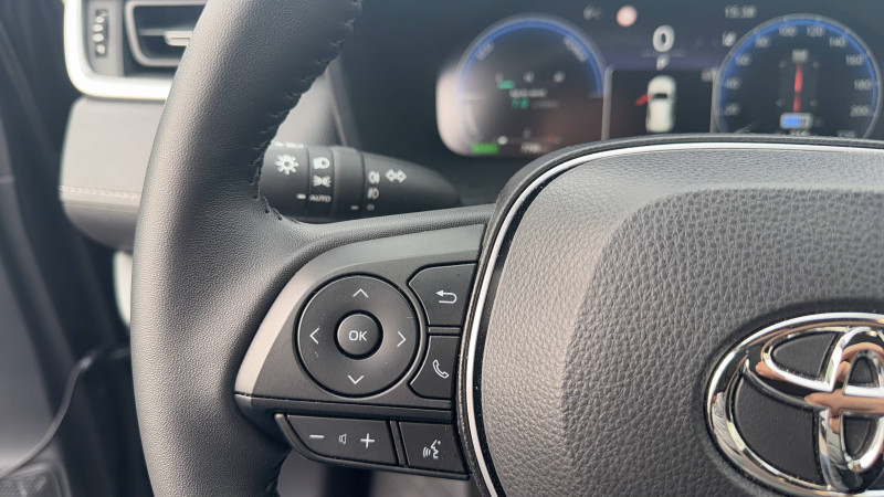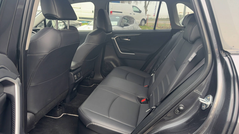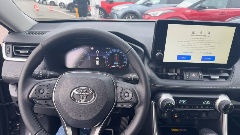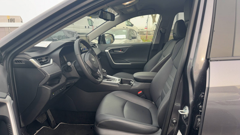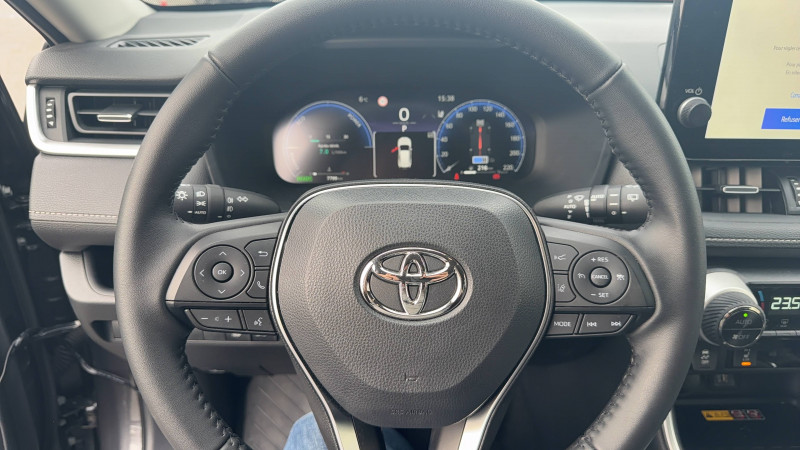 1 prise 12 V et 2 prises USB-C AR / 2 prises 12 V, 1 prise USB et une prise USB-C AV / 6 HP / 7 Airbags (frontaux et latéraux pour conducteur et passager AV, rideaux AV et AR et protège-genoux conducteur, avec déconnexion de l´airbag passager) / Accoudoir central AV avec compartiment de rangement / Antenne de toit type requin / Avertisseur de circulation AR / Badges extérieurs et badge intérieur 30 YEARS / Bandeau de planche de bord gainé de cuir noir / Barres de toit longitudinales / Boîte automatique à variation continue / Ciel de pavillon gris / Clé sécurisée contre les attaques par relais / Coffre à ouverture et fermeture électriques / Commandes des vitres rétroéclairées / Compteur numérique personnalisable 12,3" / Contre-portes avec revêtement Premium / Contrôle de traction (TCS) / Direction électrique motorisée (RP-EPS) / Double sortie d'echappement ovale / Eclairage d'accueil LED aux places AV / Ecrous antivol / Electrostabilisateur programmé (ESP) / Essuie-glaces AV avec détecteur de pluie / Fermeture centralisée avec commande à distance et verrouillage automatique des ouvrants en roulant / Filet coffre / Frein de stationnement électrique / Grille de calandre couleur acier / Indicateur de perte de pression des pneus / Kit de sécurité / Optiques AV et AR à LED sauft clignotants et feux de recul / Ornementation sous optiques AR chromée / Ornements supérieurs de vitre chromés / Ouverture électrique de la trappe à carburant / Passage de roues noirs / Plancher de coffre réversible avec revers imperméable / Poignées de portes extérieures couleur carroserie / Poignées de portes intérieures satinées / Rétroviseur intérieur électrochromatique / Rétroviseurs extérieurs électriques, dégivrants, et rabattables automatiquement avec rappels de clignotants, couleur carrosserie / Roue de secours 18" de type galette dans le coffre / Sélection mode de conduite : ECO, NORMAL, SPORT, EV / Services connectés de contrôle à distance MyToyota (inclus 4 ans) / Services connectés standards MyToyota (inclus 10 ans) / Siège conducteur à réglage lombaire électrique / Système AVAS (Acoustic Vehicle Alerting System) / Système d'alarme avec fonction double verrouillage et détection de bris de glace / Système d'appel d'urgence automatique "E-Call" / Système de téléphonie Bluetooth, connectique auxiliaire/USB et radio digitale DAB / Système d'ouverture/fermeture des portes et démarrage sans clé "Smart Entry & Start" / Système intelligent de plancher plat Toyota Easy Flat System / Système multimédia Toyota Smart Connect Plus avec écran couleur tactile haute définition, Navigation satellitaire embraquée, Zones de danger fixes, connectivité smartphone sans fil AppleCar Play et Android Auto filaire, Navigation connectée avec infotrafic en temps réel et Smart Parking (aide à la recherche de stationnement), Reconnaissance vocale avancée "Hey Toyota", 4 ans de mises à jour cartographiques et services connectés inclus / Systèmes de contrôle de motricité (TRC) et de stabilité (TSC) / Systèmes de freinage antiblocage (ABS) et d'amplification de freinage d'urgence (BA) + EBD / Tapis de sol en velours, AV et AR avec logo "RAV4 Hybrid" / Toyota Safety Sense Système de sécurité précollision avec détection des véhicules, piétons et cyclistes, actif également dans les intersections. Alerte de franchissement de ligne avec aide au maintien dans la file, assistant de trajectoire et détecteur de fatigue, Lecture des panneaux de signalisation avec limiteur de vitesse, Gestion automatique des feux de route, Régulateur de vitesse adaptatif intelligent, Système d'aide aux manoeuvres d'évitement d'urgence avec détection des véhicules, piétons / Vitres électriques avec système antipincement, descente et remontée à impulsion / Volant et levier de vitesse gainés cuir avec insert type chrome / Volant multifonction 3 branches, réglable manuellement en hauteur et profondeur