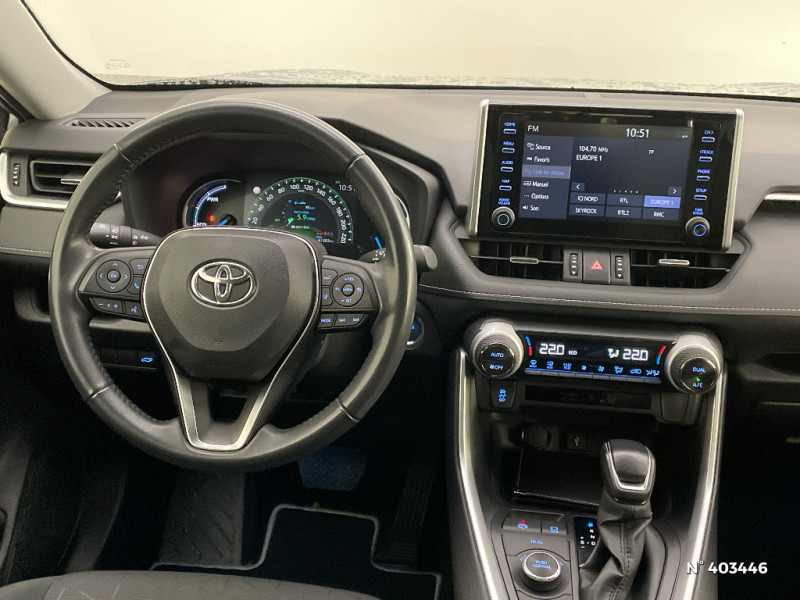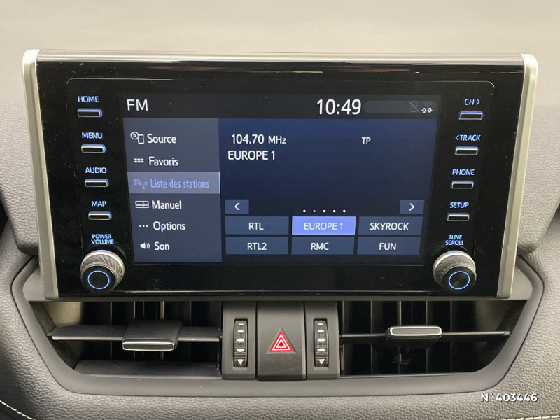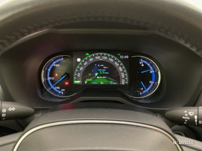 Filet coffre / Frein de stationnement électrique / Grille de calandre couleur acier / Indicateur de perte de pression des pneus / Kit de sécurité / Optiques AV et AR à LED / Sellerie en tissu sport noir / Système anti-démarrage avec fonction double verrouillage / Système audio Toyota Touch avec écran couleur tactile 8" multifonction, connectique auxiliaire/USB et radio digitale (DAB) / Système audio Toyota Touch avec écran couleur tactile 8" multifonction, lecteur CD, système de téléphonie Bluetooth, connectique auxiliaire/USB, 6 haut-parleurs et antenne DAB. / Système AVAS (Acoustic Vehicle Alerting System) / Système d'appel d'urgence automatique "E-Call" / Système de connectivité smartphone Apple CarPlay / Android Auto / Système de téléphone Bluetooth / Système d'ouverture/fermeture des portes et démarrage sans clé "Smart Entry & Start" / Système intelligent de plancher plat Toyota Easy Flat System / Systèmes de contrôle de motricité (TRC) et de stabilité (TSC) / Systèmes de freinage antiblocage (ABS) et d'amplification de freinage d'urgence (BA) + EBD / Tapis de sol RAV4 Hybrid en velours, AV et AR / Toyota Safety Sense Système de sécurité précollision avec détection des piétons, Alerte de franchissement de ligne et détecteur de fatigue, gestion automatique des feux de route, lecture des panneaux de signalisation, régulateur de vitesse adaptatif. / Vitres électriques AV et AR à fonction anti-pincement avec descente et remontée à impulsion / Volant et levier de vitesse gainés cuir / Volant multifonction 3 branches, réglable manuellement en hauteur et profondeur / 6 HP / 7 Airbags (frontaux et latéraux pour conducteur et passager AV, rideaux AV et AR et protège-genoux conducteur) / Peinture Blanc Pur / Plancher de coffre réversible avec revers imperméable / Poignées de portes extérieures couleur carroserie / Protections de soubassement AV et AR grises / Rétroviseur intérieur électrochromatique / Rétroviseurs extérieurs couleur carrosserie / Rétroviseurs extérieurs électriques, dégivrants et rabattables électriquement avec rappel de clignotants / Roue de secours de type galette dans le coffre / Sélection mode de conduite : ECO, NORMAL, SPORT, EV / Accoudoir central AV avec compartiment de rangement / Accoudoir central AV avec compartiment de rangement rétroéclairé / Alerte d'oubli de ceinture et de lumière / Antenne de toit type requin / Appuis-tête AV réglables en hauteur et en inclinaison réglables / "ATTENTION" - Equipements non communiqués / Badge AWD-i sur hayon / Barres de toit longitudinales / Cache-bagages / Ciel de pavillon gris / Clé sécurisée contre les attaques par relais / Coffre à ouverture et fermeture électriques / Combiné d'instrumentation avec écran couleur TFT 8" / Commande de blocage de différentiel "Trail" / Contreportes en cuir synthétique / Crochets porte-manteaux x2 / Double sortie d'echappement ovale / Ecrous antivol / Espace de rangement latéral dans le coffre / Essuie-glaces AV avec détecteur de pluie / Fermeture centralisée avec commande à distance et verrouillage des ouvrants en roulant / Feux clignotants à halogène / Feux stop à halogène