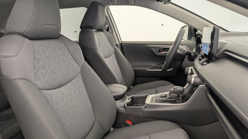 6 HP / Indicateur de perte de pression des pneus / Antenne de toit type requin / Barres de toit longitudinales / Accoudoir central AV avec compartiment de rangement / Electrostabilisateur programmé (ESP) / Passage de roues noirs / Système d'appel d'urgence automatique "E-Call" / Direction électrique motorisée (RP-EPS) / Ciel de pavillon gris / Volant et levier de vitesse gainés cuir avec insert type chrome / Volant multifonction 3 branches, réglable manuellement en hauteur et profondeur / Filet coffre / Système AVAS (Acoustic Vehicle Alerting System) / Ecrous antivol / Kit de sécurité / Frein de stationnement électrique / Plancher de coffre réversible avec revers imperméable / Système intelligent de plancher plat Toyota Easy Flat System / Double sortie d'echappement ovale / Grille de calandre couleur acier / Coffre à ouverture et fermeture électriques / Commande de blocage de différentiel "Trail" / Clé sécurisée contre les attaques par relais / Sélection mode de conduite : ECO, NORMAL, SPORT, EV / Systèmes de freinage antiblocage (ABS) et d'amplification de freinage d'urgence (BA) + EBD / Systèmes de contrôle de motricité (TRC) et de stabilité (TSC) / Sellerie en tissu sport noir / Ornements supérieurs de vitre chromés / Bandeau de planche de bord gainé de cuir noir / Ouverture électrique de la trappe à carburant / Compteur numérique personnalisable 12,3" / Fermeture centralisée avec commande à distance et verrouillage automatique des ouvrants en roulant / 7 Airbags (frontaux et latéraux pour conducteur et passager AV, rideaux AV et AR et protège-genoux conducteur, avec déconnexion de l´airbag passager) / Ornementation sous optiques AR chromée / Système d?alarme avec fonction double verrouillage et détection de bris de glace / 1 prise 12 V et 2 prises USB-C AR / 2 prises 12 V, 1 prise USB et une prise USB-C AV / Poignées de portes intérieures satinées / Commandes des vitres rétroéclairées / Tapis de sol en velours, AV et AR avec logo "RAV4 Hybrid" / Eclairage d'accueil LED aux places AV / Optiques AV et AR à LED sauft clignotants et feux de recul / Système de téléphonie Bluetooth, connectique auxiliaire/USB et radio digitale DAB / Rétroviseurs extérieurs électriques, dégivrants, et rabattables automatiquement avec rappels de clignotants, couleur carrosserie / Poignées de portes extérieures couleur carroserie / Vitres électriques avec système antipincement, descente et remontée à impulsion / Système multimédia Toyota Smart Connect avec écran couleur tactile haute définition, connectivité smartphone sans fil AppleCar Play et Android Auto filaire, Navigation connectée avec infotrafic en temps réel et Smart Parking (aide à la recherche de stationnement), Reconnaissance vocale avancée "Hey Toyota", 4 ans de mises à jour cartographiques et services connectés inclus / Toyota Safety Sense Système de sécurité précollision avec détection des véhicules, piétons et cyclistes, actif également dans les intersections. Alerte de franchissement de ligne avec aide au maintien dans la file, assistant de trajectoire et détecteur de fatigue, Lecture des panneaux de signalisation avec limiteur de vitesse, Gestion automatique des feux de route, Régulateur de vitesse adaptatif intelligent, Système d'aide aux manoeuvres d'évitement d'urgence avec détection des véhicules, piétons / Contre-portes avec revêtement Premium / Boîte automatique à variation continue / Contrôle de traction (TCS) / Système d'ouverture/fermeture des portes et démarrage sans clé "Smart Entry & Start" / Rétroviseur intérieur électrochromatique / Essuie-glaces AV avec détecteur de pluie / / Véhicules équivalents: CRV, X-trail