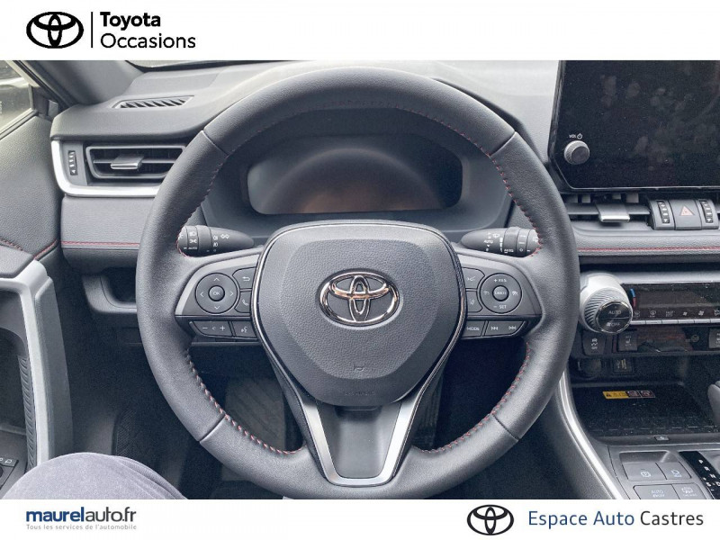 1 Port USB sur console centrale / 7 Airbags (1 protège-genoux conducteur, 2 fronteaux AV, 2 lateraux AV, 2 rideaux AV et AR) avec déconnexion de l'airbag passager / Accoudoir central AV avec compartiment de rangement / Antenne de toit type requin / Avertisseur de circulation AR (RCTA) / Bandeau de planche de bord gainé de cuir noir / Barres de toit longitudinales / Câble de recharge Mode 2 (Type 2) - Domestique (3.3 kW) / Câble de recharge Mode 3 (Type 2) 6,6kW - 7,5m - avec prise Mennekes / Calandre AV noir laqué / Ciel de pavillon noir / Climatisation à régulation automatique bizone activable à distance / Coffre à ouverture et fermeture électriques / Commande de blocage de différentiel "Trail" / Commande de boîte de vitesses séquentielles / Commandes des vitres rétroéclairées / Compartiment de rangement dans la console centrale / Compteur numérique personnalisable 12,3" / Coques de rétroviseur couleur carrosserie / Direction électrique motorisée (RP-EPS) / Double sortie d'echappement ovale / Eclairage d'accueil LED aux places AV / Ecrous antivol / Eléments de carrosserie de couleur Noir Laqué bas de caisse latéraux, bas de porte de coffre et haut de pare-chocs AR, pare-chocs AV et passages de roues / Essuie-glaces AV avec détecteur de pluie / Fermeture centralisée avec commande à distance et verrouillage des ouvrants en roulant / Filet coffre / Frein de stationnement électrique / Indicateur de perte de pression des pneus / Indicateur de température extérieure / Kit de sécurité / Optiques AV et AR à LED avec nouvelle signature lumineuse Premium / Ornement de calandre AV chromé / Ornements supérieurs de vitre chromés / Ouverture électrique de la trappe à carburant / Poignées de portes extérieures couleur carroserie / Ports USB (1 x console centrale) / Ports USB - Type C - 2 ports supplémentaires dans l'accoudoir / Ports USB - Type C (2 x passagers AR) / Prise 12V 1 x console centrale, 1 x coffre / Prise 220 V / 150 W dans le coffre / Programme "Toyota Experience" / Rétroviseur intérieur électrochromatique / Rétroviseurs extérieurs électriques, dégivrants et rabattables électriquement avec rappel de clignotants / Roue de secours de type galette dans le coffre / Sacoche de rangement pour le câble de recharge / Sélection mode de conduite : ECO, NORMAL, SPORT, EV MODE, EV AUTO, HYBRID MODE, CHARGE MODE / Sellerie sport Premium noir avec surpiqûres rouges / Services connectés de contrôle à distance MyToyota (inclus 4 ans) / Services connectés standards MyToyota (inclus 10 ans) / Siège conducteur à réglage lombaire électrique / Système d'alarme avec fonction double verrouillage et détection de bris de glace / Système d'appel d'urgence automatique "E-Call" / Système de contrôle de motricité (TRC) et de stabilité du véhicule et de l'attelage (TSC) / Système de freinage antiblocage ABS+BA+EBD / Système d'ouverture/fermeture et démarrage sans clé "Smart Entry & Start" / Système multimédia Toyota Smart Connect: Écran couleur tactile 10,5 haute définition, Connectivité Bluetooth, USB et radio FM et DAB (digitale), Système de connectivité smartphone Apple CarPlay (sans fil), Android Auto (filaire avec un câble USB certifié) Services intelligents dont navigation connectée avec infotrafic en temps réel, mises à jour cartographiques, assistant vocal Hey Toyota et recherche de points d'intérêts / Tapis de sol / Toyota Safety Sense Système de sécurité précollision avec détection des véhicules, piétons et cyclistes, actif également dans les intersections. Alerte de franchissement de ligne avec aide au maintien dans la file, assistant de trajectoire et détecteur de fatigue, Lecture des panneaux de signalisation avec limiteur de vitesse, Gestion automatique des feux de route, Régulateur de vitesse adaptatif intelligent, Système d'aide aux manoeuvres d'évitement d'urgence avec détection des véhicules, piétons et cyclistes / Vitres électriques AV et AR à fonction anti-pincement avec descente et remontée à impulsion / Volant et levier de vitesse gainés cuir / Volant multifonction 3 branches, réglable manuellement en hauteur et profondeur