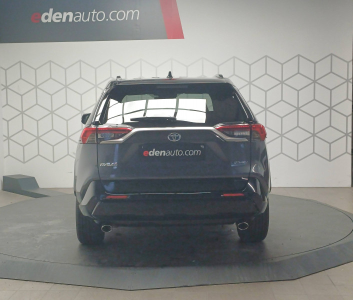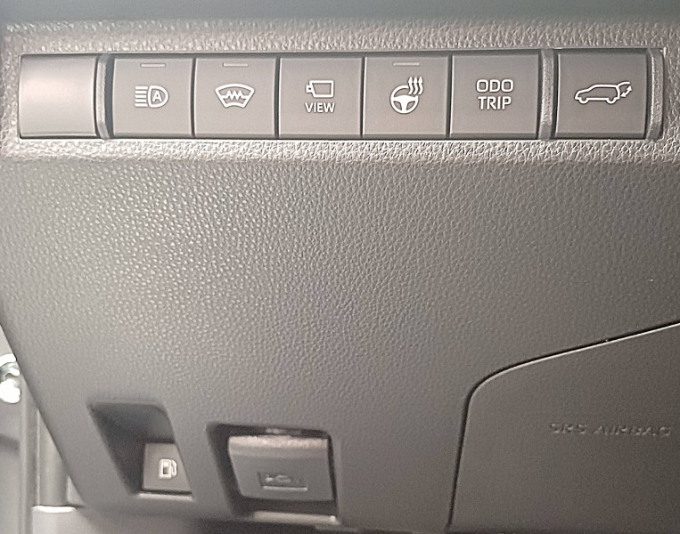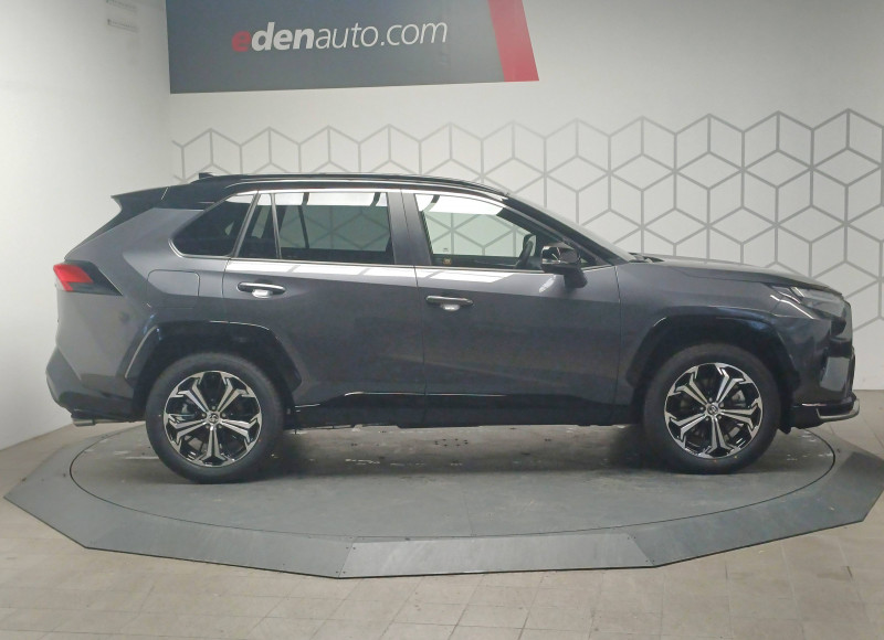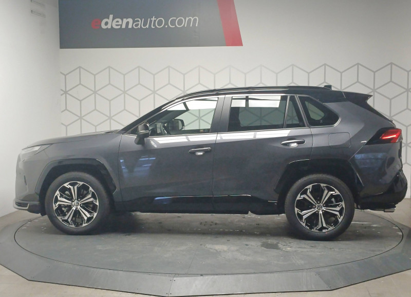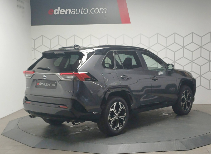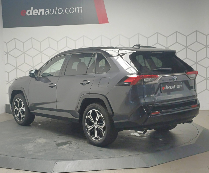 1 Port USB sur console centrale / 7 Airbags (1 protège-genoux conducteur, 2 fronteaux AV, 2 lateraux AV, 2 rideaux AV et AR) avec déconnexion de l'airbag passager / Accoudoir central AV avec compartiment de rangement / Antenne de toit type requin / Avertisseur de circulation AR avec freinage d'urgence automatique (PKSB) / Bandeau de planche de bord gainé de cuir noir / Barres de toit longitudinales / Câble de recharge Mode 2 (Type 2) - Domestique (3.3 kW) / Câble de recharge Mode 3 (Type 2) 6,6kW - 7,5m - avec prise Mennekes / Calandre AV noir laqué / Carrosserie bi-ton avec toit et piliers peints en Noir Attitude / Ciel de pavillon noir / Climatisation à régulation automatique bizone activable à distance / Coffre à ouverture et fermeture électriques / Commande de blocage de différentiel "Trail" / Commande de boîte de vitesses séquentielles / Commandes des vitres rétroéclairées / Compartiment de rangement dans la console centrale / Compteur numérique personnalisable 12,3" / Coques de rétroviseur extérieur noir laqué / Direction électrique motorisée (RP-EPS) / Double sortie d'echappement ovale / Eclairage d'accueil LED aux places AV / Ecrous antivol / Eléments de carrosserie de couleur Noir Laqué bas de caisse latéraux, bas de porte de coffre et haut de pare-chocs AR, pare-chocs AV et passages de roues / Essuie-glaces AV avec détecteur de pluie / Fermeture centralisée avec commande à distance et verrouillage des ouvrants en roulant / Filet coffre / Frein de stationnement électrique / Indicateur de perte de pression des pneus / Indicateur de température extérieure / Kit de sécurité / Optiques AV et AR à LED avec nouvelle signature lumineuse Premium / Ornement de calandre AV chromé / Ornements supérieurs de vitre chromés / Ouverture électrique de la trappe à carburant / Poignées de portes extérieures couleur carroserie / Ports USB (1 x console centrale) / Ports USB - Type C - 2 ports supplémentaires dans l'accoudoir / Ports USB - Type C (2 x passagers AR) / Prise 12V 1 x console centrale, 1 x coffre / Prise 220 V / 150 W dans le coffre / Programme "Toyota Experience" / Rétroviseur intérieur électrochromatique / Rétroviseurs extérieurs électriques, dégivrants et rabattables électriquement avec rappel de clignotants / Roue de secours de type galette dans le coffre / Sacoche de rangement pour le câble de recharge / Sélection mode de conduite : ECO, NORMAL, SPORT, EV MODE, EV AUTO, HYBRID MODE, CHARGE MODE / Sellerie cuir noir avec surpiqûres rouges / Services connectés de contrôle à distance MyToyota (inclus 4 ans) / Services connectés standards MyToyota (inclus 10 ans) / Seuils des portes aluminium / Siège conducteur à réglage lombaire électrique / Sièges AV réglables électriquement - 8 posotions (à mémoire côté conducteur) / Système audio JBL Premium avec 9HP / Système d'alarme avec fonction double verrouillage et détection de bris de glace / Système d'appel d'urgence automatique "E-Call" / Système de contrôle de motricité (TRC) et de stabilité du véhicule et de l'attelage (TSC) / Système de freinage antiblocage ABS+BA+EBD / Système d'ouverture/fermeture et démarrage sans clé "Smart Entry & Start" / Système multimédia Toyota Smart Connect: Écran couleur tactile 10,5 haute définition, Connectivité Bluetooth, USB et radio FM et DAB (digitale), Système de connectivité smartphone Apple CarPlay (sans fil), Android Auto (filaire avec un câble USB certifié) Services intelligents dont navigation connectée avec infotrafic en temps réel, mises à jour cartographiques, assistant vocal Hey Toyota et recherche de points d'intérêts / Tapis de sol / Toyota Safety Sense Système de sécurité précollision avec détection des véhicules, piétons et cyclistes, actif également dans les intersections. Alerte de franchissement de ligne avec aide au maintien dans la file, assistant de trajectoire et détecteur de fatigue, Lecture des panneaux de signalisation avec limiteur de vitesse, Gestion automatique des feux de route, Régulateur de vitesse adaptatif intelligent, Système d'aide aux manoeuvres d'évitement d'urgence avec détection des véhicules, piétons et cyclistes / Vitres électriques AV et AR à fonction anti-pincement avec descente et remontée à impulsion / Volant et levier de vitesse gainés cuir / Volant multifonction 3 branches, réglable manuellement en hauteur et profondeur