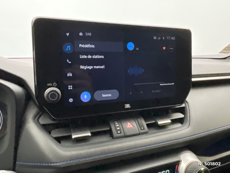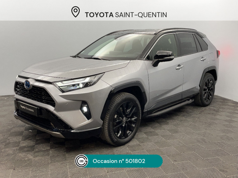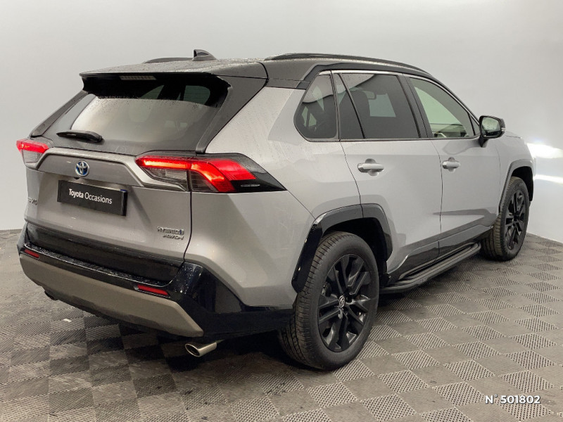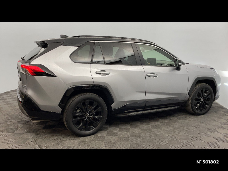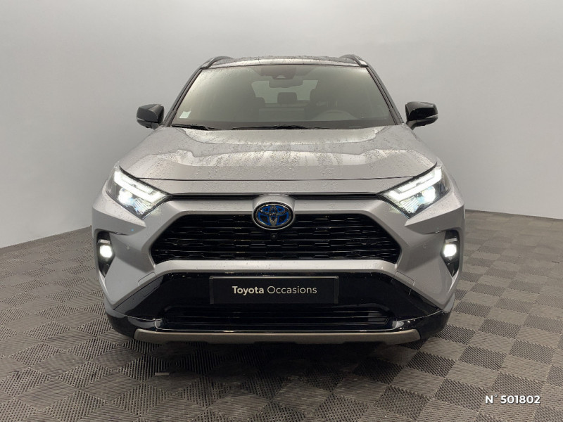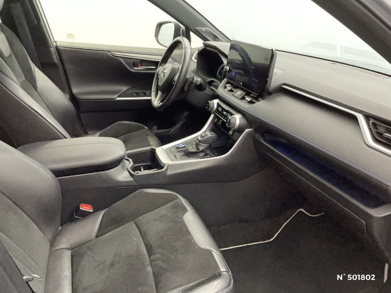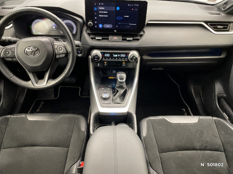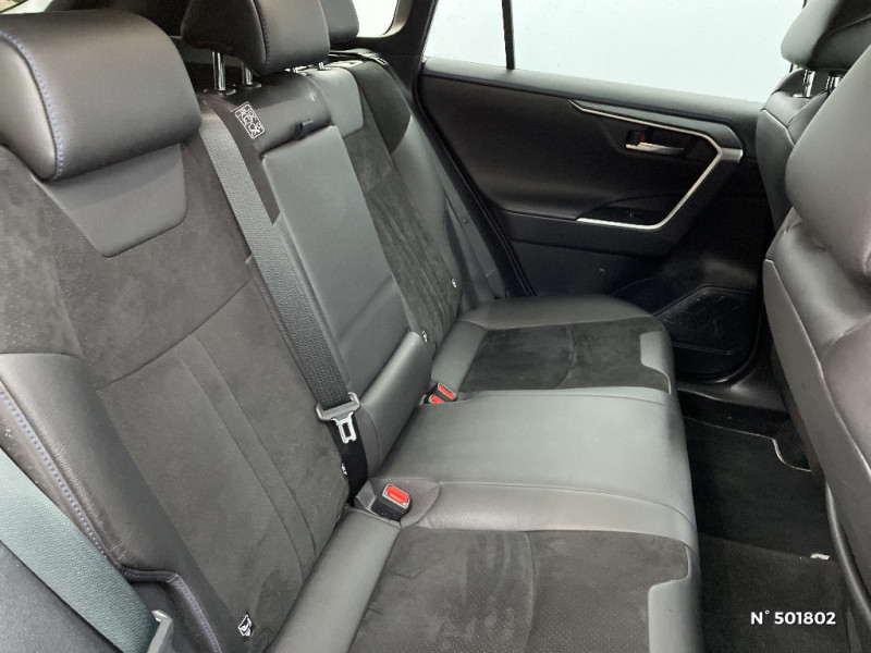 Toyota Safety Sense Système de sécurité précollision avec détection des piétons, Alerte de franchissement de ligne et détecteur de fatigue, gestion automatique des feux de route, lecture des panneaux de signalisation, régulateur de vitesse adaptatif. / Volant multifonction 3 branches, réglable manuellement en hauteur et profondeur / Système multimédia Toyota Smart Connect et Smart Connect Plus avec écran central 10.5, Apple CarPlay sans fil et reconnaissance vocale avancée / Système d'ouverture/fermeture des portes et démarrage sans clé "Smart Entry & Start" / Système de téléphone Bluetooth / Système de connectivité smartphone Apple CarPlay / Android Auto / Siège conducteur à réglage lombaire électrique / Sellerie en cuir Alcantara noir avec embossage "RAV4" / Rétroviseurs extérieurs électriques, dégivrants et rabattables électriquement avec rappel de clignotants / Optiques AV et AR à LED / Navigation connectée / Jantes en alliage 19" Mojave Noir / Essuie-glaces AV avec détecteur de pluie / Compteur numérique personnalisable 12,3" / Coffre à ouverture et fermeture électriques