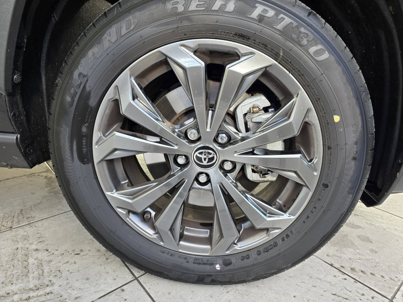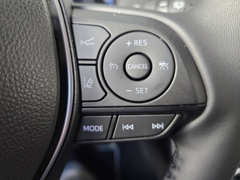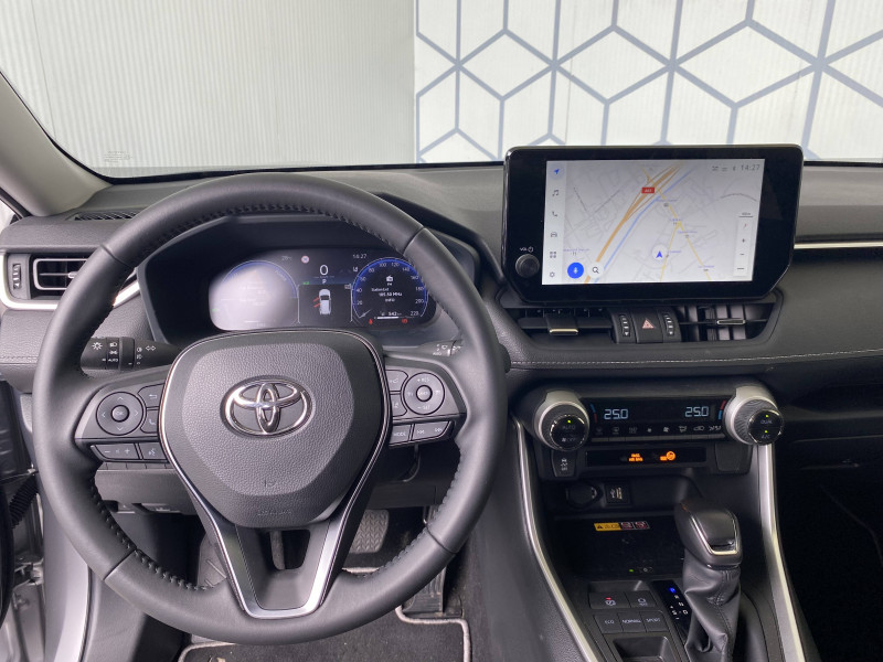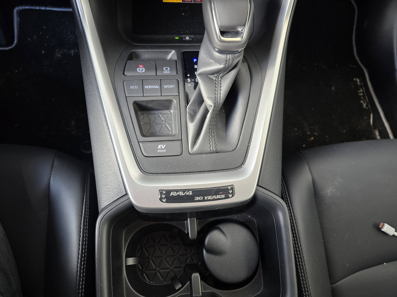 1 prise 12 V et 2 prises USB-C AR / 2 prises 12 V, 1 prise USB et une prise USB-C AV / 6 HP / 7 Airbags (frontaux et latéraux pour conducteur et passager AV, rideaux AV et AR et protège-genoux conducteur, avec déconnexion de l´airbag passager) / Accoudoir central AV avec compartiment de rangement / Antenne de toit type requin / Avertisseur de circulation AR / Badges extérieurs et badge intérieur 30 YEARS / Bandeau de planche de bord gainé de cuir noir / Barres de toit longitudinales / Boîte automatique à variation continue / Ciel de pavillon gris / Clé sécurisée contre les attaques par relais / Coffre à ouverture et fermeture électriques / Commandes des vitres rétroéclairées / Compteur numérique personnalisable 12,3" / Contre-portes avec revêtement Premium / Contrôle de traction (TCS) / Direction électrique motorisée (RP-EPS) / Double sortie d'echappement ovale / Eclairage d'accueil LED aux places AV / Ecrous antivol / Electrostabilisateur programmé (ESP) / Essuie-glaces AV avec détecteur de pluie / Fermeture centralisée avec commande à distance et verrouillage automatique des ouvrants en roulant / Filet coffre / Frein de stationnement électrique / Grille de calandre couleur acier / Indicateur de perte de pression des pneus / Kit de sécurité / Optiques AV et AR à LED sauft clignotants et feux de recul / Ornementation sous optiques AR chromée / Ornements supérieurs de vitre chromés / Ouverture électrique de la trappe à carburant / Passage de roues noirs / Plancher de coffre réversible avec revers imperméable / Poignées de portes extérieures couleur carroserie / Poignées de portes intérieures satinées / Rétroviseur intérieur électrochromatique / Rétroviseurs extérieurs électriques, dégivrants, et rabattables automatiquement avec rappels de clignotants, couleur carrosserie / Roue de secours 18" de type galette dans le coffre / Sélection mode de conduite : ECO, NORMAL, SPORT, EV / Services connectés de contrôle à distance MyToyota (inclus 4 ans) / Services connectés standards MyToyota (inclus 10 ans) / Siège conducteur à réglage lombaire électrique / Système AVAS (Acoustic Vehicle Alerting System) / Système d'alarme avec fonction double verrouillage et détection de bris de glace / Système d'appel d'urgence automatique "E-Call" / Système de téléphonie Bluetooth, connectique auxiliaire/USB et radio digitale DAB / Système d'ouverture/fermeture des portes et démarrage sans clé "Smart Entry & Start" / Système intelligent de plancher plat Toyota Easy Flat System / Système multimédia Toyota Smart Connect Plus avec écran couleur tactile haute définition, Navigation satellitaire embraquée, Zones de danger fixes, connectivité smartphone sans fil AppleCar Play et Android Auto filaire, Navigation connectée avec infotrafic en temps réel et Smart Parking (aide à la recherche de stationnement), Reconnaissance vocale avancée "Hey Toyota", 4 ans de mises à jour cartographiques et services connectés inclus / Systèmes de contrôle de motricité (TRC) et de stabilité (TSC) / Systèmes de freinage antiblocage (ABS) et d'amplification de freinage d'urgence (BA) + EBD / Tapis de sol en velours, AV et AR avec logo "RAV4 Hybrid" / Toyota Safety Sense Système de sécurité précollision avec détection des véhicules, piétons et cyclistes, actif également dans les intersections. Alerte de franchissement de ligne avec aide au maintien dans la file, assistant de trajectoire et détecteur de fatigue, Lecture des panneaux de signalisation avec limiteur de vitesse, Gestion automatique des feux de route, Régulateur de vitesse adaptatif intelligent, Système d'aide aux manoeuvres d'évitement d'urgence avec détection des véhicules, piétons / Vitres électriques avec système antipincement, descente et remontée à impulsion / Volant et levier de vitesse gainés cuir avec insert type chrome / Volant multifonction 3 branches, réglable manuellement en hauteur et profondeur