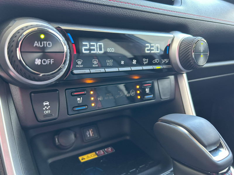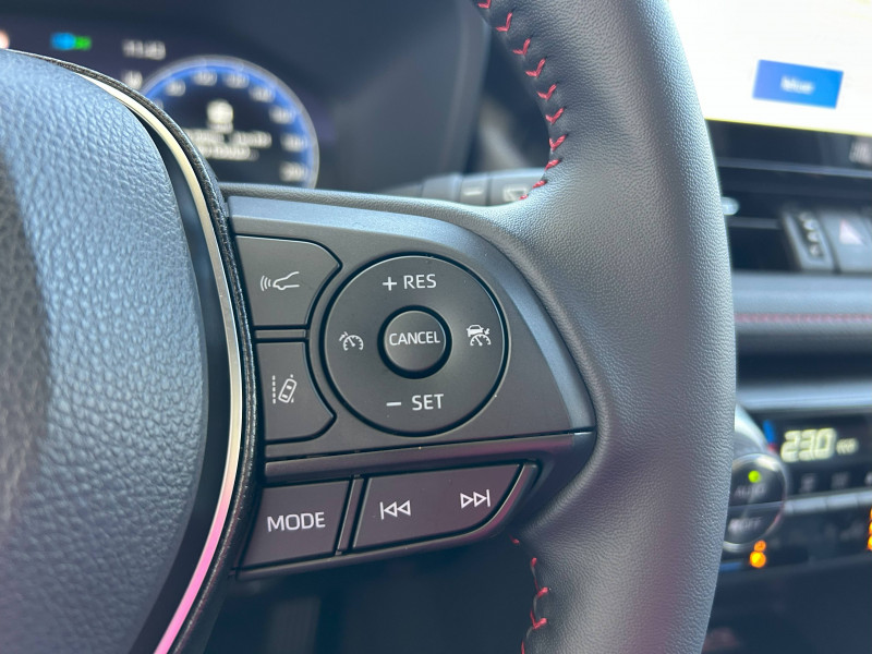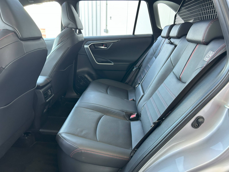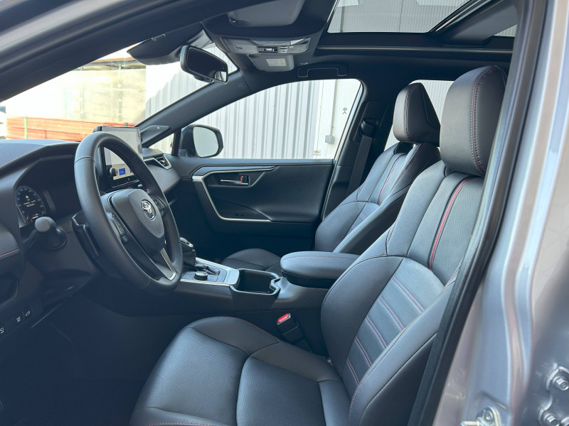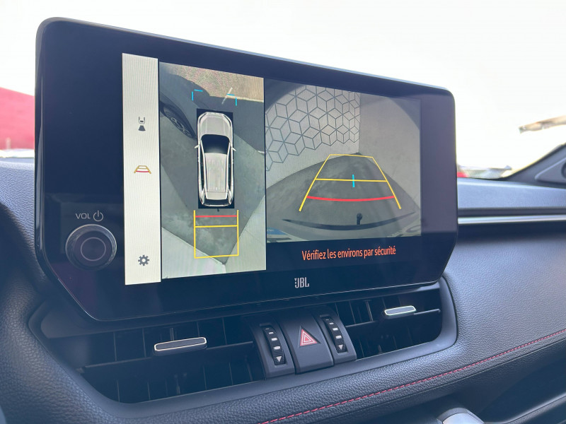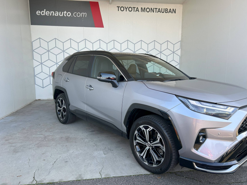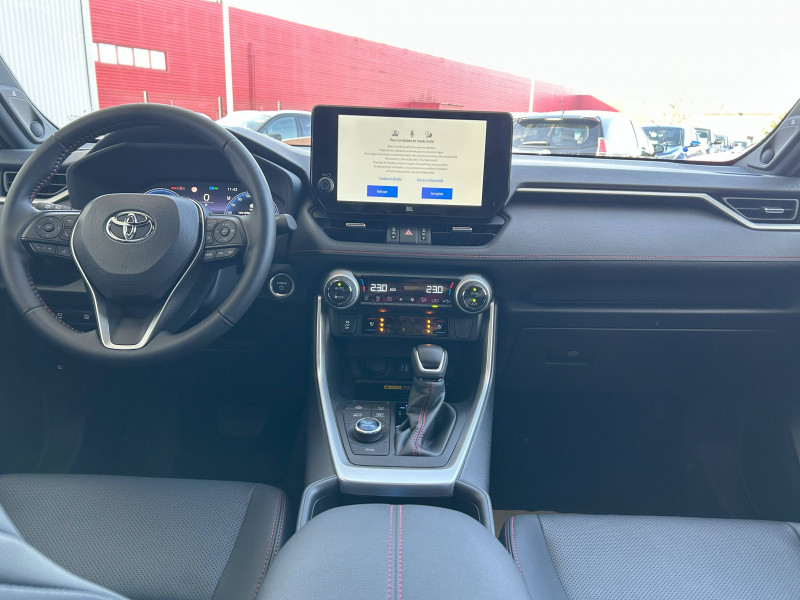 1 Port USB sur console centrale / 7 Airbags (1 protège-genoux conducteur, 2 fronteaux AV, 2 lateraux AV, 2 rideaux AV et AR) avec déconnexion de l'airbag passager / Accoudoir central AV avec compartiment de rangement / Antenne de toit type requin / Avertisseur de circulation AR avec freinage d'urgence automatique (PKSB) / Bandeau de planche de bord gainé de cuir noir / Barres de toit longitudinales / Câble de recharge Mode 2 (Type 2) - Domestique (3.3 kW) / Câble de recharge Mode 3 (Type 2) 6,6kW - 7,5m - avec prise Mennekes / Calandre AV noir laqué / Carrosserie bi-ton avec toit et piliers peints en Noir Attitude / Ciel de pavillon noir / Climatisation à régulation automatique bizone activable à distance / Coffre à ouverture et fermeture électriques / Commande de blocage de différentiel "Trail" / Commande de boîte de vitesses séquentielles / Commandes des vitres rétroéclairées / Compartiment de rangement dans la console centrale / Compteur numérique personnalisable 12,3" / Coques de rétroviseur extérieur noir laqué / Direction électrique motorisée (RP-EPS) / Double sortie d'echappement ovale / Eclairage d'accueil LED aux places AV / Ecrous antivol / Eléments de carrosserie de couleur Noir Laqué bas de caisse latéraux, bas de porte de coffre et haut de pare-chocs AR, pare-chocs AV et passages de roues / Essuie-glaces AV avec détecteur de pluie / Fermeture centralisée avec commande à distance et verrouillage des ouvrants en roulant / Filet coffre / Frein de stationnement électrique / Indicateur de perte de pression des pneus / Indicateur de température extérieure / Kit de sécurité / Optiques AV et AR à LED avec nouvelle signature lumineuse Premium / Ornement de calandre AV chromé / Ornements supérieurs de vitre chromés / Ouverture électrique de la trappe à carburant / Poignées de portes extérieures couleur carroserie / Ports USB (1 x console centrale) / Ports USB - Type C - 2 ports supplémentaires dans l'accoudoir / Ports USB - Type C (2 x passagers AR) / Prise 12V 1 x console centrale, 1 x coffre / Prise 220 V / 150 W dans le coffre / Programme "Toyota Experience" / Rétroviseur intérieur électrochromatique / Rétroviseurs extérieurs électriques, dégivrants et rabattables électriquement avec rappel de clignotants / Roue de secours de type galette dans le coffre / Sacoche de rangement pour le câble de recharge / Sélection mode de conduite : ECO, NORMAL, SPORT, EV MODE, EV AUTO, HYBRID MODE, CHARGE MODE / Sellerie cuir noir avec surpiqûres rouges / Services connectés de contrôle à distance MyToyota (inclus 4 ans) / Services connectés standards MyToyota (inclus 10 ans) / Seuils des portes aluminium / Siège conducteur à réglage lombaire électrique / Sièges AV réglables électriquement - 8 posotions (à mémoire côté conducteur) / Système audio JBL Premium avec 9HP / Système d'alarme avec fonction double verrouillage et détection de bris de glace / Système d'appel d'urgence automatique "E-Call" / Système de contrôle de motricité (TRC) et de stabilité du véhicule et de l'attelage (TSC) / Système de freinage antiblocage ABS+BA+EBD / Système d'ouverture/fermeture et démarrage sans clé "Smart Entry & Start" / Système multimédia Toyota Smart Connect: Écran couleur tactile 10,5 haute définition, Connectivité Bluetooth, USB et radio FM et DAB (digitale), Système de connectivité smartphone Apple CarPlay (sans fil), Android Auto (filaire avec un câble USB certifié) Services intelligents dont navigation connectée avec infotrafic en temps réel, mises à jour cartographiques, assistant vocal Hey Toyota et recherche de points d'intérêts / Tapis de sol / Toyota Safety Sense Système de sécurité précollision avec détection des véhicules, piétons et cyclistes, actif également dans les intersections. Alerte de franchissement de ligne avec aide au maintien dans la file, assistant de trajectoire et détecteur de fatigue, Lecture des panneaux de signalisation avec limiteur de vitesse, Gestion automatique des feux de route, Régulateur de vitesse adaptatif intelligent, Système d'aide aux manoeuvres d'évitement d'urgence avec détection des véhicules, piétons et cyclistes / Vitres électriques AV et AR à fonction anti-pincement avec descente et remontée à impulsion / Volant et levier de vitesse gainés cuir / Volant multifonction 3 branches, réglable manuellement en hauteur et profondeur