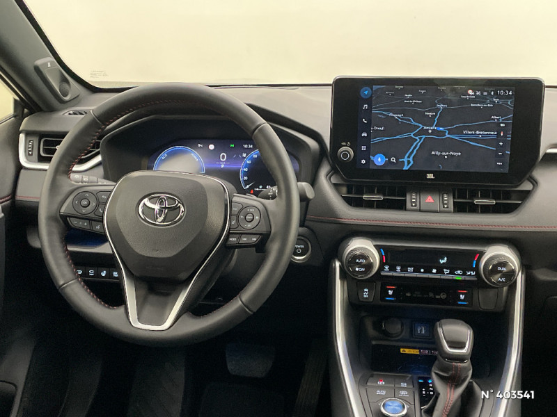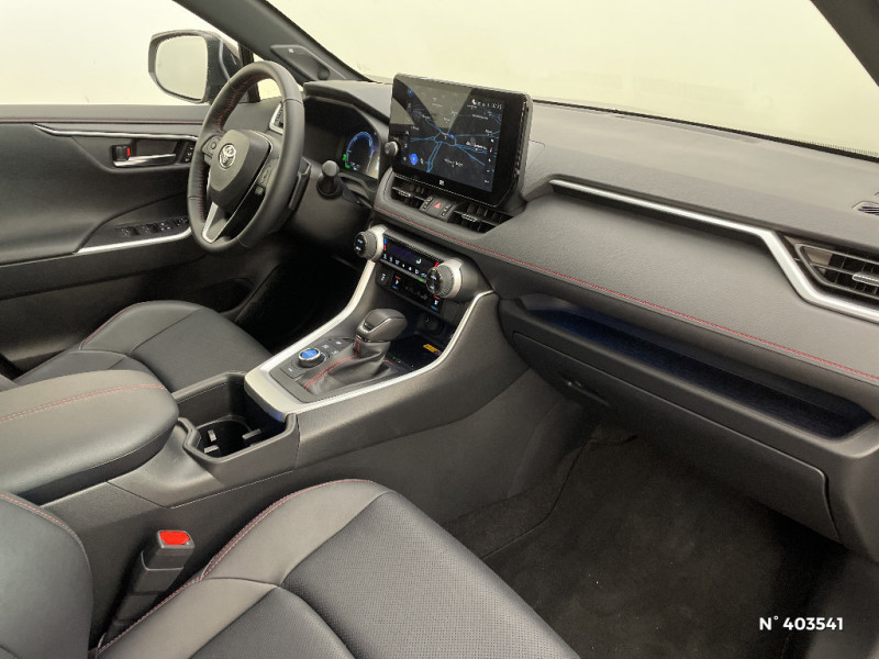 Eclairage d'accueil LED aux places AV / Ecrous antivol / Eléments de carrosserie de couleur Noir Laqué bas de caisse latéraux, bas de porte de coffre et haut de pare-chocs AR, pare-chocs AV et passages de roues / Essuie-glaces AV avec détecteur de pluie / Fermeture centralisée avec commande à distance et verrouillage des ouvrants en roulant / Programme "Toyota Experience" / Rétroviseur intérieur électrochromatique / Rétroviseurs extérieurs électriques, dégivrants et rabattables électriquement avec rappel de clignotants / Roue de secours de type galette dans le coffre / Sacoche de rangement pour le câble de recharge / Sélection mode de conduite : ECO, NORMAL, SPORT, EV MODE, EV AUTO, HYBRID MODE, CHARGE MODE / Sellerie cuir noir avec surpiqûres rouges / Services connectés de contrôle à distance MyToyota (inclus 4 ans) / Services connectés standards MyToyota (inclus 10 ans) / Seuils des portes aluminium / Siège conducteur à réglage lombaire électrique / Sièges AV réglables électriquement - 8 posotions (à mémoire côté conducteur) / Système audio JBL Premium avec 9HP / Système d'alarme avec fonction double verrouillage et détection de bris de glace / Système d'appel d'urgence automatique "E-Call" / Système de contrôle de motricité (TRC) et de stabilité du véhicule et de l¿attelage (TSC) / Système de freinage antiblocage ABS+BA+EBD / Système d'ouverture/fermeture et démarrage sans clé "Smart Entry & Start" / Système multimédia Toyota Smart Connect avec écran tactile 10,5" Navigation connectée avec infotrafic en temps réel, Smart Parking (aide à la recherche de stationnement), Reconnaissance vocale avancée "Hey Toyota" 4 ans de mises à jour cartographiques et services connectés inclus, Système de connectivité smartphone filaire Android Auto (connection avec un câble USB certifié), Système de connectivité smartphone sans fil Apple CarPlay / Système multimédia Toyota Smart Connect: Écran couleur tactile 10,5 haute définition, Connectivité Bluetooth, USB et radio FM et DAB (digitale), Système de connectivité smartphone Apple CarPlay (sans fil), Android Auto (filaire avec un câble USB certifié) Services intelligents dont navigation connectée avec infotrafic en temps réel, mises à jour cartographiques, assistant vocal Hey Toyota et recherche de points d¿intérêts / Tapis de sol / Toyota Safety Sense Système de sécurité précollision avec détection des véhicules, piétons et cyclistes, actif également dans les intersections. Alerte de franchissement de ligne avec aide au maintien dans la file, assistant de trajectoire et détecteur de fatigue, Lecture des panneaux de signalisation avec limiteur de vitesse, Gestion automatique des feux de route, Régulateur de vitesse adaptatif intelligent, Système d¿aide aux manoeuvres d¿évitement d¿urgence avec détection des véhicules, piétons et cyclistes / Vitres électriques AV et AR à fonction anti-pincement avec descente et remontée à impulsion / Volant et levier de vitesse gainés cuir / Volant multifonction 3 branches, réglable manuellement en hauteur et profondeur / 1 Port USB sur console centrale / 7 Airbags (1 protège-genoux conducteur, 2 fronteaux AV, 2 lateraux AV, 2 rideaux AV et AR) avec déconnexion de l¿airbag passager / Accoudoir central AV avec compartiment de rangement / Antenne de toit type requin / Avertisseur de circulation AR avec freinage d¿urgence automatique (PKSB) / Badge "PHEV" / Bandeau de planche de bord gainé de cuir noir / Barres de toit longitudinales / Câble de recharge Mode 2 (Type 2) - Domestique (3.3 kW) / Câble de recharge Mode 3 (Type 2) 6,6kW - 7,5m - avec prise Mennekes / Calandre AV noir laqué / Carrosserie bi-ton avec toit et piliers peints en Noir Attitude / Ciel de pavillon noir / Climatisation à régulation automatique bizone activable à distance / Coffre à ouverture et fermeture électriques / Commande de blocage de différentiel "Trail" / Commande de boîte de vitesses en cuir synthetique / Commande de boîte de vitesses séquentielles / Commandes des vitres rétroéclairées / Compartiment de rangement dans la console centrale / Compteur numérique personnalisable 12,3" / Coques de rétroviseur extérieur noir laqué / Direction électrique motorisée (RP-EPS) / Double sortie d'echappement ovale / Filet coffre / Frein de stationnement électrique / Indicateur de perte de pression des pneus / Indicateur de température extérieure / Kit de sécurité / Optiques AV et AR à LED avec nouvelle signature lumineuse Premium / Ornement de calandre AV chromé / Ornements supérieurs de vitre chromés / Ouverture électrique de la trappe à carburant / Poignées de portes extérieures couleur carroserie / Ports USB - Type C - 2 ports supplémentaires dans l¿accoudoir / Ports USB - Type C (2 x passagers AR) / Ports USB (1 x console centrale) / Ports USB (1 x console centrale, 2 x passagers AR, 2 x accoudoir) / Prise 12V 1 x console centrale, 1 x coffre / Prise 220 V / 150 W dans le coffre