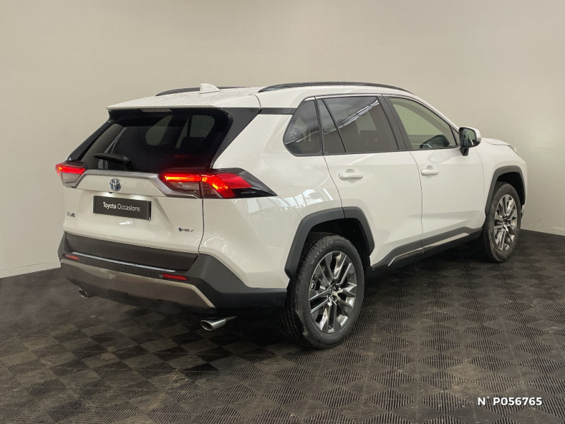 Coffre à ouverture et fermeture électriques / Commandes des vitres rétroéclairées / Compartiment d¿accoudoir central rétroéclairés / Compartiment de rangement sur la console centrale / Compteur numérique personnalisable 12,3" / Contre-portes avec revêtement Premium / Contreportes en cuir synthétique / Contrôle de traction (TCS) / Direction électrique motorisée (RP-EPS) / Double sortie d'echappement ovale / Eclairage d'accueil LED aux places AV / Ecrous antivol / Electrostabilisateur programmé (ESP) / Espace de rangement latéral dans le coffre / Essuie-glaces AV avec détecteur de pluie / Fermeture centralisée avec commande à distance et verrouillage automatique des ouvrants en roulant / Fermeture centralisée avec commande à distance et verrouillage des ouvrants en roulant / Filet coffre / Frein de stationnement électrique / Grille de calandre noire / Indicateur de perte de pression des pneus / Accoudoir central AV avec compartiment de rangement rétroéclairé / Antenne de toit type requin / Avertisseur de circulation AR avec freinage d¿urgence automatique / Avertisseur de circulation AR avec freinage d¿urgence automatique (PKSB) / Bandeau de planche de bord gainé de cuir noir, gris ou beige / Barres de toit longitudinales / Boîte automatique à variation continue / Ciel de pavillon gris / Clé sécurisée contre les attaques par relais / Siège conducteur à réglage lombaire électrique / Siège conducteur à réglages électriques avec mémorisation / Sièges AV réglables électrique a 8 positions / Système audio premium JBL 9 HP / Système AVAS (Acoustic Vehicle Alerting System) / Système d¿alarme avec fonction double verrouillage et détection de bris de glace / Système d'appel d'urgence automatique "E-Call" / Système de connectivité smartphone sans fil Apple CarPlay et fillaire Android Auto / Système de téléphonie Bluetooth, connectique auxiliaire/USB et radio digitale DAB / Système d'ouverture/fermeture des portes et démarrage sans clé "Smart Entry & Start" / Système intelligent de plancher plat Toyota Easy Flat System / Système multimédia Toyota Smart Connect avec écran couleur tactile haute définition, connectivité smartphone sans fil AppleCar Play et Android Auto filaire, Navigation connectée avec infotrafic en temps réel et Smart Parking (aide à la recherche de stationnement), Reconnaissance vocale avancée "Hey Toyota", 4 ans de mises à jour cartographiques et services connectés inclus / Systèmes de contrôle de motricité (TRC) et de stabilité (TSC) / Toyota Safety Sense Système de sécurité précollision avec détection des véhicules, piétons et cyclistes, actif également dans les intersections. Alerte de franchissement de ligne avec aide au maintien dans la file, assistant de trajectoire et détecteur de fatigue, Lecture des panneaux de signalisation avec limiteur de vitesse, Gestion automatique des feux de route, Régulateur de vitesse adaptatif intelligent / Toyota Safety Sense Système de sécurité précollision avec détection des véhicules, piétons et cyclistes, actif également dans les intersections. Alerte de franchissement de ligne avec aide au maintien dans la file, assistant de trajectoire et détecteur de fatigue, Lecture des panneaux de signalisation avec limiteur de vitesse, Gestion automatique des feux de route, Régulateur de vitesse adaptatif intelligent, Système d'aide aux manoeuvres d'évitement d'urgence avec détection des véhicules, piétons / Vitres électriques AV et AR à fonction anti-pincement avec descente et remontée à impulsion / Vitres électriques avec système antipincement, descente et remontée à impulsion / Volant et levier de vitesse gainés cuir avec insert type chrome / Volant multifonction 3 branches, réglable manuellement en hauteur et profondeur / 1 prise 12 V et 2 prises USB-C AR / 2 Prises USB-C à l'AV / 2 prises 12 V, 1 prise USB et une prise USB-C AV / 2ème Prise USB-C à l'AV (implique la suppression d¿une prise 12 V) / 7 Airbags (frontaux et latéraux pour conducteur et passager AV, rideaux AV et AR et protège-genoux conducteur, avec déconnexion de l´airbag passager) / 9 HP / Systèmes de freinage antiblocage (ABS) et d'amplification de freinage d'urgence (BA) + EBD / Tapis de sol en velours, AV et AR avec logo "RAV4 Hybrid" / Kit de sécurité / Optiques AV avec nouvelle signature lumineuse "Premium" / Ornementation sous optiques AR chromée / Ornements supérieurs de vitre chromés / Ouverture électrique de la trappe à carburant / Pack Design / Passage de roues noirs / Plancher de coffre réversible avec revers imperméable / Poignées de portes extérieures couleur carroserie / Poignées de portes intérieures satinées / Porte-gobelets rétroéclairés / Protections de soubassement AV et AR grises / Rétroviseur intérieur électrochromatique / Rétroviseurs extérieurs électriques, dégivrants, et rabattables automatiquement avec rappels de clignotants, couleur carrosserie / Revêtement de planche de bord Premium noir, gris ou beige / Roue de secours 18" de type galette dans le coffre / Sélection mode de conduite : ECO, NORMAL, SPORT, EV / Services connectés de contrôle à distance MyToyota (inclus 4 ans) / Services connectés standards MyToyota (inclus 10 ans) / Seuils des portes aluminium siglés RAV4