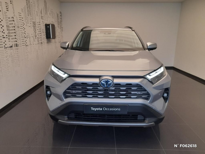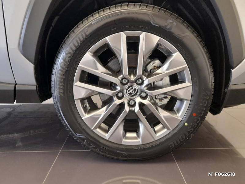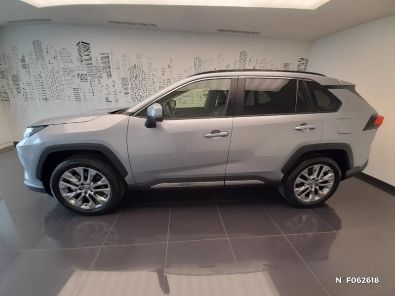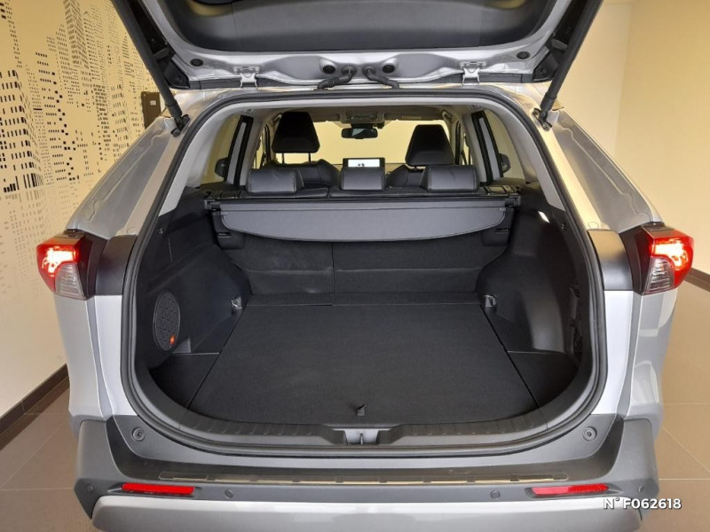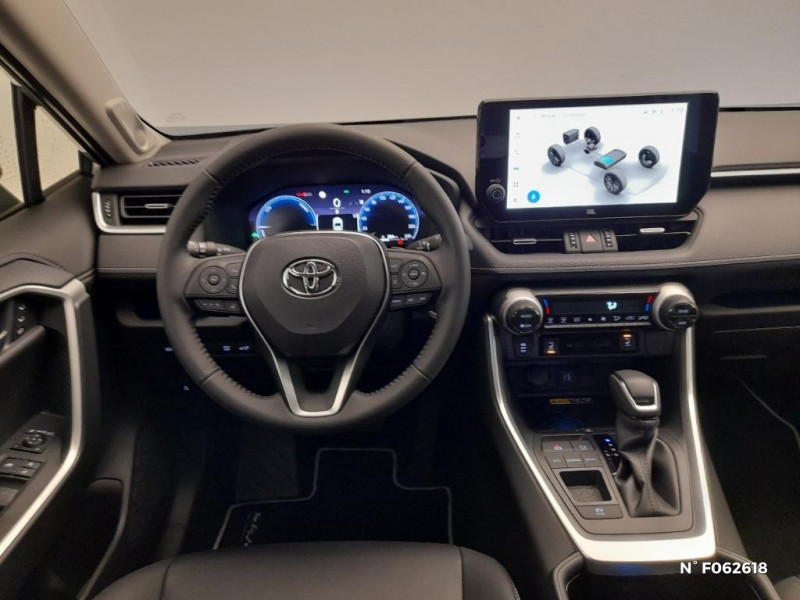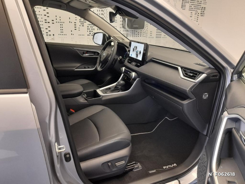 Fermeture centralisée avec commande à distance et verrouillage automatique des ouvrants en roulant / Fermeture centralisée avec commande à distance et verrouillage des ouvrants en roulant / Filet coffre / Frein de stationnement électrique / Grille de calandre noire / Indicateur de perte de pression des pneus / Kit de sécurité / 1 prise 12 V et 2 prises USB-C AR / 2 Prises USB-C à l'AV / 2 prises 12 V, 1 prise USB et une prise USB-C AV / 2ème Prise USB-C à l'AV (implique la suppression d¿une prise 12 V) / 7 Airbags (frontaux et latéraux pour conducteur et passager AV, rideaux AV et AR et protège-genoux conducteur, avec déconnexion de l´airbag passager) / 9 HP / Système de téléphonie Bluetooth, connectique auxiliaire/USB et radio digitale DAB / Système d'ouverture/fermeture des portes et démarrage sans clé "Smart Entry & Start" / Système intelligent de plancher plat Toyota Easy Flat System / Système de connectivité smartphone sans fil Apple CarPlay et fillaire Android Auto / Ornementation sous optiques AR chromée / Ornements supérieurs de vitre chromés / Ouverture électrique de la trappe à carburant / Pack Design / Passage de roues noirs / Système multimédia Toyota Smart Connect avec écran couleur tactile haute définition, connectivité smartphone sans fil AppleCar Play et Android Auto filaire, Navigation connectée avec infotrafic en temps réel et Smart Parking (aide à la recherche de stationnement), Reconnaissance vocale avancée "Hey Toyota", 4 ans de mises à jour cartographiques et services connectés inclus / Systèmes de contrôle de motricité (TRC) et de stabilité (TSC) / Systèmes de freinage antiblocage (ABS) et d'amplification de freinage d'urgence (BA) + EBD / Tapis de sol en velours, AV et AR avec logo "RAV4 Hybrid" / Toyota Safety Sense Système de sécurité précollision avec détection des véhicules, piétons et cyclistes, actif également dans les intersections. Alerte de franchissement de ligne avec aide au maintien dans la file, assistant de trajectoire et détecteur de fatigue, Lecture des panneaux de signalisation avec limiteur de vitesse, Gestion automatique des feux de route, Régulateur de vitesse adaptatif intelligent / Toyota Safety Sense Système de sécurité précollision avec détection des véhicules, piétons et cyclistes, actif également dans les intersections. Alerte de franchissement de ligne avec aide au maintien dans la file, assistant de trajectoire et détecteur de fatigue, Lecture des panneaux de signalisation avec limiteur de vitesse, Gestion automatique des feux de route, Régulateur de vitesse adaptatif intelligent, Système d'aide aux manoeuvres d'évitement d'urgence avec détection des véhicules, piétons / Vitres électriques AV et AR à fonction anti-pincement avec descente et remontée à impulsion / Vitres électriques avec système antipincement, descente et remontée à impulsion / Volant et levier de vitesse gainés cuir avec insert type chrome / Volant multifonction 3 branches, réglable manuellement en hauteur et profondeur / Système d'appel d'urgence automatique "E-Call" / Accoudoir central AV avec compartiment de rangement rétroéclairé / Antenne de toit type requin / Avertisseur de circulation AR avec freinage d¿urgence automatique / Avertisseur de circulation AR avec freinage d¿urgence automatique (PKSB) / Bandeau de planche de bord gainé de cuir noir, gris ou beige / Barres de toit longitudinales / Boîte automatique à variation continue / Ciel de pavillon gris / Clé sécurisée contre les attaques par relais / Coffre à ouverture et fermeture électriques / Commandes des vitres rétroéclairées / Compartiment d¿accoudoir central rétroéclairés / Compartiment de rangement sur la console centrale / Compteur numérique personnalisable 12,3" / Contre-portes avec revêtement Premium / Contreportes en cuir synthétique / Contrôle de traction (TCS) / Direction électrique motorisée (RP-EPS) / Double sortie d'echappement ovale / Eclairage d'accueil LED aux places AV / Ecrous antivol / Plancher de coffre réversible avec revers imperméable / Poignées de portes extérieures couleur carroserie / Poignées de portes intérieures satinées / Porte-gobelets rétroéclairés / Protections de soubassement AV et AR grises / Rétroviseur intérieur électrochromatique / Rétroviseurs extérieurs électriques, dégivrants, et rabattables automatiquement avec rappels de clignotants, couleur carrosserie / Revêtement de planche de bord Premium noir, gris ou beige / Roue de secours 18" de type galette dans le coffre / Sélection mode de conduite : ECO, NORMAL, SPORT, EV / Services connectés de contrôle à distance MyToyota (inclus 4 ans) / Services connectés standards MyToyota (inclus 10 ans) / Seuils des portes aluminium siglés RAV4 / Siège conducteur à réglage lombaire électrique / Siège conducteur à réglages électriques avec mémorisation / Sièges AV réglables électrique a 8 positions / Système audio premium JBL 9 HP / Système AVAS (Acoustic Vehicle Alerting System) / Système d¿alarme avec fonction double verrouillage et détection de bris de glace / Optiques AV avec nouvelle signature lumineuse "Premium" / Electrostabilisateur programmé (ESP) / Espace de rangement latéral dans le coffre / Essuie-glaces AV avec détecteur de pluie