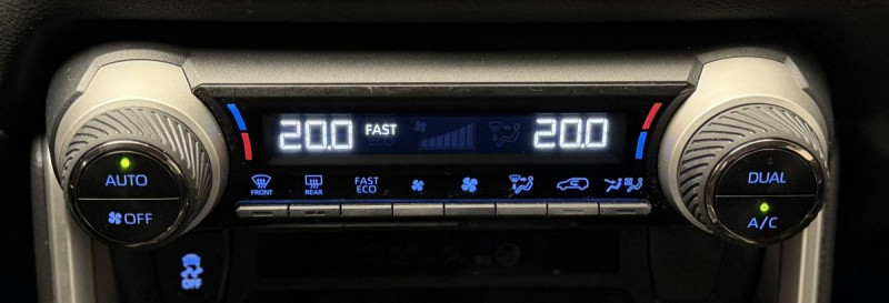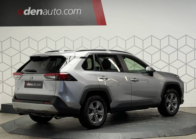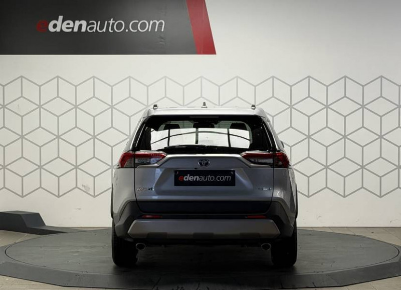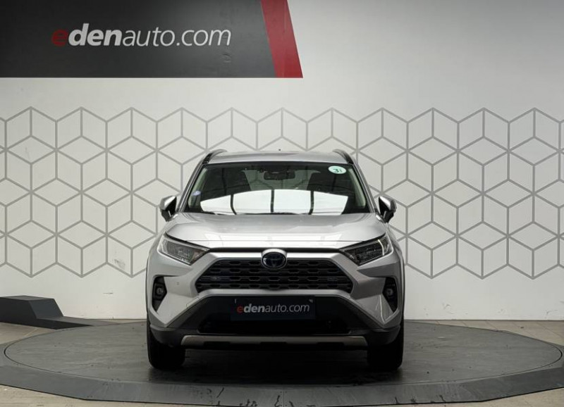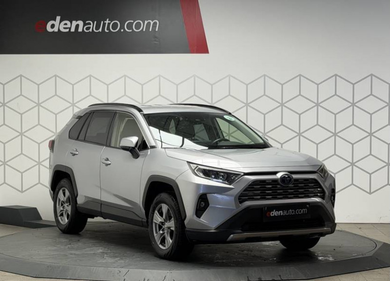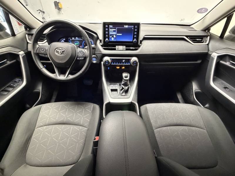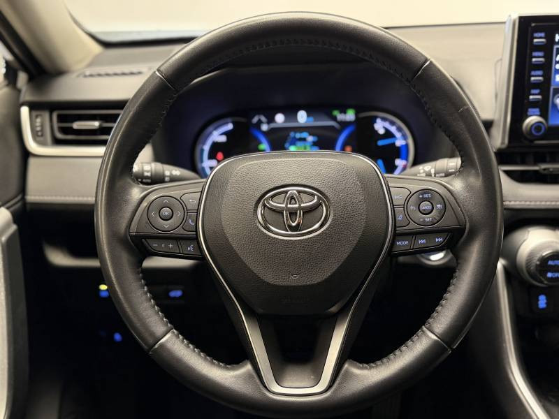 6 HP / Accoudoir central AV avec compartiment de rangement / Alerte d'oubli de ceinture et de lumière / Antenne de toit aileron de requin / Appuis-tête AV réglables en hauteur et en inclinaison réglables / Avertisseurs d'angles morts et de circulation AR / Badge AWD-i sur hayon / Cache-bagages / Ciel de pavillon gris / Coffre à ouverture et fermeture électriques / Combiné d'instrumentation avec écran couleur TFT 8" / Contreportes en cuir synthétique / Crochets porte-manteaux x2 / Double sortie d'echappement ovale / Ecrous antivol / Essuie-glaces adaptatifs avec détecteur de pluie / Fermeture centralisée avec commande à distance et verrouillage des ouvrants en roulant / Filet coffre / Frein de stationnement électrique / Grille de calandre couleur acier / Indicateur de sous-gonflage des pneus / Kit de sécurité / Optiques AV et AR à LED / Ornements latéraux chromés / Peinture métallisée bi-ton ou nacrée bi-ton / Plancher de coffre réversible avec revers imperméable / Poignées de portes et rétroviseurs extérieurs couleur carrosserie / Poignées de portes extérieures couleur carroserie avec insert chromé / Protection de seuil de coffre en acier inoxydable / Protections de soubassement avant et arrière grises / Rétroviseur intérieur électrochromatique / Rétroviseurs extérieurs électriques, dégivrants et rabattables électriquement avec rappel de clignotants / Roue de secours 17" de type galette dans le coffre / Sélection mode de conduite : ECO, NORMAL, SPORT / Seuils des portes aluminium siglés RAV4 / Smart Entry & Start / Système d'appel d'urgence automatique "E-Call" / Système d'avertissement acoustique d'approche du véhicule (AVAS) / Système de freinage antiblocage (ABS), BA et EBD / Système de téléphone Bluethooth / Système d'ouverture/fermeture des portes et démarrage sans clé "Smart Entry & Start" / Système intelligent de plancher plat Toyota Easy Flat System / Systèmes de contrôle de motricité (TRC) et de stabilité du véhicule / Tapis de sol RAV4 Hybrid en velours, AV et AR / Toyota Safety Sense Système de sécurité précollision avec détection des piétons, Alerte de franchissement de ligne et détecteur de fatigue, gestion automatique des feux de route, lecture des panneaux de signalisation, régulateur de vitesse adaptatif. / Vitres électriques avec système anti-pincement / Volant et levier de vitesses gainés cuir / Volant multifonction 3 branches, réglable manuellement en hauteur et profondeur
