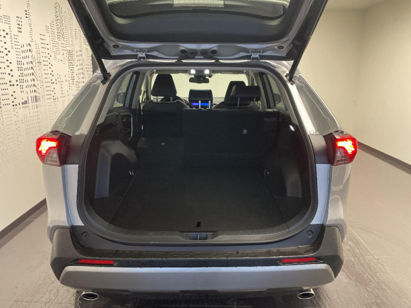 Eclairage d'accueil LED aux places AV / Ecrous antivol / Espace de rangement latéral dans le coffre / Essuie-glaces AV avec détecteur de pluie / Fermeture centralisée avec commande à distance et verrouillage des ouvrants en roulant / Accoudoir central AV avec compartiment de rangement / Antenne de toit type requin / Bandeau de planche de bord gainé de cuir noir / Barres de toit longitudinales / Filet coffre / Frein de stationnement électrique / Grille de calandre couleur acier / Indicateur de perte de pression des pneus / Kit de sécurité / Optiques AV et AR à LED sauft clignotants et feux de recul / Ornementation sous optiques AR chromée / Ornements supérieurs de vitre chromés / Ouverture électrique de la trappe à carburant / Passage de roues noirs / Plancher de coffre réversible avec revers imperméable / Poignées de portes extérieures couleur carroserie / Poignées de portes intérieures satinées / Programme "Beyond Zero Academy" / Rétroviseur intérieur électrochromatique / Rétroviseurs extérieurs électriques, dégivrants, et rabattables automatiquement avec rappels de clignotants, couleur carrosserie / Roue de secours 17" de type galette dans le coffre / Sélection mode de conduite : ECO, NORMAL, SPORT, EV / Sellerie en tissu sport noir / Système AVAS (Acoustic Vehicle Alerting System) / Système d¿alarme avec fonction double verrouillage et détection de bris de glace / Système d'appel d'urgence automatique "E-Call" / Système de connectivité smartphone sans fil Apple CarPlay et fillaire Android Auto / Système de téléphonie Bluetooth, connectique auxiliaire/USB et radio digitale DAB / Système d'ouverture/fermeture des portes et démarrage sans clé "Smart Entry & Start" / Système intelligent de plancher plat Toyota Easy Flat System / Système multimédia Toyota Smart Connect avec écran couleur tactile haute définition, connectivité smartphone sans fil AppleCar Play et Android Auto filaire, Navigation connectée avec infotrafic en temps réel et Smart Parking (aide à la recherche de stationnement), Reconnaissance vocale avancée "Hey Toyota", 4 ans de mises à jour cartographiques et services connectés inclus / Systèmes de contrôle de motricité (TRC) et de stabilité (TSC) / Systèmes de freinage antiblocage (ABS) et d'amplification de freinage d'urgence (BA) + EBD / Tapis de sol en velours, AV et AR avec logo "RAV4 Hybrid" / Toyota Safety Sense Système de sécurité précollision avec détection des véhicules, piétons et cyclistes, actif également dans les intersections. Alerte de franchissement de ligne avec aide au maintien dans la file, assistant de trajectoire et détecteur de fatigue, Lecture des panneaux de signalisation avec limiteur de vitesse, Gestion automatique des feux de route, Régulateur de vitesse adaptatif intelligent / Vitres électriques AV et AR à fonction anti-pincement avec descente et remontée à impulsion / Volant et levier de vitesse gainés cuir avec insert type chrome / Volant multifonction 3 branches, réglable manuellement en hauteur et profondeur / 1 prise 12 V et 2 prises USB-C AR / 2 prises 12 V, 1 prise USB et une prise USB-C AV / 6 HP / 7 Airbags (frontaux et latéraux pour conducteur et passager AV, rideaux AV et AR et protège-genoux conducteur, avec déconnexion de l´airbag passager) / Ciel de pavillon gris / Clé sécurisée contre les attaques par relais / Coffre à ouverture et fermeture électriques / Compteur numérique personnalisable 12,3" / Contreportes en cuir synthétique / Direction électrique motorisée (RP-EPS) / Double sortie d'echappement ovale