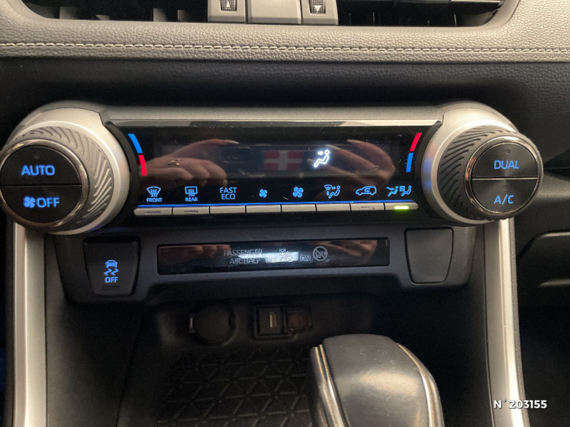 Protection de seuil de coffre en acier inoxydable / Protections de soubassement avant et arrière grises / "ATTENTION" - Equipements non communiqués / Avertisseurs d'angles morts et de circulation AR / Badge AWD-i sur hayon / Barres de toit longitudinales / Cache-bagages / Ciel de pavillon gris / Indicateur de sous-gonflage des pneus / Kit de sécurité / Optiques AV et AR à LED / Ornements latéraux chromés / Rétroviseur intérieur électrochromatique / Rétroviseurs extérieurs électriques, dégivrants et rabattables électriquement avec rappel de clignotants / Roue de secours 17" de type galette dans le coffre / Sélection mode de conduite : ECO, NORMAL, SPORT / Seuils des portes aluminium siglés RAV4 / Smart Entry & Start / Système audio Toyota " Touch " avec écran tactile 8'' et 6 HP / Système d'appel d'urgence automatique "E-Call" / Système d'avertissement acoustique d'approche du véhicule (AVAS) / Système de freinage antiblocage (ABS), BA et EBD / Système de téléphone Bluethooth / Système d'ouverture/fermeture des portes et démarrage sans clé "Smart Entry & Start" / Système intelligent de plancher plat Toyota Easy Flat System / Système "Toyota Touch" / Systèmes de contrôle de motricité (TRC) et de stabilité du véhicule / Tapis de sol RAV4 Hybrid en velours, AV et AR / Toit ouvrant panoramique à ouverture électrique / Toyota Safety Sense Système de sécurité précollision avec détection des piétons, Alerte de franchissement de ligne et détecteur de fatigue, gestion automatique des feux de route, lecture des panneaux de signalisation, régulateur de vitesse adaptatif. / Toyota Touch & Go : système de navigation à écran tactile 8" avec reconnaissance vocale, info trafic et cartographie européenne 3D / Vitres électriques avec système anti-pincement / Volant et levier de vitesses gainés cuir / Volant multifonction 3 branches, réglable manuellement en hauteur et profondeur / 6 HP / Grille de calandre couleur acier / Accoudoir central AV avec compartiment de rangement / Alerte d¿oubli de ceinture et de lumière / Antenne de toit aileron de requin / Appuis-tête AV réglables en hauteur et en inclinaison réglables / "ATTENTION" - Equipements incomplets / Coffre à ouverture et fermeture électriques / Combiné d'instrumentation avec écran couleur TFT 8" / Contreportes en cuir synthétique / Crochets porte-manteaux x2 / Double sortie d'echappement ovale / Ecrous antivol / Essuie-glaces adaptatifs avec détecteur de pluie / Fermeture centralisée avec commande à distance et verrouillage des ouvrants en roulant / Filet coffre / Frein de stationnement électrique / Frein de statlionnement électrique / Peinture métallisée bi-ton ou nacrée bi-ton / Plancher de coffre réversible avec revers imperméable / Poignées de portes et rétroviseurs extérieurs couleur carrosserie / Poignées de portes extérieures couleur carroserie avec insert chromé