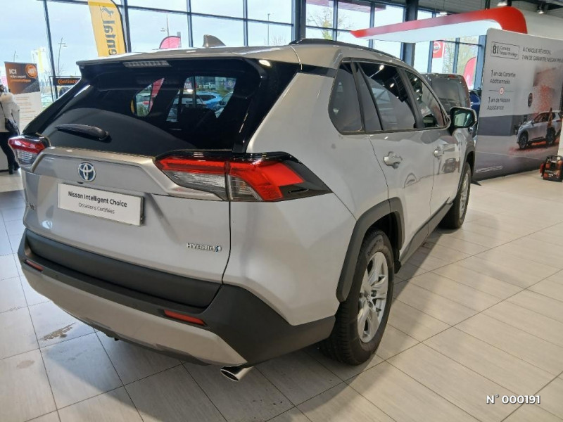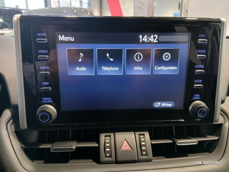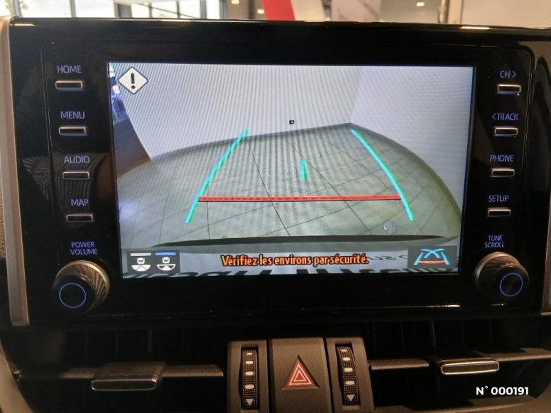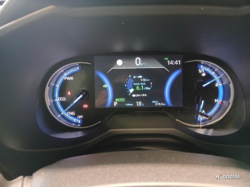 Volant et levier de vitesse gainés cuir / Vitres électriques AV et AR à fonction anti-pincement avec descente et remontée à impulsion / 6 HP / 7 Airbags (frontaux et latéraux pour conducteur et passager AV, rideaux AV et AR et protège-genoux conducteur) / Plancher de coffre réversible avec revers imperméable / Poignées de portes extérieures couleur carroserie / Rétroviseurs extérieurs couleur carrosserie / Rétroviseurs extérieurs électriques, dégivrants et rabattables électriquement avec rappel de clignotants / Roue de secours de type galette dans le coffre / Sélection mode de conduite : ECO, NORMAL, SPORT, EV / Sellerie en tissu sport noir / Système anti-démarrage avec fonction double verrouillage / Système audio Toyota Touch avec écran couleur tactile 8" multifonction, connectique auxiliaire/USB et radio digitale (DAB) / Système audio Toyota Touch avec écran couleur tactile 8" multifonction, lecteur CD, système de téléphonie Bluetooth, connectique auxiliaire/USB, 6 haut-parleurs et antenne DAB. / Système AVAS (Acoustic Vehicle Alerting System) / Système d'appel d'urgence automatique "E-Call" / Système de connectivité smartphone Apple CarPlay / Android Auto / Accoudoir central AV avec compartiment de rangement / Accoudoir central AV avec compartiment de rangement rétroéclairé / Alerte d¿oubli de ceinture et de lumière / Antenne de toit type requin / Appuis-tête AV réglables en hauteur et en inclinaison réglables / "ATTENTION" - Equipements non communiqués / Cache-bagages / Ciel de pavillon gris / Clé sécurisée contre les attaques par relais / Combiné d'instrumentation avec écran couleur TFT multifonction 4" / Crochets porte-manteaux x2 / Double sortie d'echappement ronde / Ecrous antivol / Espace de rangement latéral dans le coffre / Fermeture centralisée avec commande à distance et verrouillage des ouvrants en roulant / Feux clignotants à halogène / Feux stop à halogène / Filet coffre / Frein de stationnement électrique / Grille de calandre noir non-peinte / Indicateur de perte de pression des pneus / Kit de sécurité / Optiques AV et AR à LED / Peinture Blanc Pur / Système de téléphone Bluetooth / Système intelligent de plancher plat Toyota Easy Flat System / Systèmes de contrôle de motricité (TRC) et de stabilité (TSC) / Systèmes de freinage antiblocage (ABS) et d'amplification de freinage d'urgence (BA) + EBD / Tapis de sol RAV4 Hybrid en velours, AV et AR / Toyota Safety Sense Système de sécurité précollision avec détection des piétons, Alerte de franchissement de ligne et détecteur de fatigue, gestion automatique des feux de route, lecture des panneaux de signalisation, régulateur de vitesse adaptatif. / Volant multifonction 3 branches, réglable manuellement en hauteur et profondeur