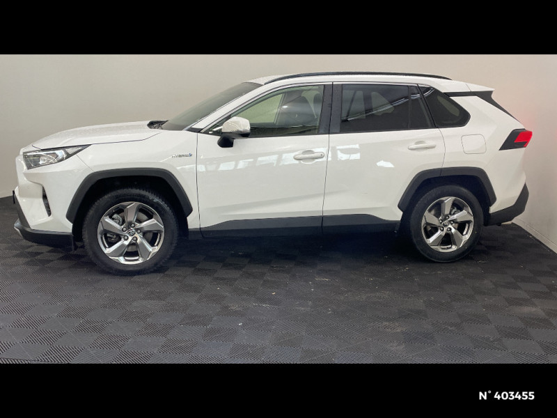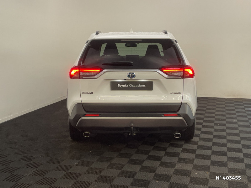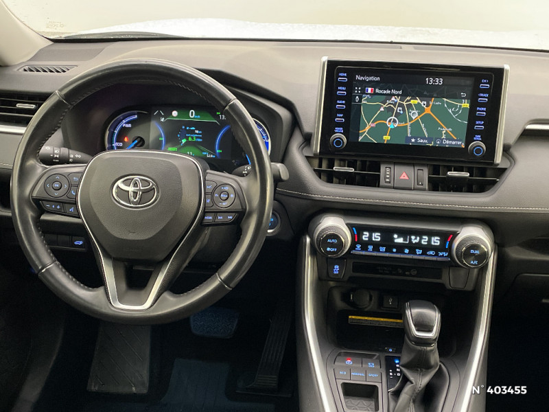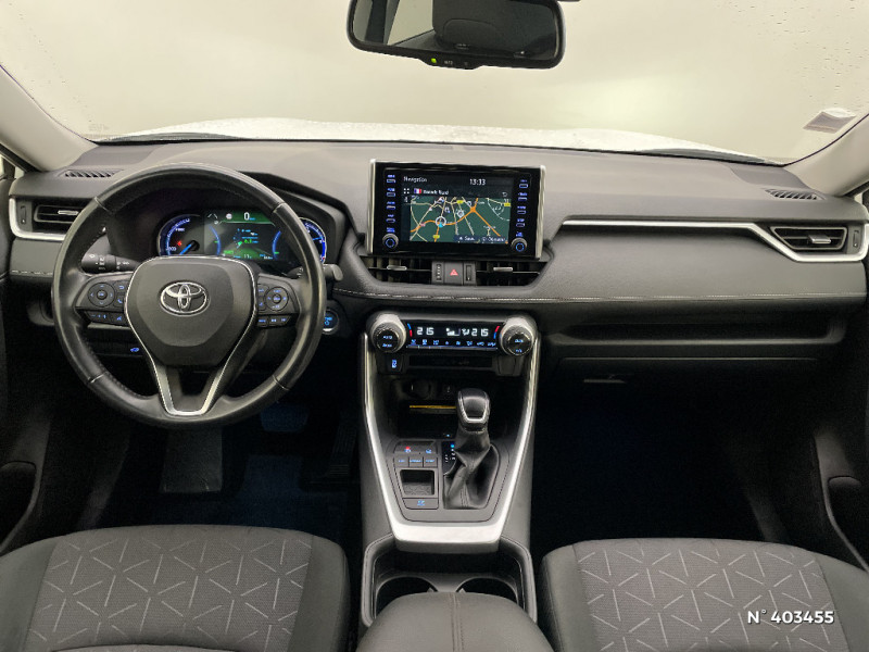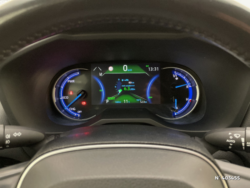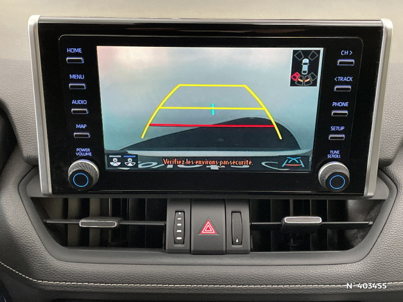 Système "Toyota Touch" / Systèmes de contrôle de motricité (TRC) et de stabilité du véhicule / Tapis de sol RAV4 Hybrid en velours, AV et AR / Toit ouvrant panoramique à ouverture électrique / Toyota Safety Sense Système de sécurité précollision avec détection des piétons, Alerte de franchissement de ligne et détecteur de fatigue, gestion automatique des feux de route, lecture des panneaux de signalisation, régulateur de vitesse adaptatif. / Toyota Touch & Go : système de navigation à écran tactile 8" avec reconnaissance vocale, info trafic et cartographie européenne 3D / Vitres électriques avec système anti-pincement / Volant et levier de vitesses gainés cuir / Volant multifonction 3 branches, réglable manuellement en hauteur et profondeur / 6 HP / Antenne de toit aileron de requin / Appuis-tête AV réglables en hauteur et en inclinaison réglables / "ATTENTION" - Equipements incomplets / "ATTENTION" - Equipements non communiqués / Avertisseurs d'angles morts et de circulation AR / Badge AWD-i sur hayon / Cache-bagages / Ciel de pavillon gris / Coffre à ouverture et fermeture électriques / Combiné d'instrumentation avec écran couleur TFT 8" / Contreportes en cuir synthétique / Accoudoir central AV avec compartiment de rangement / Crochets porte-manteaux x2 / Double sortie d'echappement ovale / Alerte d¿oubli de ceinture et de lumière / Ecrous antivol / Essuie-glaces adaptatifs avec détecteur de pluie / Fermeture centralisée avec commande à distance et verrouillage des ouvrants en roulant / Filet coffre / Frein de stationnement électrique / Frein de statlionnement électrique / Grille de calandre couleur acier / Indicateur de sous-gonflage des pneus / Kit de sécurité / Optiques AV et AR à LED / Ornements latéraux chromés / Peinture métallisée bi-ton ou nacrée bi-ton / Plancher de coffre réversible avec revers imperméable / Poignées de portes et rétroviseurs extérieurs couleur carrosserie / Poignées de portes extérieures couleur carroserie avec insert chromé / Protection de seuil de coffre en acier inoxydable / Protections de soubassement avant et arrière grises / Rétroviseur intérieur électrochromatique / Rétroviseurs extérieurs électriques, dégivrants et rabattables électriquement avec rappel de clignotants / Roue de secours 17" de type galette dans le coffre / Sélection mode de conduite : ECO, NORMAL, SPORT / Seuils des portes aluminium siglés RAV4 / Smart Entry & Start / Système audio Toyota " Touch " avec écran tactile 8'' et 6 HP / Système d'appel d'urgence automatique "E-Call" / Système d'avertissement acoustique d'approche du véhicule (AVAS) / Système de freinage antiblocage (ABS), BA et EBD / Système de téléphone Bluethooth / Système d'ouverture/fermeture des portes et démarrage sans clé "Smart Entry & Start" / Système intelligent de plancher plat Toyota Easy Flat System