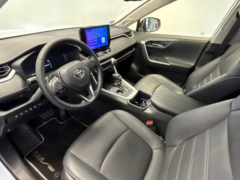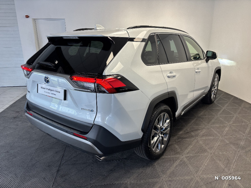 Ciel de pavillon gris / Clé sécurisée contre les attaques par relais / Coffre à ouverture et fermeture électriques / Commandes des vitres rétroéclairées / Compartiment d¿accoudoir central rétroéclairés / Compartiment de rangement sur la console centrale / Compteur numérique personnalisable 12,3" / Contre-portes avec revêtement Premium / Contreportes en cuir synthétique / Contrôle de traction (TCS) / Direction électrique motorisée (RP-EPS) / Double sortie d'echappement ovale / Eclairage d'accueil LED aux places AV / Ecrous antivol / Electrostabilisateur programmé (ESP) / Espace de rangement latéral dans le coffre / Essuie-glaces AV avec détecteur de pluie / Fermeture centralisée avec commande à distance et verrouillage automatique des ouvrants en roulant / Fermeture centralisée avec commande à distance et verrouillage des ouvrants en roulant / Filet coffre / Frein de stationnement électrique / Grille de calandre noire / Indicateur de perte de pression des pneus / Kit de sécurité / Optiques AV avec nouvelle signature lumineuse "Premium" / Ornementation sous optiques AR chromée / Ornements supérieurs de vitre chromés / Ouverture électrique de la trappe à carburant / Pack Design / Passage de roues noirs / Plancher de coffre réversible avec revers imperméable / Poignées de portes extérieures couleur carroserie / Poignées de portes intérieures satinées / Porte-gobelets rétroéclairés / Protections de soubassement AV et AR grises / Rétroviseur intérieur électrochromatique / Rétroviseurs extérieurs électriques, dégivrants, et rabattables automatiquement avec rappels de clignotants, couleur carrosserie / Revêtement de planche de bord Premium noir, gris ou beige / Roue de secours 18" de type galette dans le coffre / Sélection mode de conduite : ECO, NORMAL, SPORT, EV / Services connectés de contrôle à distance MyToyota (inclus 4 ans) / Services connectés standards MyToyota (inclus 10 ans) / Seuils des portes aluminium siglés RAV4 / Siège conducteur à réglage lombaire électrique / Siège conducteur à réglages électriques avec mémorisation / Sièges AV réglables électrique a 8 positions / Système audio premium JBL 9 HP / Système AVAS (Acoustic Vehicle Alerting System) / Système d¿alarme avec fonction double verrouillage et détection de bris de glace / Système d'appel d'urgence automatique "E-Call" / Système de connectivité smartphone sans fil Apple CarPlay et fillaire Android Auto / Système de téléphonie Bluetooth, connectique auxiliaire/USB et radio digitale DAB / Système d'ouverture/fermeture des portes et démarrage sans clé "Smart Entry & Start" / Système intelligent de plancher plat Toyota Easy Flat System / Système multimédia Toyota Smart Connect avec écran couleur tactile haute définition, connectivité smartphone sans fil AppleCar Play et Android Auto filaire, Navigation connectée avec infotrafic en temps réel et Smart Parking (aide à la recherche de stationnement), Reconnaissance vocale avancée "Hey Toyota", 4 ans de mises à jour cartographiques et services connectés inclus / Systèmes de contrôle de motricité (TRC) et de stabilité (TSC) / Systèmes de freinage antiblocage (ABS) et d'amplification de freinage d'urgence (BA) + EBD / Tapis de sol en velours, AV et AR avec logo "RAV4 Hybrid" / Toyota Safety Sense Système de sécurité précollision avec détection des véhicules, piétons et cyclistes, actif également dans les intersections. Alerte de franchissement de ligne avec aide au maintien dans la file, assistant de trajectoire et détecteur de fatigue, Lecture des panneaux de signalisation avec limiteur de vitesse, Gestion automatique des feux de route, Régulateur de vitesse adaptatif intelligent / Toyota Safety Sense Système de sécurité précollision avec détection des véhicules, piétons et cyclistes, actif également dans les intersections. Alerte de franchissement de ligne avec aide au maintien dans la file, assistant de trajectoire et détecteur de fatigue, Lecture des panneaux de signalisation avec limiteur de vitesse, Gestion automatique des feux de route, Régulateur de vitesse adaptatif intelligent, Système d'aide aux manoeuvres d'évitement d'urgence avec détection des véhicules, piétons / Vitres électriques AV et AR à fonction anti-pincement avec descente et remontée à impulsion / Vitres électriques avec système antipincement, descente et remontée à impulsion / Volant et levier de vitesse gainés cuir avec insert type chrome / Volant multifonction 3 branches, réglable manuellement en hauteur et profondeur / 1 prise 12 V et 2 prises USB-C AR / 2 Prises USB-C à l'AV / 2 prises 12 V, 1 prise USB et une prise USB-C AV / 2ème Prise USB-C à l'AV (implique la suppression d¿une prise 12 V) / 7 Airbags (frontaux et latéraux pour conducteur et passager AV, rideaux AV et AR et protège-genoux conducteur, avec déconnexion de l´airbag passager) / 9 HP / Accoudoir central AV avec compartiment de rangement rétroéclairé / Antenne de toit type requin / Avertisseur de circulation AR avec freinage d¿urgence automatique / Avertisseur de circulation AR avec freinage d¿urgence automatique (PKSB) / Bandeau de planche de bord gainé de cuir noir, gris ou beige / Barres de toit longitudinales / Boîte automatique à variation continue