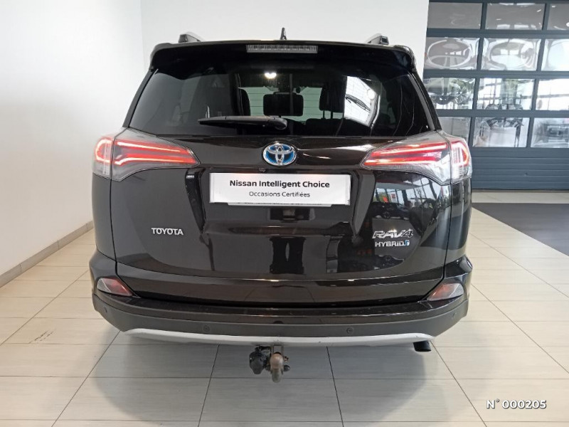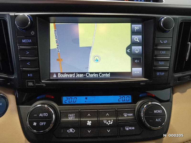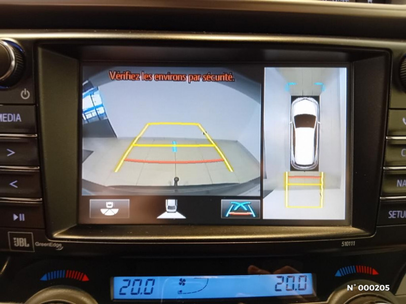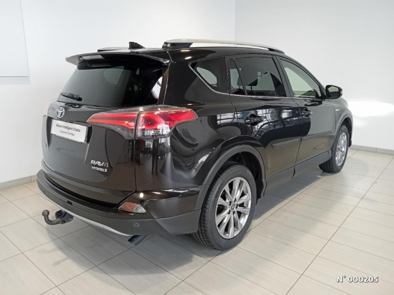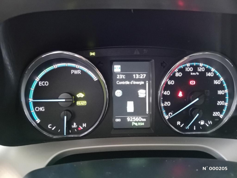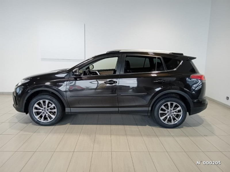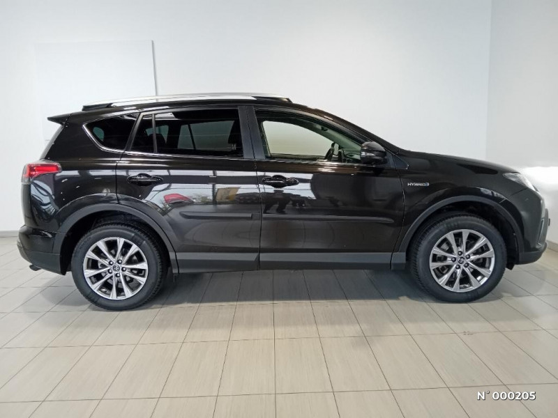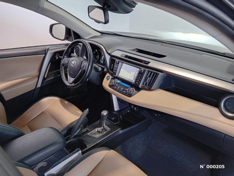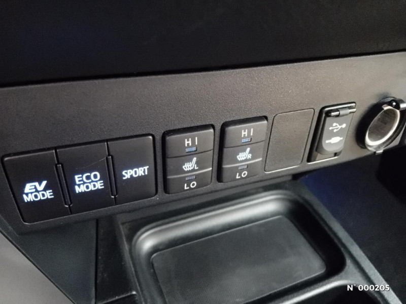 Roue de secours 17" de type galette dans le coffre / Sélection mode de conduite : ECO, NORMAL, SPORT / Sellerie cuir (Noir, Beige ou Grise) / Seuils des portes aluminium siglés RAV4 / Accoudoir central AV avec compartiment de rangement / Alerte d¿oubli de ceinture et de lumière / Antenne de toit type requin / Appuis-tête AV réglables en hauteur et en inclinaison réglables / "ATTENTION" - Equipements incomplets / Avertisseurs d'angles morts et de circulation AR avec freinage d'urgence auto / Badge AWD-i sur hayon / Barres de toit longitudinales / Cache-bagages / Ciel de pavillon gris / Système d'ouverture/fermeture des portes et démarrage sans clé "Smart Entry & Start" / Système intelligent de plancher plat Toyota Easy Flat System / Système "Toyota Touch" / Système Toyota Touch, caméra 360, audio JBL / Systèmes de contrôle de stabilité (VSC) et de motricité (TRC) / Tapis de sol RAV4 Hybrid en velours, AV et AR / Toyota Safety Sense Système de sécurité précollision avec détection des piétons, Alerte de franchissement de ligne et détecteur de fatigue, gestion automatique des feux de route, lecture des panneaux de signalisation, régulateur de vitesse adaptatif. / Toyota Safety Sense 2 / Toyota Touch & Go : système de navigation à écran tactile 8" avec info trafic et cartographie européenne / Vitres AV électriques à fonction antipincement descente et remontée à impulsion côté conducteur / Volant et levier de vitesses gainés cuir / Volant multifonction 3 branches, réglable manuellement en hauteur et profondeur / 9 HP / Fermeture centralisée avec commande à distance et verrouillage des ouvrants en roulant / Filet coffre / Frein de statlionnement électrique / Grille de calandre couleur acier / Indicateur de sous-gonflage des pneus / Kit de sécurité / Optiques AV et AR à LED / Optiques AV/AR full-LED avec signature lumineuse Premium / Ornements latéraux chromés / Pack Design / Coffre à ouverture et fermeture électriques / Combiné d'instrumentation avec écran couleur TFT 8" / Contreportes en cuir synthétique / Crochets porte-manteaux x2 / Double sortie d'echappement ovale / Ecrous antivol / Siège conducteur à réglage lombaire électrique / Siège conducteur à réglages électriques avec mémorisation / Sièges latéraux arrière chauffants / Smart Entry & Start / Système audio JBL Premium avec 9HP / Système audio Toyota " Touch " avec écran tactile 8'' et 6 HP / Système d'appel d'urgence automatique "E-Call" / Système d'avertissement acoustique d'approche du véhicule (AVAS) / Système de connectivité smartphone Apple CarPlay / Android Auto / Système de freinage antiblocage (ABS), BA et EBD / Système de téléphone Bluetooth / Peinture bi-ton nacré / Plancher de coffre réversible avec revers imperméable / Poignées de portes extérieures couleur carroserie avec insert chromé / Protection de seuil de coffre en acier inoxydable / Protections de soubassement avant et arrière grises / Rétroviseur intérieur électrochromatique / Rétroviseurs extérieurs couleur carrosserie