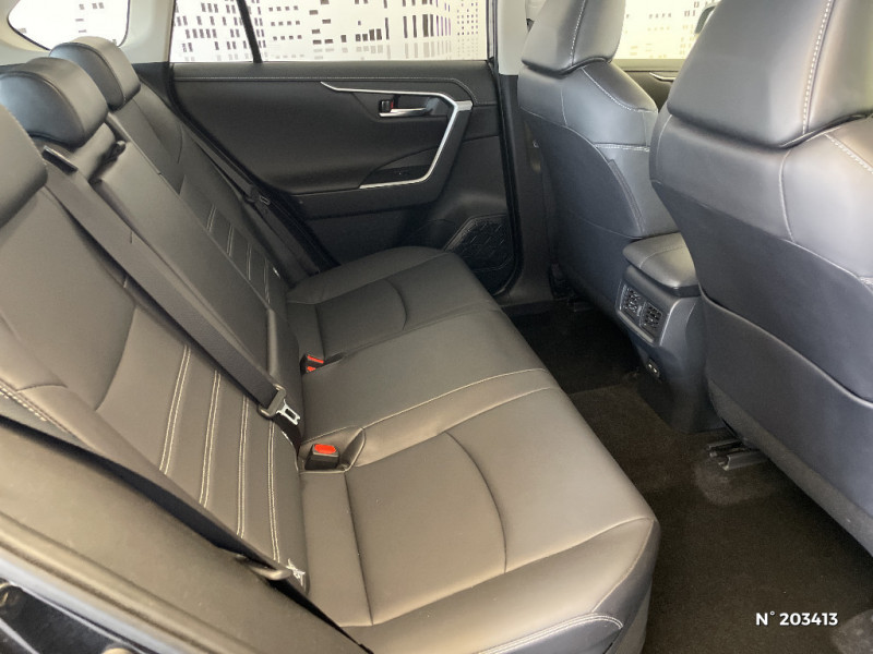Accoudoir central AV avec compartiment de rangement / Antenne de toit type requin / Bandeau de planche de bord gainé de cuir noir / Barres de toit longitudinales / Ciel de pavillon gris / Clé sécurisée contre les attaques par relais / Coffre à ouverture et fermeture électriques / Compteur numérique personnalisable 12,3" / Contreportes en cuir synthétique / Direction électrique motorisée (RP-EPS) / Double sortie d'echappement ovale / Eclairage d'accueil LED aux places AV / Ecrous antivol / Espace de rangement latéral dans le coffre / Essuie-glaces AV avec détecteur de pluie / Fermeture centralisée avec commande à distance et verrouillage des ouvrants en roulant / Filet coffre / Frein de stationnement électrique / Grille de calandre couleur acier / Indicateur de perte de pression des pneus / Kit de sécurité / Optiques AV et AR à LED sauft clignotants et feux de recul / Ornementation sous optiques AR chromée / Ornements supérieurs de vitre chromés / Ouverture électrique de la trappe à carburant / Passage de roues noirs / Plancher de coffre réversible avec revers imperméable / Programme "Beyond Zero Academy" / Sellerie en tissu sport noir / Système AVAS (Acoustic Vehicle Alerting System) / Système d¿alarme avec fonction double verrouillage et détection de bris de glace / Système d'appel d'urgence automatique "E-Call" / Système de connectivité smartphone sans fil Apple CarPlay et fillaire Android Auto / Système de téléphonie Bluetooth, connectique auxiliaire/USB et radio digitale DAB / Système d'ouverture/fermeture des portes et démarrage sans clé "Smart Entry & Start" / Système intelligent de plancher plat Toyota Easy Flat System / Système multimédia Toyota Smart Connect avec écran couleur tactile haute définition, connectivité smartphone sans fil AppleCar Play et Android Auto filaire, Navigation connectée avec infotrafic en temps réel et Smart Parking (aide à la recherche de stationnement), Reconnaissance vocale avancée "Hey Toyota", 4 ans de mises à jour cartographiques et services connectés inclus / Systèmes de contrôle de motricité (TRC) et de stabilité (TSC) / Systèmes de freinage antiblocage (ABS) et d'amplification de freinage d'urgence (BA) + EBD / Tapis de sol en velours, AV et AR avec logo "RAV4 Hybrid" / Toyota Safety Sense Système de sécurité précollision avec détection des véhicules, piétons et cyclistes, actif également dans les intersections. Alerte de franchissement de ligne avec aide au maintien dans la file, assistant de trajectoire et détecteur de fatigue, Lecture des panneaux de signalisation avec limiteur de vitesse, Gestion automatique des feux de route, Régulateur de vitesse adaptatif intelligent / Vitres électriques AV et AR à fonction anti-pincement avec descente et remontée à impulsion / Volant et levier de vitesse gainés cuir avec insert type chrome / Volant multifonction 3 branches, réglable manuellement en hauteur et profondeur / 1 prise 12 V et 2 prises USB-C AR / 2 prises 12 V, 1 prise USB et une prise USB-C AV / 6 HP / 7 Airbags (frontaux et latéraux pour conducteur et passager AV, rideaux AV et AR et protège-genoux conducteur, avec déconnexion de l´airbag passager) / Poignées de portes extérieures couleur carroserie / Poignées de portes intérieures satinées / Rétroviseur intérieur électrochromatique / Rétroviseurs extérieurs électriques, dégivrants, et rabattables automatiquement avec rappels de clignotants, couleur carrosserie / Roue de secours 17" de type galette dans le coffre / Sélection mode de conduite : ECO, NORMAL, SPORT, EV