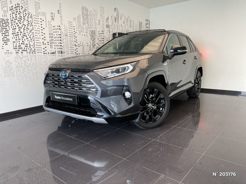 Indicateur de perte de pression des pneus / Jantes en alliage 19" Mojave Noir / Kit de réparation anti-crevaison / Kit de sécurité / Optiques AV et AR à LED / Optiques AV full-LED Premium / Optiques AV LED avec signature lumineuse Premium / Peinture bi-ton Blanc Nacré/Noir Attitude / Plancher de coffre réversible avec revers imperméable / Poignées de portes extérieures couleur carroserie / Porte-gobelets rétroéclairés / Protections de soubassement AV et AR grises / Rétroviseur intérieur électrochromatique / Rétroviseurs extérieurs couleur carrosserie / Rétroviseurs extérieurs électriques, dégivrants et rabattables électriquement avec rappel de clignotants / Sélection mode de conduite : ECO, NORMAL, SPORT, EV / Sellerie en cuir Alcantara noir avec embossage "RAV4" / Volant multifonction 3 branches, réglable manuellement en hauteur et profondeur / 7 Airbags (frontaux et latéraux pour conducteur et passager AV, rideaux AV et AR et protège-genoux conducteur) / 9 HP / Volant et levier de vitesse gainés cuir / Vitres électriques AV et AR à fonction anti-pincement avec descente et remontée à impulsion / Séparateur de coffre / Seuils des portes aluminium siglés RAV4 / Siège conducteur à réglage lombaire électrique / Système anti-démarrage avec fonction double verrouillage / Système audio Toyota Touch avec écran couleur tactile 8" multifonction, connectique auxiliaire/USB et radio digitale (DAB) / Système audio Toyota Touch avec écran couleur tactile 8" multifonction, lecteur CD, système de téléphonie Bluetooth, connectique auxiliaire/USB, 6 haut-parleurs et antenne DAB. / Système AVAS (Acoustic Vehicle Alerting System) / Accoudoir central AV avec compartiment de rangement rétroéclairé / Alerte d¿oubli de ceinture et de lumière / Antenne de toit type requin / Appuis-tête AV réglables en hauteur et en inclinaison réglables / "ATTENTION" - Equipements non communiqués / Avertisseur de circulation AR avec freinage d¿urgence automatique (PKSB) / Badge AWD-i sur hayon / Barres de toit longitudinales / Cache-bagages / Accoudoir central AV avec compartiment de rangement / Carrosserie bi-ton avec toit et piliers peints en Noir Attitude / Ciel de pavillon noir / Clé sécurisée contre les attaques par relais / Coffre à ouverture et fermeture électriques / Combiné d'instrumentation avec écran couleur TFT 8" / Commande de blocage de différentiel "Trail" / Contreportes en cuir synthétique / Crochets porte-manteaux x2 / Double sortie d'echappement ovale / Ecrous antivol / Système d'appel d'urgence automatique "E-Call" / Système de connectivité smartphone Apple CarPlay / Android Auto / Système de téléphone Bluetooth / Système d'ouverture/fermeture des portes et démarrage sans clé "Smart Entry & Start" / Système intelligent de plancher plat Toyota Easy Flat System / Systèmes de contrôle de motricité (TRC) et de stabilité (TSC) / Systèmes de freinage antiblocage (ABS) et d'amplification de freinage d'urgence (BA) + EBD / Tapis de sol RAV4 Hybrid en velours, AV et AR / Toyota Safety Sense Système de sécurité précollision avec détection des piétons, Alerte de franchissement de ligne et détecteur de fatigue, gestion automatique des feux de route, lecture des panneaux de signalisation, régulateur de vitesse adaptatif. / Toyota Touch & Go : système de navigation à écran tactile 8" avec info trafic et cartographie européenne / Eléments de carrosserie de couleur Noir Laqué / Espace de rangement latéral dans le coffre / Essuie-glaces AV avec détecteur de pluie / Fermeture centralisée avec commande à distance et verrouillage des ouvrants en roulant / Feux clignotants à halogène / Feux stop à halogène / Filet coffre / Frein de stationnement électrique / Grille de calandre couleur acier