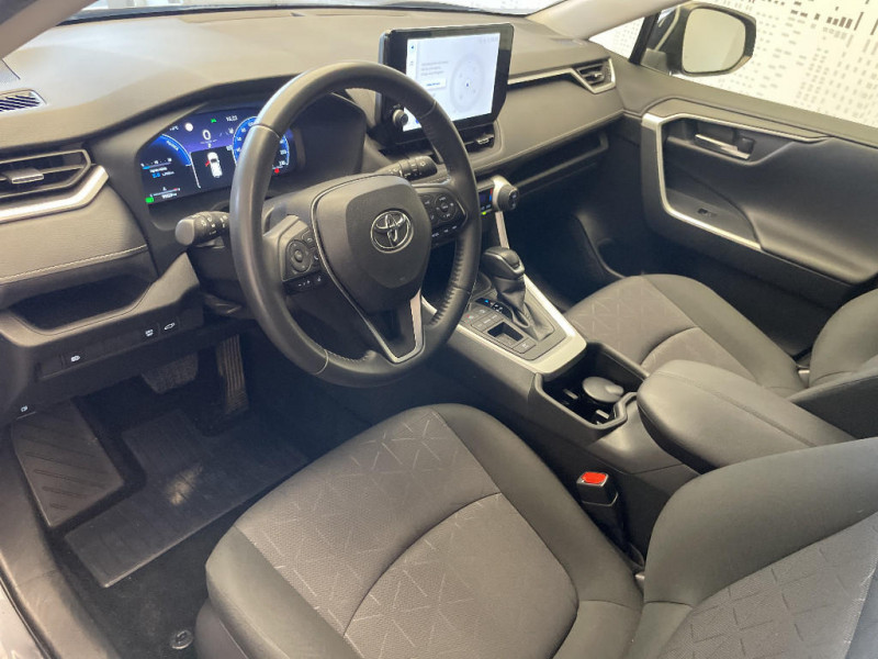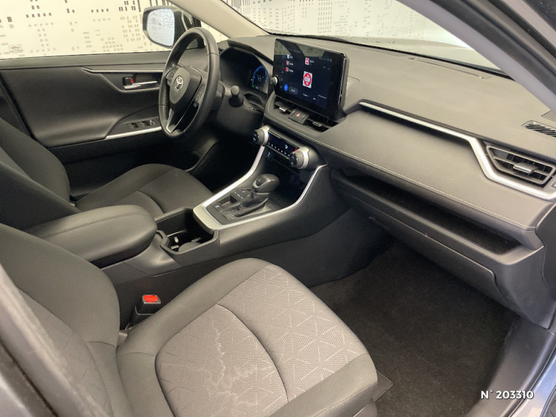 Systèmes de freinage antiblocage (ABS) et d'amplification de freinage d'urgence (BA) + EBD / Tapis de sol en velours, AV et AR avec logo "RAV4 Hybrid" / Toyota Safety Sense Système de sécurité précollision avec détection des véhicules, piétons et cyclistes, actif également dans les intersections. Alerte de franchissement de ligne avec aide au maintien dans la file, assistant de trajectoire et détecteur de fatigue, Lecture des panneaux de signalisation avec limiteur de vitesse, Gestion automatique des feux de route, Régulateur de vitesse adaptatif intelligent / Vitres électriques AV et AR à fonction anti-pincement avec descente et remontée à impulsion / Volant et levier de vitesse gainés cuir avec insert type chrome / Volant multifonction 3 branches, réglable manuellement en hauteur et profondeur / 1 prise 12 V et 2 prises USB-C AR / 2 prises 12 V, 1 prise USB et une prise USB-C AV / 6 HP / 7 Airbags (frontaux et latéraux pour conducteur et passager AV, rideaux AV et AR et protège-genoux conducteur, avec déconnexion de l´airbag passager) / Accoudoir central AV avec compartiment de rangement / Antenne de toit type requin / Bandeau de planche de bord gainé de cuir noir / Barres de toit longitudinales / Ciel de pavillon gris / Clé sécurisée contre les attaques par relais / Coffre à ouverture et fermeture électriques / Compteur numérique personnalisable 12,3" / Contreportes en cuir synthétique / Direction électrique motorisée (RP-EPS) / Double sortie d'echappement ovale / Eclairage d'accueil LED aux places AV / Ecrous antivol / Espace de rangement latéral dans le coffre / Essuie-glaces AV avec détecteur de pluie / Fermeture centralisée avec commande à distance et verrouillage des ouvrants en roulant / Filet coffre / Frein de stationnement électrique / Grille de calandre couleur acier / Indicateur de perte de pression des pneus / Kit de sécurité / Optiques AV et AR à LED sauft clignotants et feux de recul / Ornementation sous optiques AR chromée / Ornements supérieurs de vitre chromés / Ouverture électrique de la trappe à carburant / Passage de roues noirs / Plancher de coffre réversible avec revers imperméable / Poignées de portes extérieures couleur carroserie / Poignées de portes intérieures satinées / Programme "Beyond Zero Academy" / Rétroviseur intérieur électrochromatique / Rétroviseurs extérieurs électriques, dégivrants, et rabattables automatiquement avec rappels de clignotants, couleur carrosserie / Roue de secours 17" de type galette dans le coffre / Sélection mode de conduite : ECO, NORMAL, SPORT, EV / Sellerie en tissu sport noir / Système AVAS (Acoustic Vehicle Alerting System) / Système d¿alarme avec fonction double verrouillage et détection de bris de glace / Système d'appel d'urgence automatique "E-Call" / Système de connectivité smartphone sans fil Apple CarPlay et fillaire Android Auto / Système de téléphonie Bluetooth, connectique auxiliaire/USB et radio digitale DAB / Système d'ouverture/fermeture des portes et démarrage sans clé "Smart Entry & Start" / Système intelligent de plancher plat Toyota Easy Flat System / Système multimédia Toyota Smart Connect avec écran couleur tactile haute définition, connectivité smartphone sans fil AppleCar Play et Android Auto filaire, Navigation connectée avec infotrafic en temps réel et Smart Parking (aide à la recherche de stationnement), Reconnaissance vocale avancée "Hey Toyota", 4 ans de mises à jour cartographiques et services connectés inclus / Systèmes de contrôle de motricité (TRC) et de stabilité (TSC)