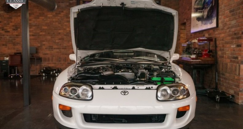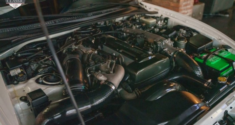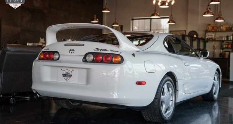 Le véhicule en question est un Toyota Supra MKV Turbo de 1995 fini en blanc (040) avec intérieur noir en cuir. Le moteur est un six cylindres en ligne turbocompressé de 3, 0 L (2J-Z) associé à une boîte de vitesses manuelle à 6 rapports et un différentiel à glissement limité. Ce véhicule a été vendu en Californie et a été entretenu par le propriétaire original jusqu'en 2018. Il a ensuite été détenu par un deuxième propriétaire jusqu'en 2022, où il a été acquis par LaFontaine Classic Cars. L'équipement comprend des projecteurs de brouillard, une voile automatique, une aile arrière et des roues de 17 pouces de fabrication originale. L'intérieur présente des sièges baquet avant en cuir noir et des équipements tels qu'un siège conducteur réglable en hauteur, climatisation automatique, fenêtres et verrouillage électriques, régulateur de vitesse et une radio AM/FM/CD et lecteur de cassettes. Le tableau d'instrumentation inclut un indicateur de vitesse 180 mph, un chronomètre central, des indicateurs de température du liquide de refroidissement et de niveau d'essence. La console d'instrumentation indique 82 000 miles (130 384 km). Les pièces de rechange originales, deux clés, une roue de secours pleine taille, un kit de tournage et les documents administratifs sont inclus dans le véhicule. Les travaux récents effectués à 81 792 miles comprenaient une désincrustation de la chambre à combustion, un rechargement du climatisation et la remise en état de divers éléments tels que le timing belt assembly, le levier d'arbre de transmission arrière en caoutchouc, la pompe à eau, le thermostat, la radiateur, la cap, les hoses, la garniture de couvercle de vérin d'accès, la garniture de capot moteur, la batterie, les freins, les disques et roues de freins, les roulements d'arbre de roue, le kit de boîte de vitesses (4) et des pneus neufs. Pour plus d'informations sur ce nouveau arrivant, veuillez communiquer avec l'équipe de LaFontaine Classic Cars au 248-714-2110 ou par courriel à la description1 de 97 Twin Turbo / 6-Speeds Finished in Super White for 95' | Targa Top | 82K Miles | Clean Carfax | 2-Owners | California Car | Unmodified | LaFontaine Classic Cars est ravi d'offrir ce véhicule de collection de qualité à ce propriétaire de 1995 Toyota Supra MKV Turbo fini en blanc (040) sur intérieur cuir noir. L'équipement comprend des projecteurs de brouillard, un targa top et des roues de 17 pouces de fabrication originale.. Ce descriptif est basé sur les éléments communiqués par le propriétaire avec un traitement assisté. Merci pour votre indulgence en cas de formulation perfectible. Provenance : Michigan. Disponibilité : 7 semaines, clés en main. 117 000 € tout compris (importation, taxes, procédure d'immatriculation). Annonce publiée le 14/11/2025